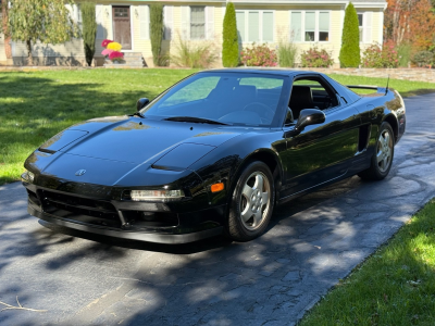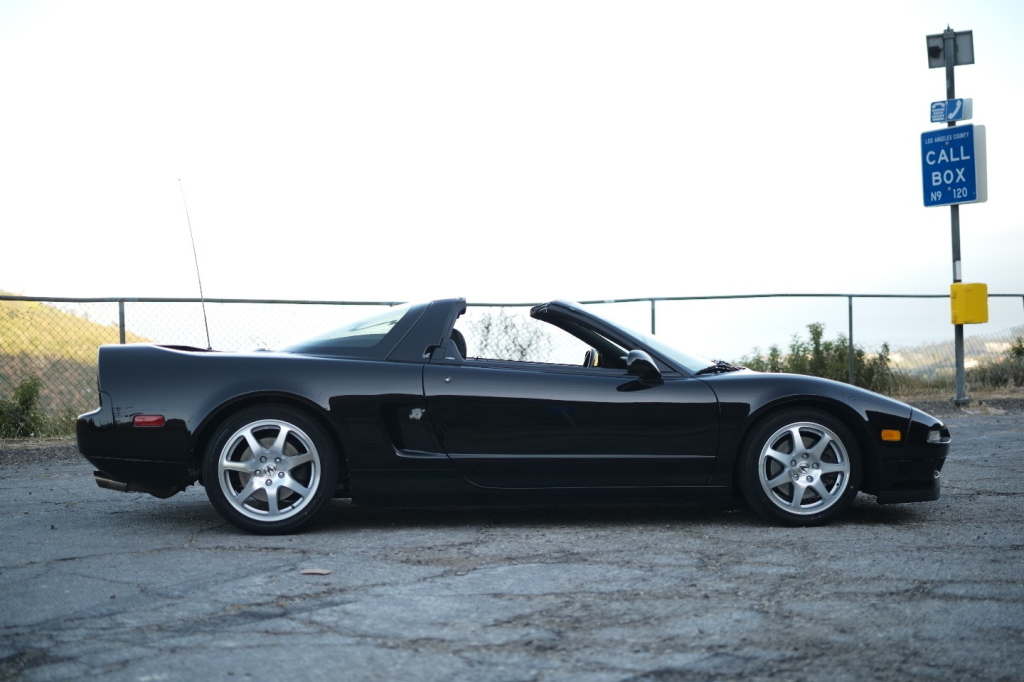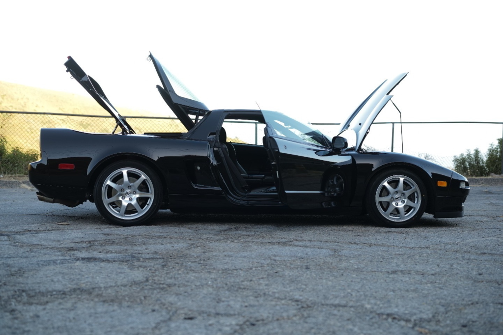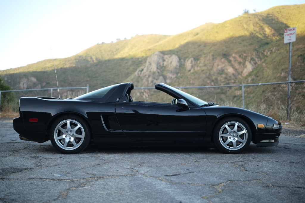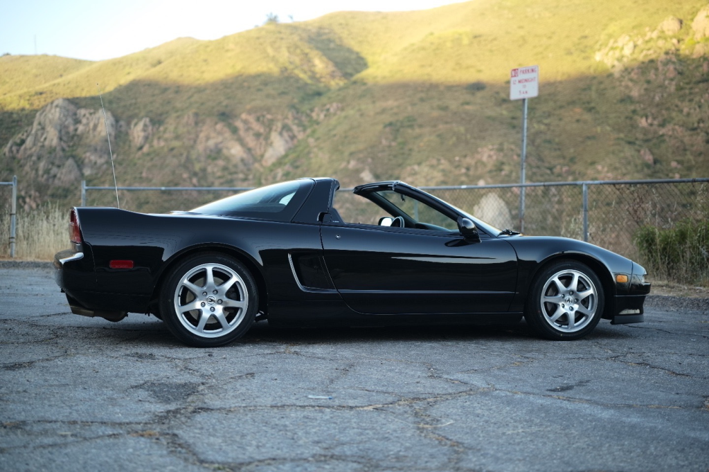This Acura NSX-T is one of 24 examples produced for the US market in Berlina Black over Onyx leather for the 2001 model year. The original owner is said to have purchased the car in 2004 after an initial lease period, and it was acquired by the seller from the first owner in 2019. Power is provided by a 3.2-liter V6 paired with a six-speed manual transmission, and service performed under current ownership included replacement of the timing belt, water pump, serpentine belt, coolant hoses, and CV boots. Paint protection film was applied in June 2019 and KW coilovers were installed in May 2020. This NSX has 13k miles and is offered in California with two car covers, four keys and two fobs, factory suspension components, service records from current ownership, a clean Carfax report, and a clean Montana title in the name of the seller’s LLC.