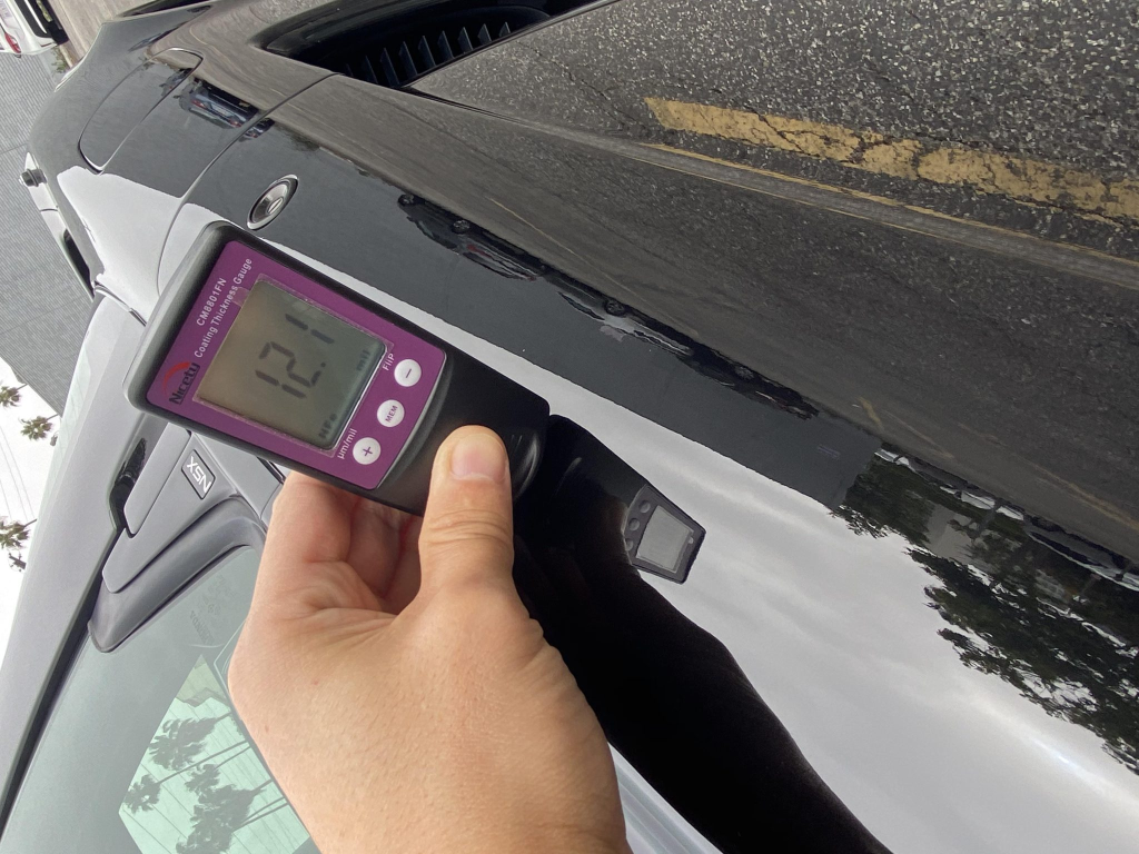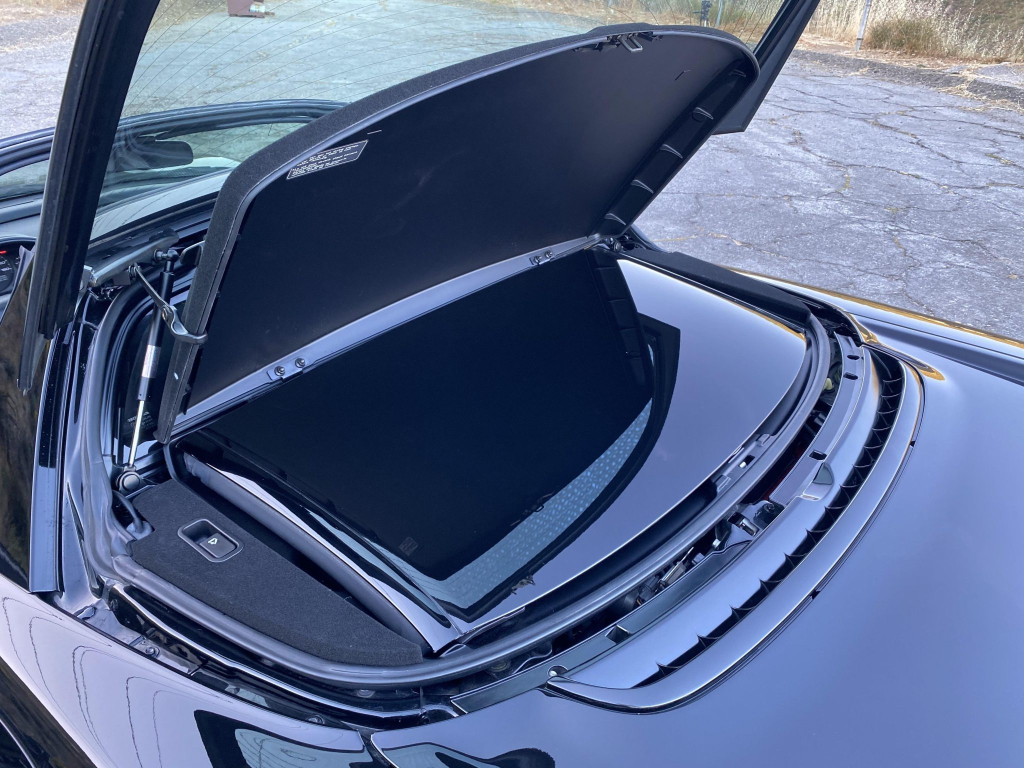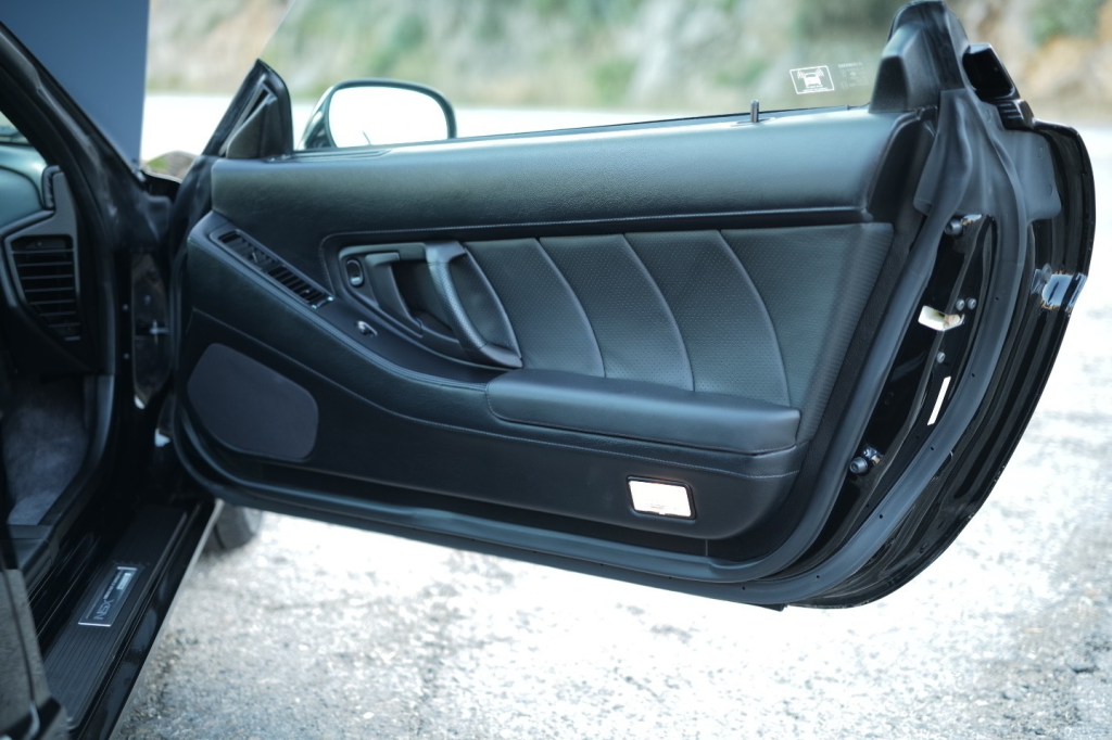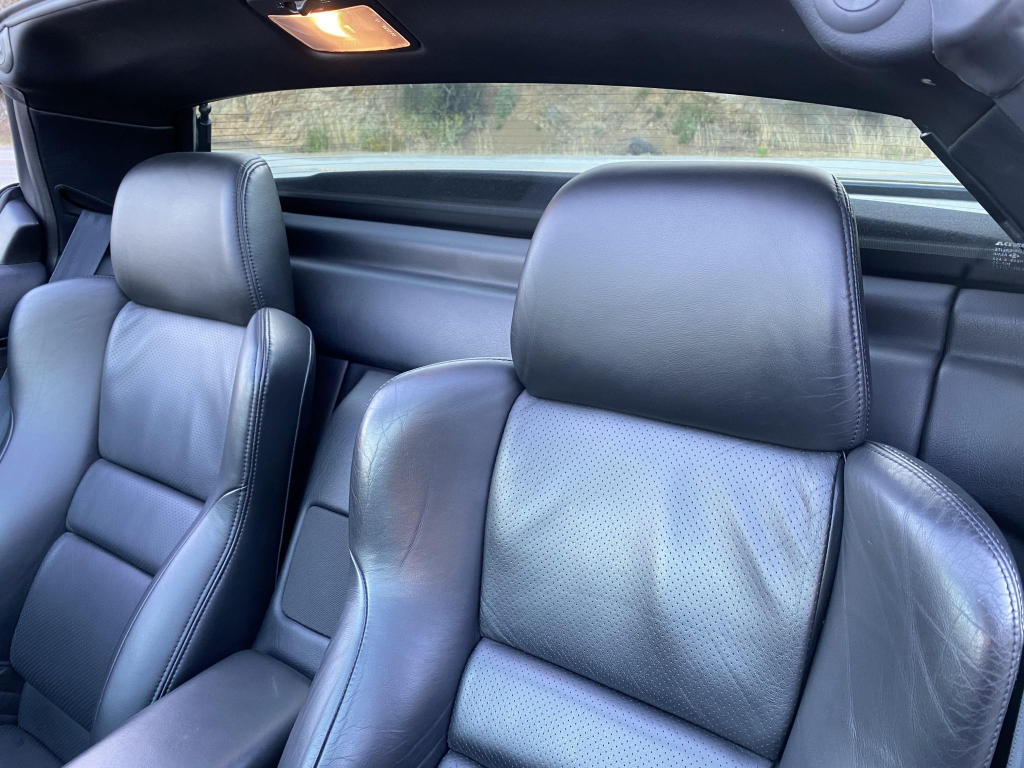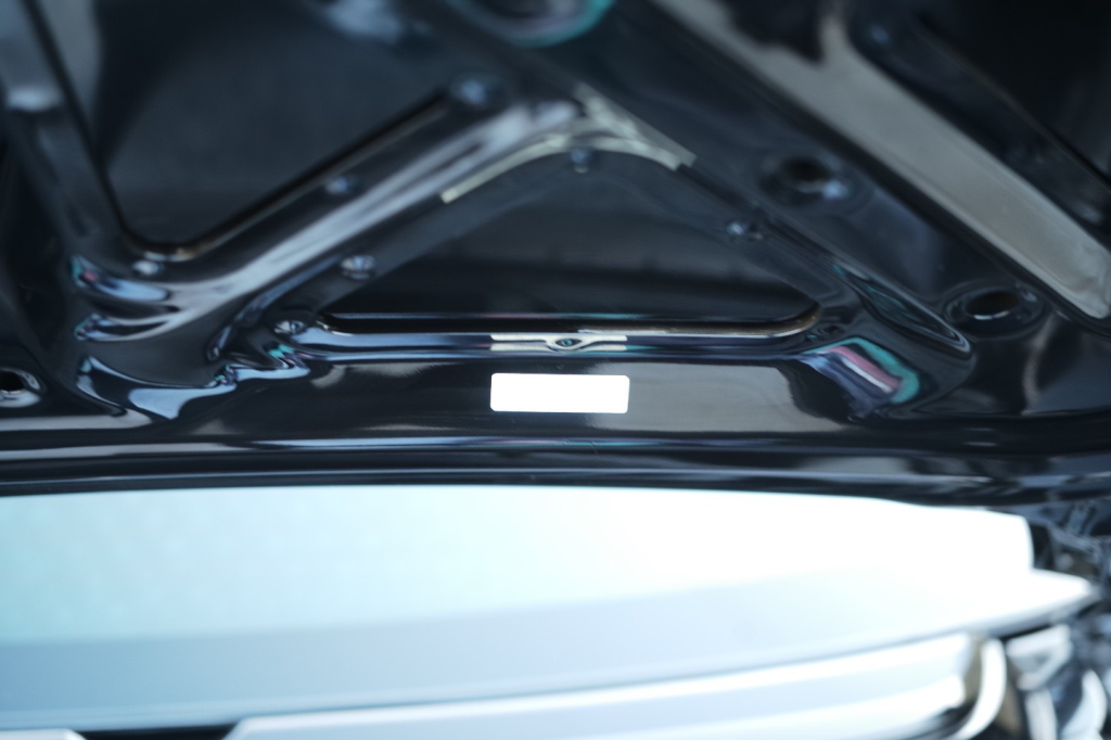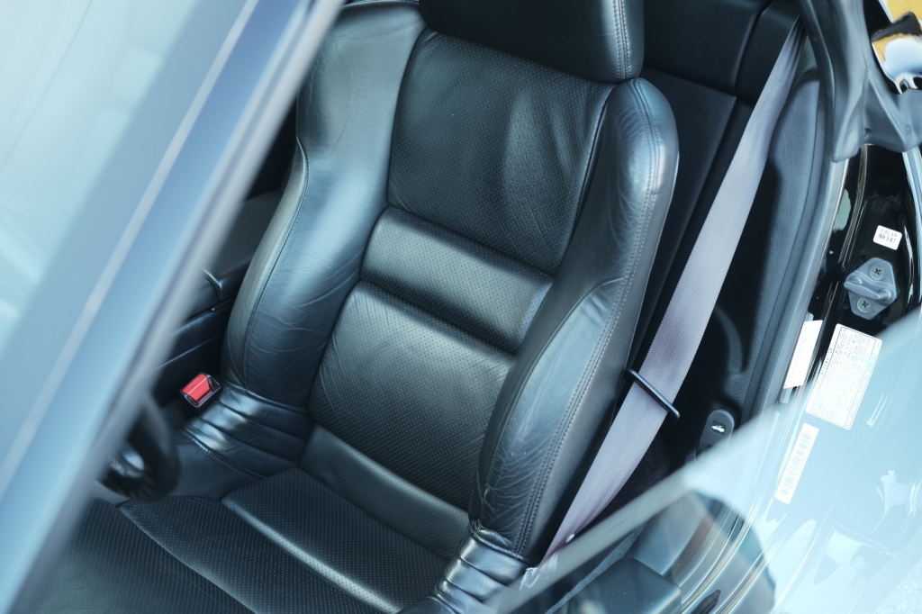 The aluminum bodywork is finished in Berlina Black (NH-547) features pop-up headlights, a removable roof panel, and electric side mirrors. A paint correction was performed and Suntek paint protection film was applied to the exterior surfaces in June 2019 by Rstrada Limited of Torrance, California at a cost of $6,850. Photos of body panel VIN tags are provided, as are paint meter readings. The seller notes that the readings, save for those in the door jambs, are indicative of the thickness of both the paint and protection film.