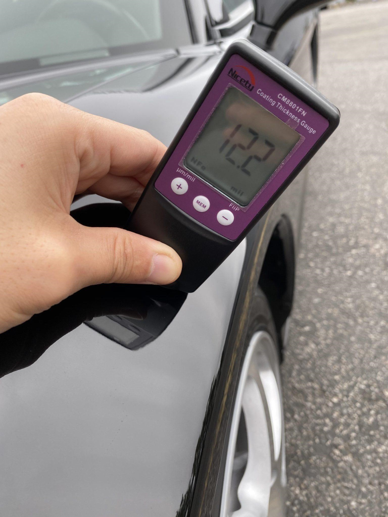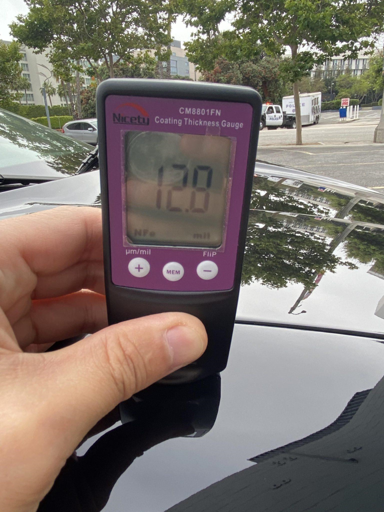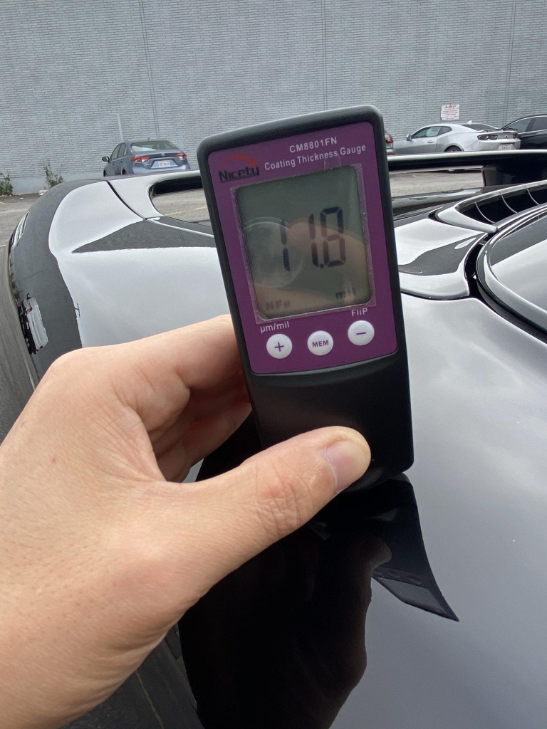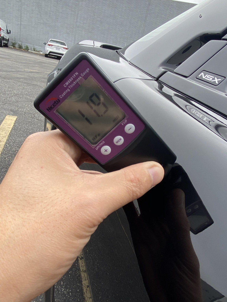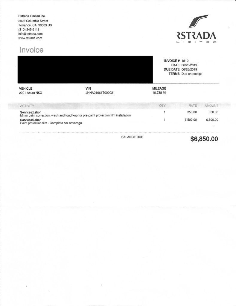 The aluminum bodywork is finished in Berlina Black (NH-547) features pop-up headlights, a removable roof panel, and electric side mirrors. A paint correction was performed and Suntek paint protection film was applied to the exterior surfaces in June 2019 by Rstrada Limited of Torrance, California at a cost of $6,850. Photos of body panel VIN tags are provided, as are paint meter readings. The seller notes that the readings, save for those in the door jambs, are indicative of the thickness of both the paint and protection film.