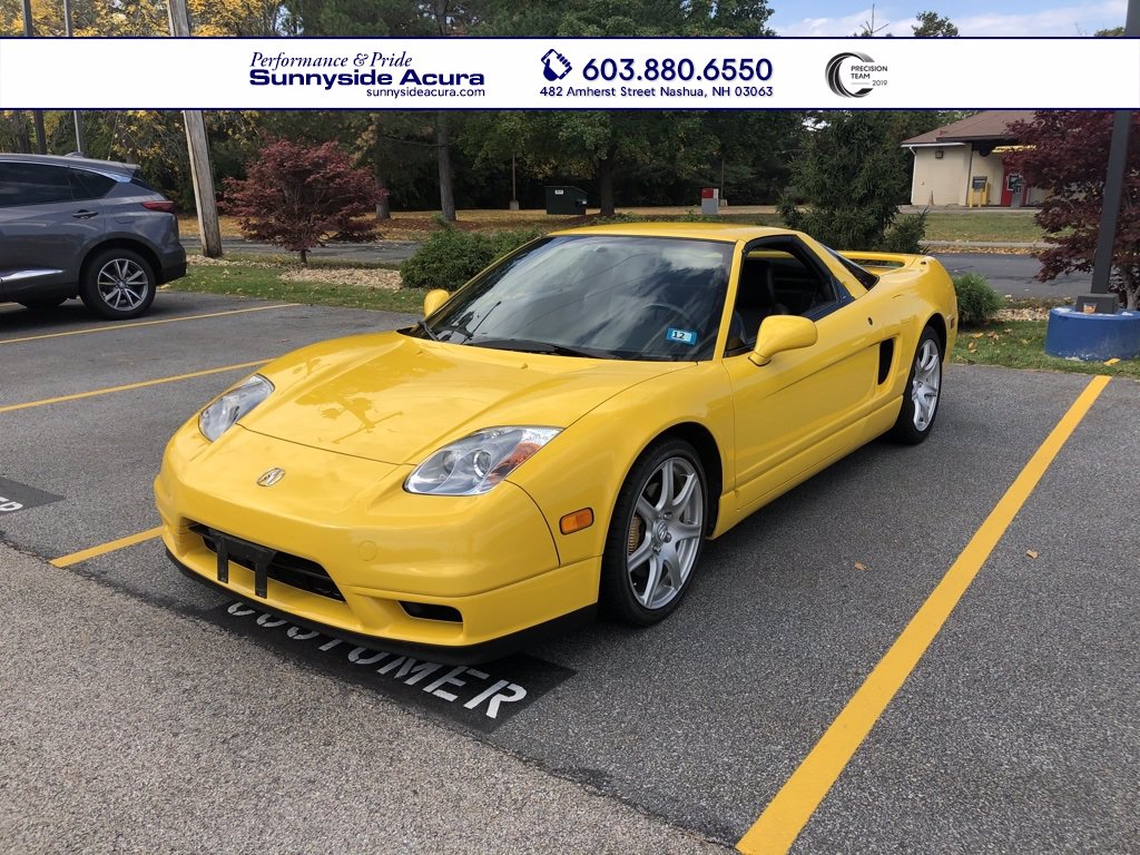 Spa Yellow Pearl 2002 Acura NSX 3.2L Open Top 3.2L V6 SMPI DOHC, 6-Speed Manual with Overdrive, RWD, Onyx w/Perforated Leather Seat Trim, 17 x 7 Front & 17 x 9 Rear Forged Aluminum Alloy Wheels, Air Conditioning, High-Intensity Discharge Headlights.
