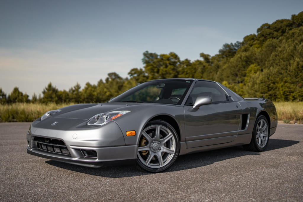 This 2004 Acura NSX-T is one of 197 examples produced for the US market for the model year, just 23 of which were delivered in Silverstone Metallic over Silver leather. It was initially sold through Walker Acura in Metairie, Louisiana, and remained registered under a single family in the state until it was sold to the seller on BaT in September 2021. Work since 2021 included refinishing the rear bumper cover, rebuilding the steering rack, performing a timing belt service, and refurbishing the Bose sound system, and it was listed on BaT in June 2022. The car is powered by a 3.2-liter DOHC V6 linked with a six-speed manual transaxle and a limited-slip differential and is equipped with a removable roof panel, 17″ forged wheels, xenon headlights, power-adjustable seats, and automatic climate control. This NSX-T is offered with a car cover, spare parts, an owner’s manual, service records, a Carfax report, and a clean Alabama title in the seller’s name.