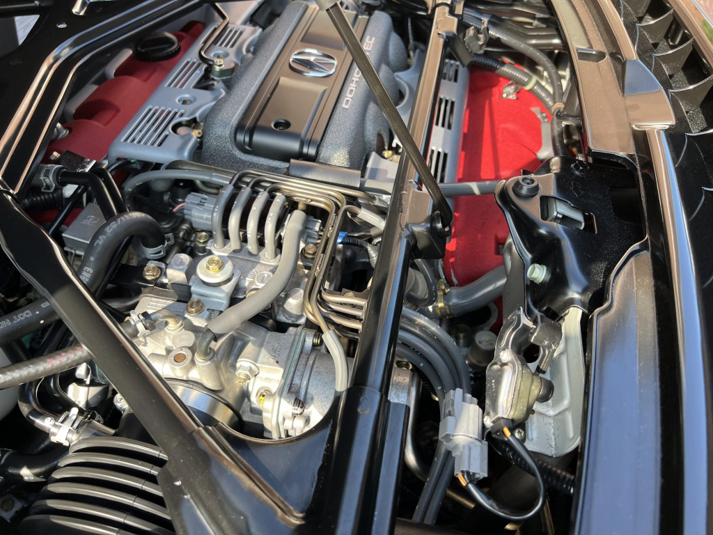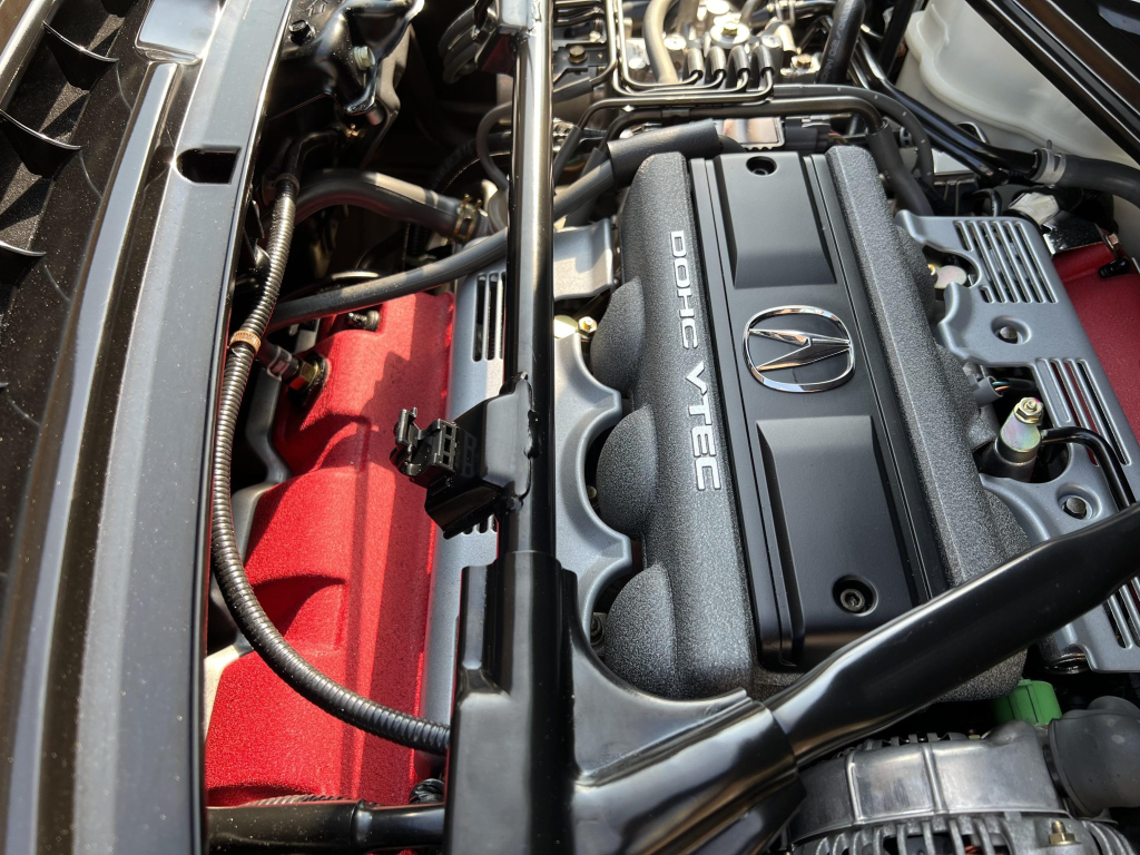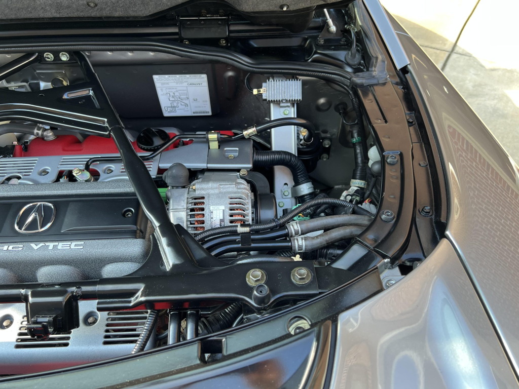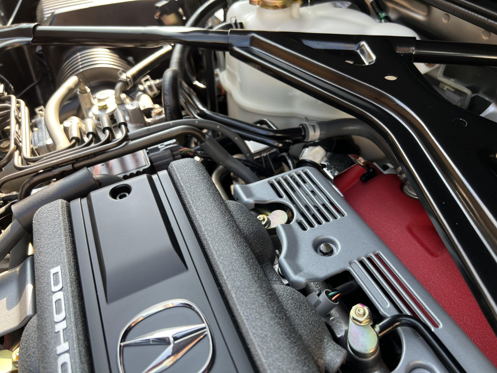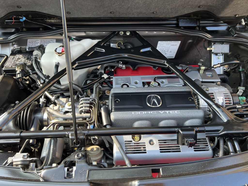 The 3.2-liter C32B V6 was factory rated at 290 horsepower and 224 lb-ft of torque and features dual overhead camshafts on each cylinder bank and VTEC variable valve timing. Service in February 2022 included a valve adjustment and replacing the timing belt, water pump, spark plugs, drive belts, and coolant hoses. An oil change was performed in October 2023.