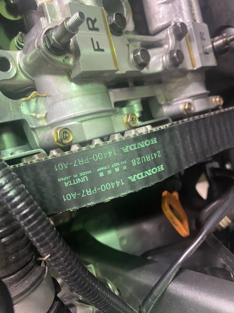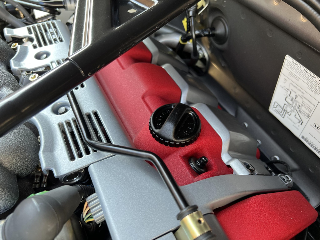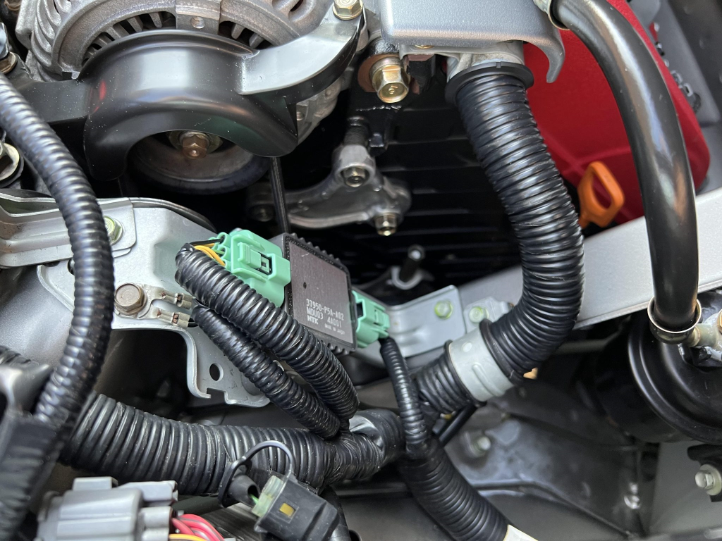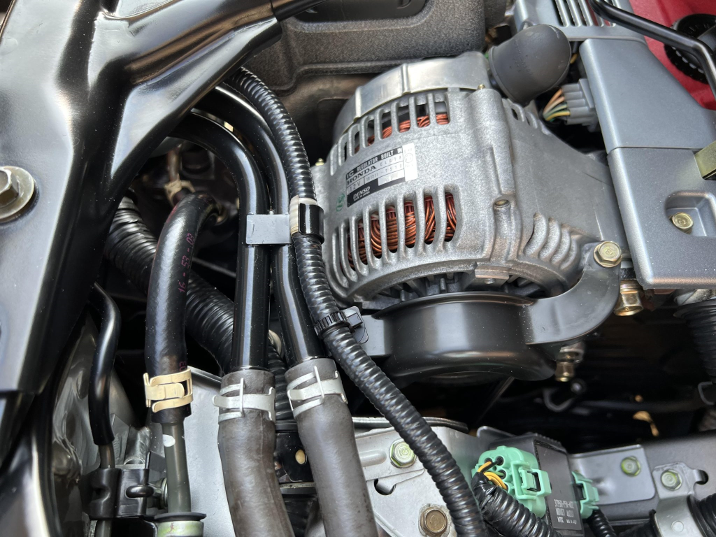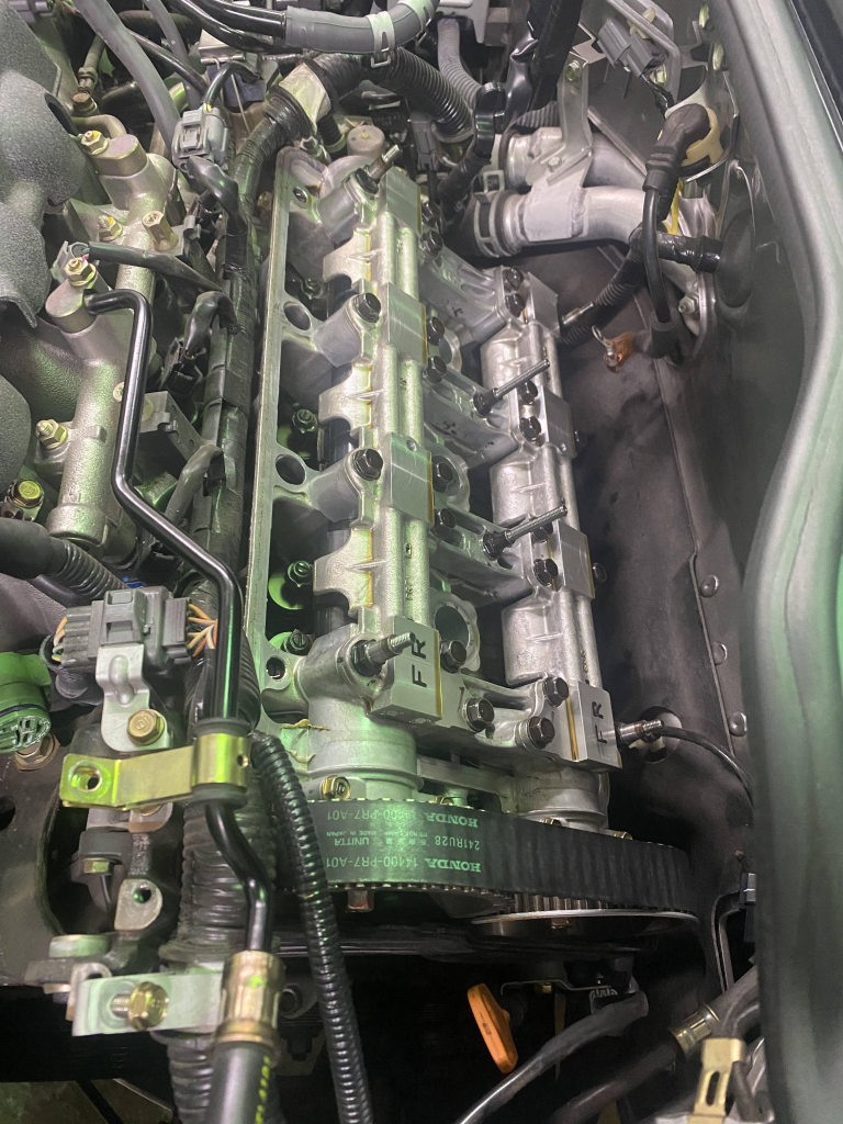 The 3.2-liter C32B V6 was factory rated at 290 horsepower and 224 lb-ft of torque and features dual overhead camshafts on each cylinder bank and VTEC variable valve timing. Service in February 2022 included a valve adjustment and replacing the timing belt, water pump, spark plugs, drive belts, and coolant hoses. An oil change was performed in October 2023.