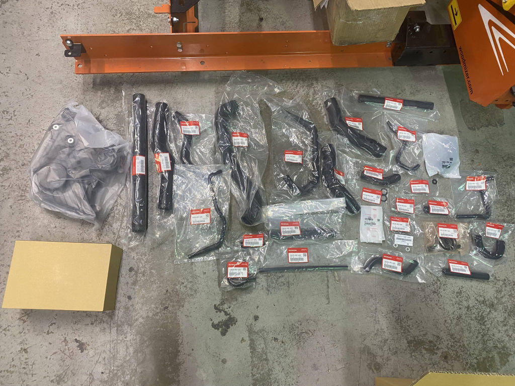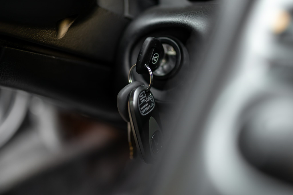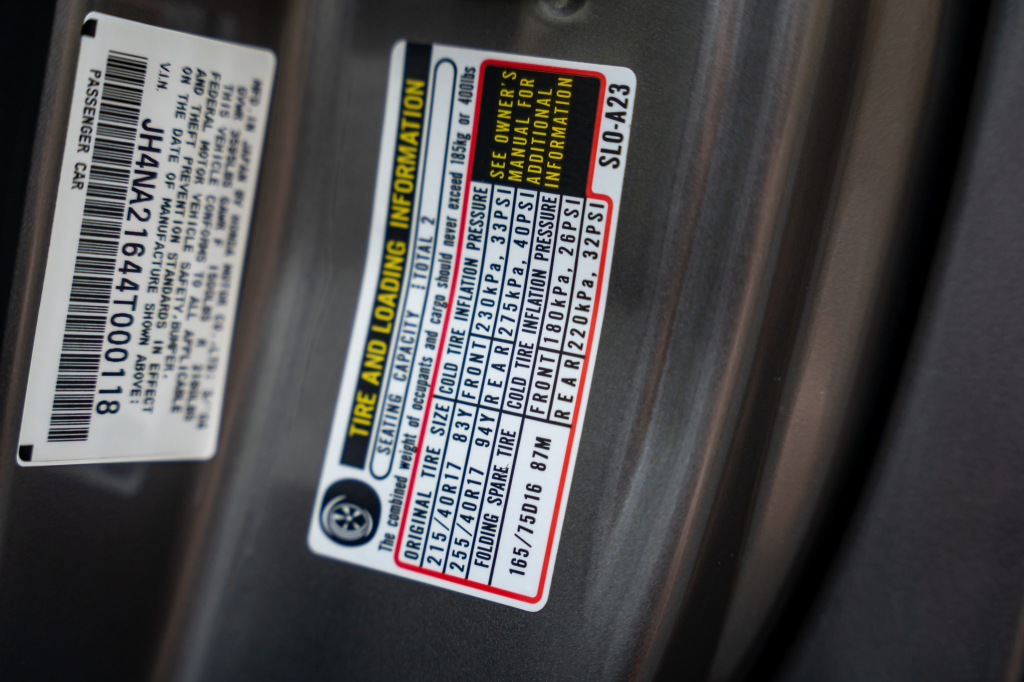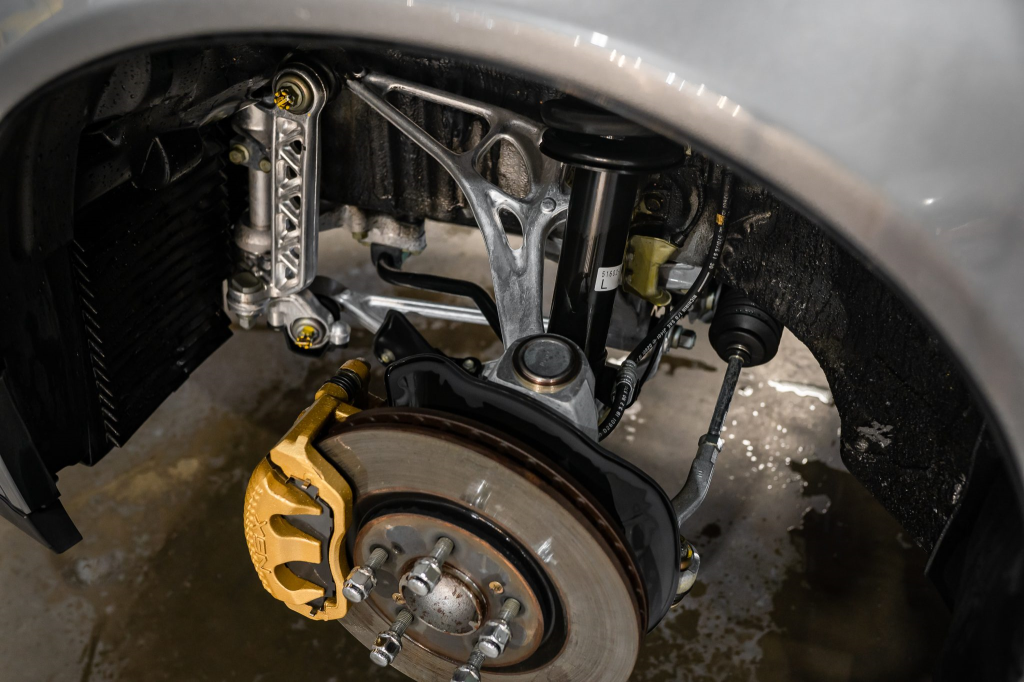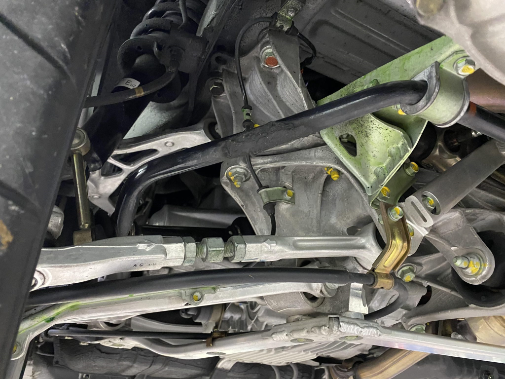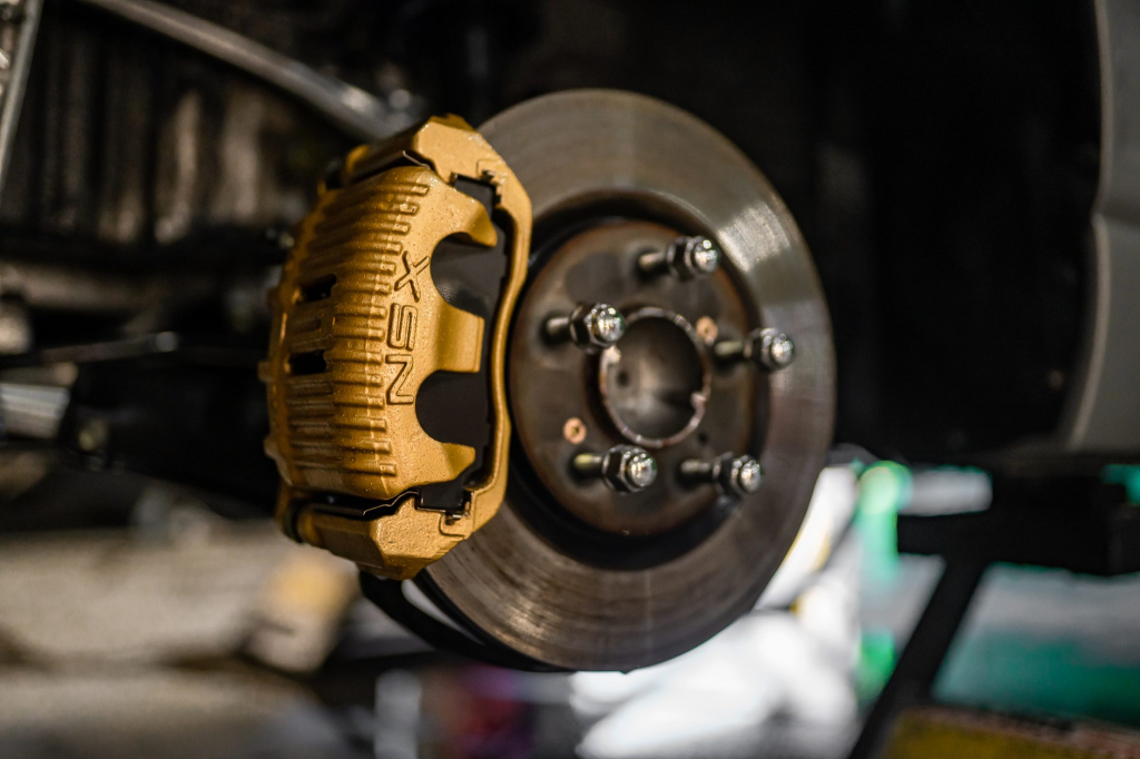 Seven-spoke 17″ forged wheels have been refinished and were wrapped in 215/40 front and 255/40 rear Yokohama Advan Neova tires in 2020. The car features a four-wheel double-wishbone suspension with front and rear stabilizer bars, and braking is handled by gold NSX-branded calipers over a ventilated rotor at each corner. The steering rack was rebuilt in February 2022.