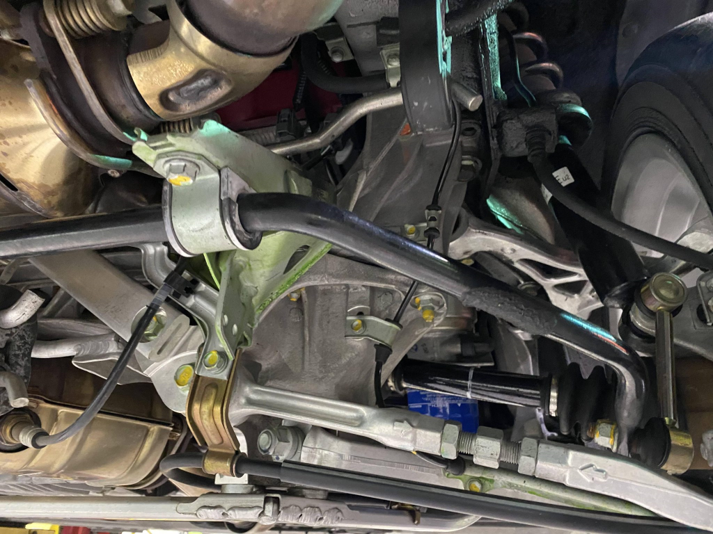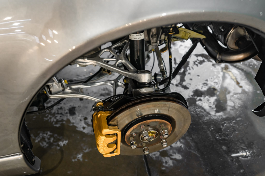 Power is routed to the rear wheels through a six-speed manual transaxle and a limited-slip differential.
