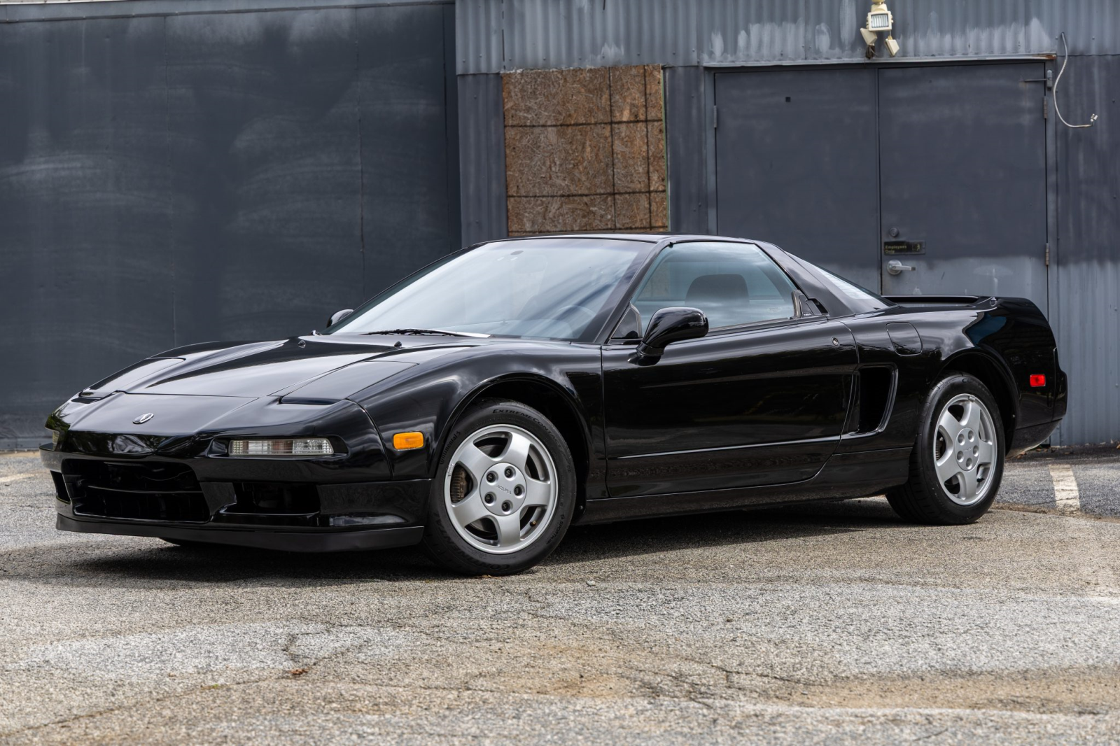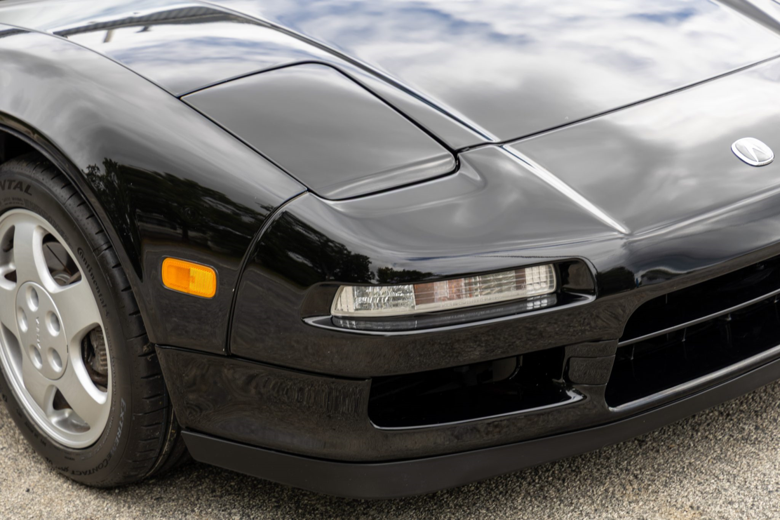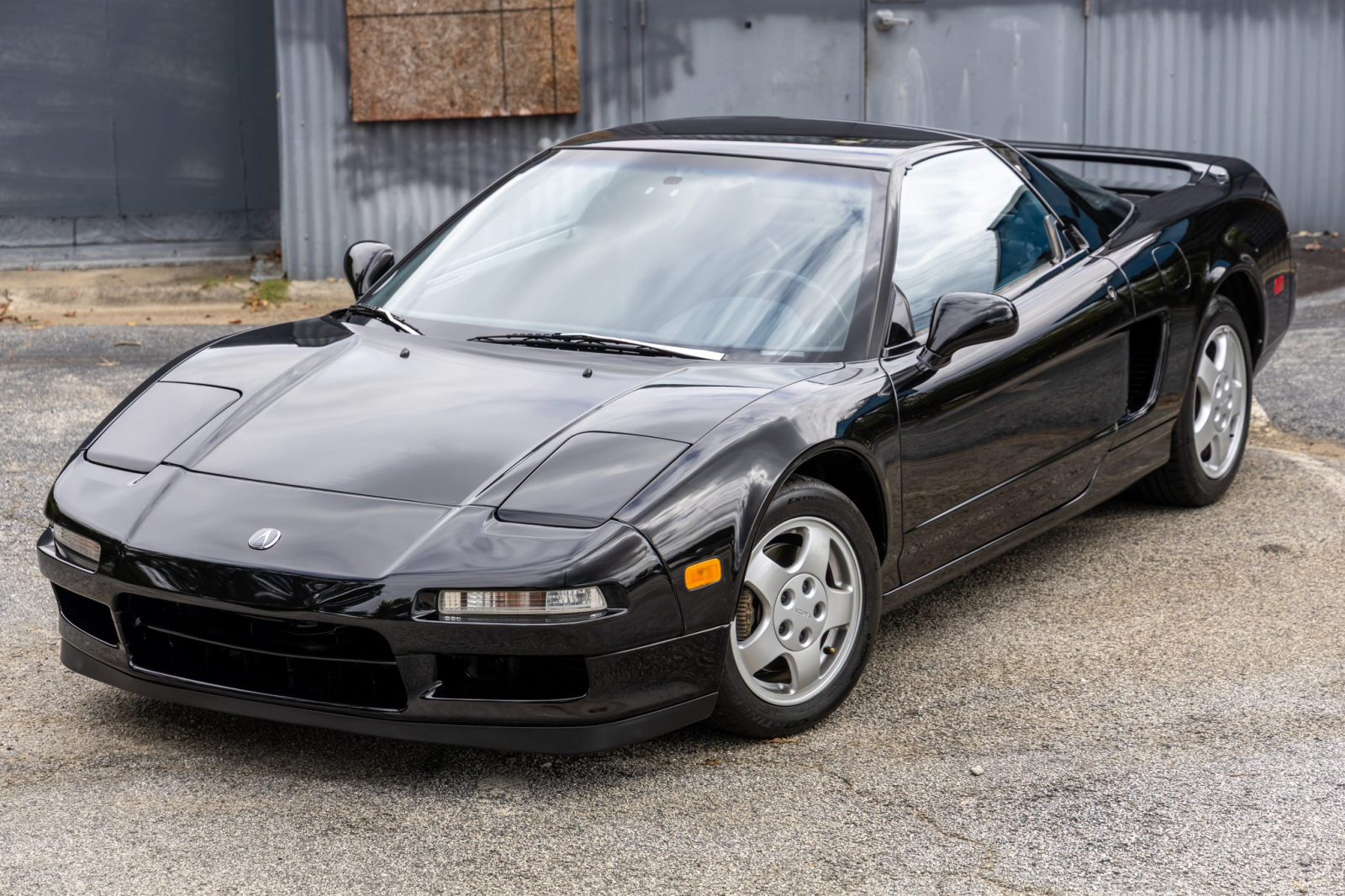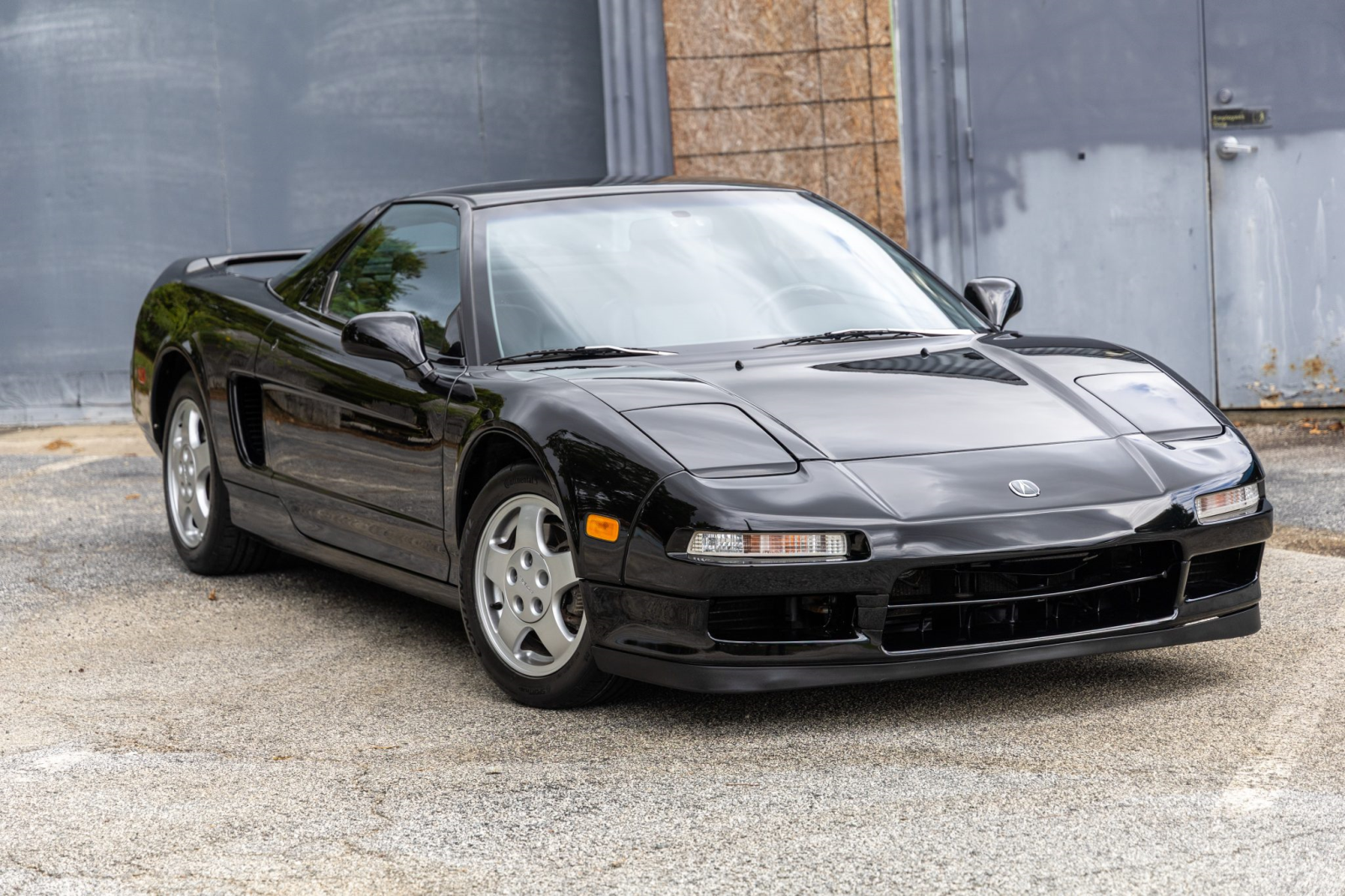 The NSX featured aluminum bodywork, and this example is finished in Berlina Black. Exterior details include pop-up headlights, an integrated rear wing, side air intakes, power-adjustable side mirrors, and dual exhaust outlets.