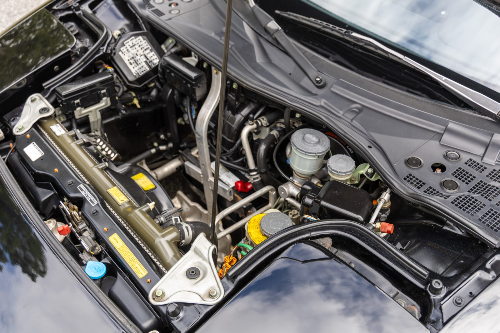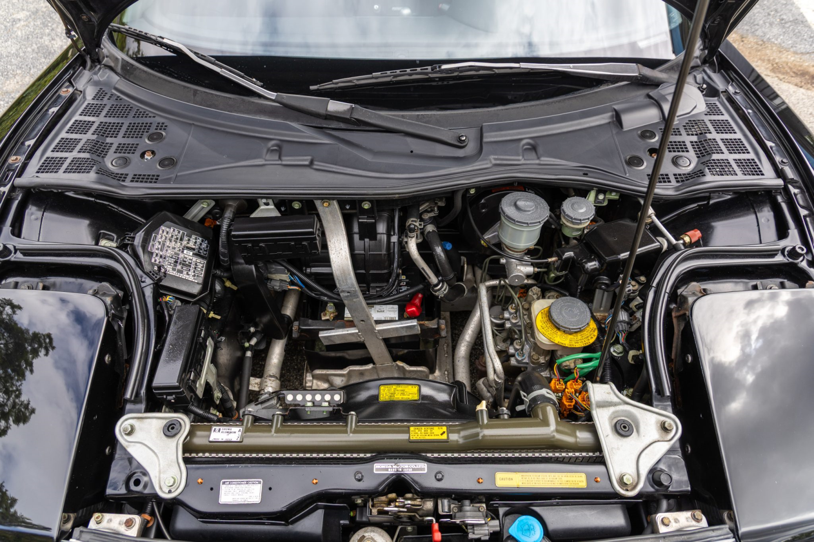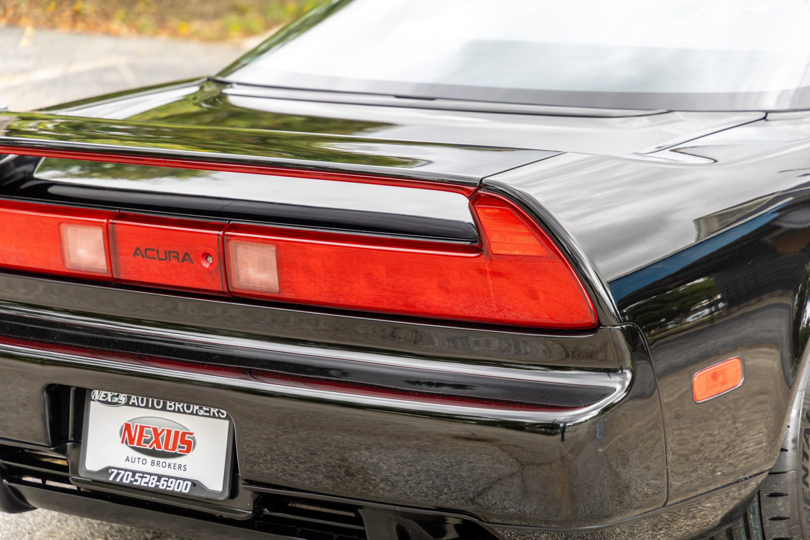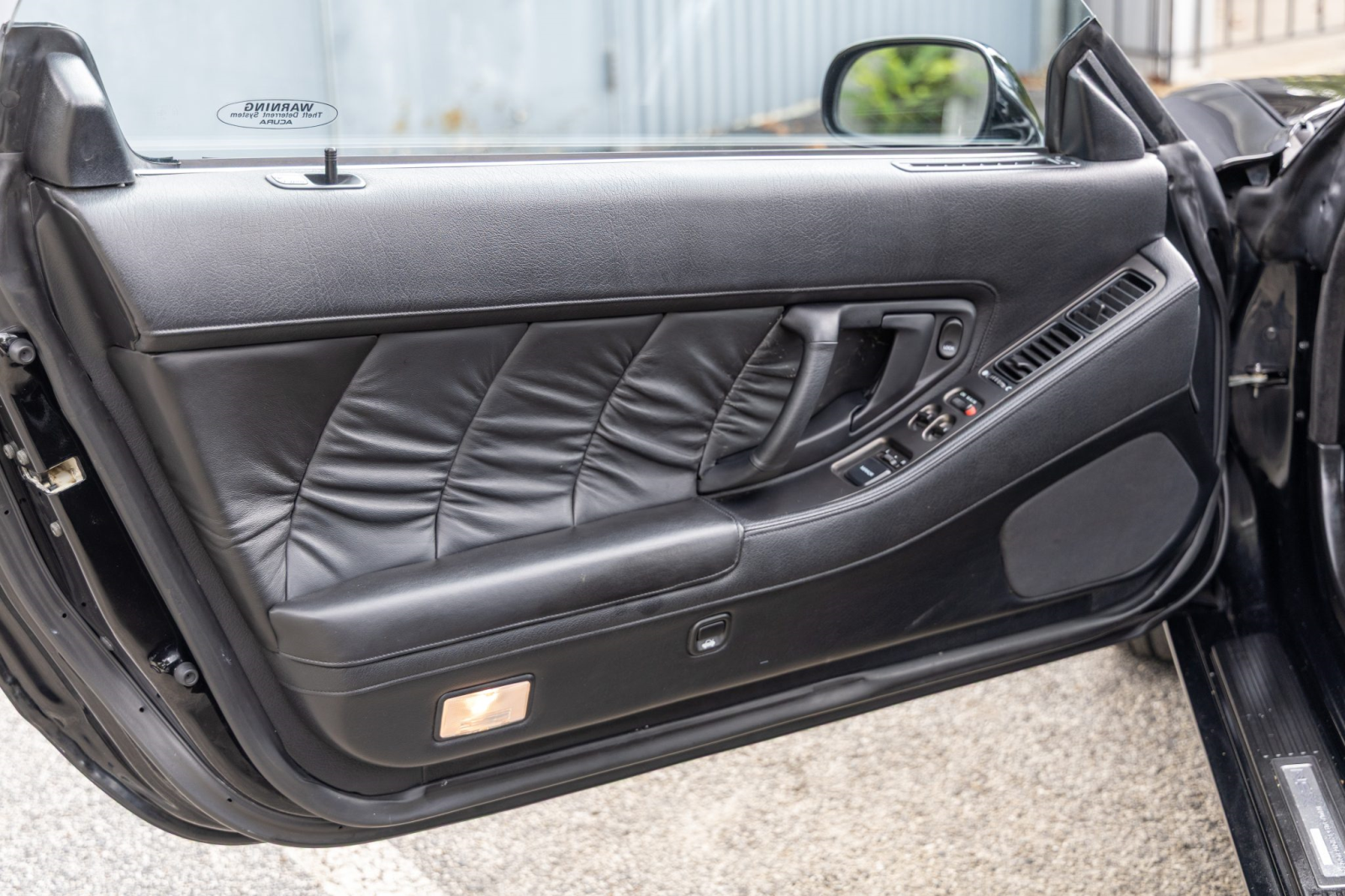 The NSX featured aluminum bodywork, and this example is finished in Berlina Black. Exterior details include pop-up headlights, an integrated rear wing, side air intakes, power-adjustable side mirrors, and dual exhaust outlets.