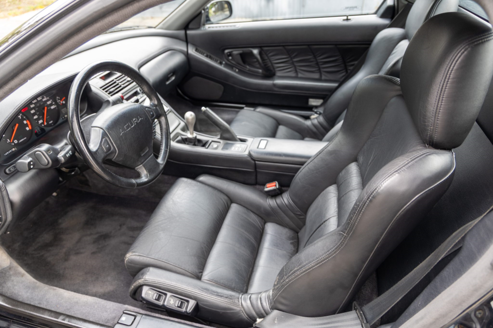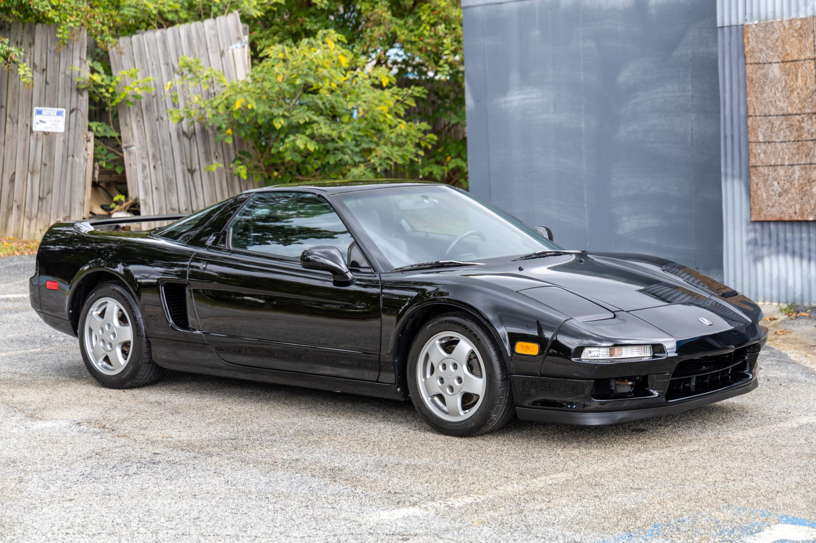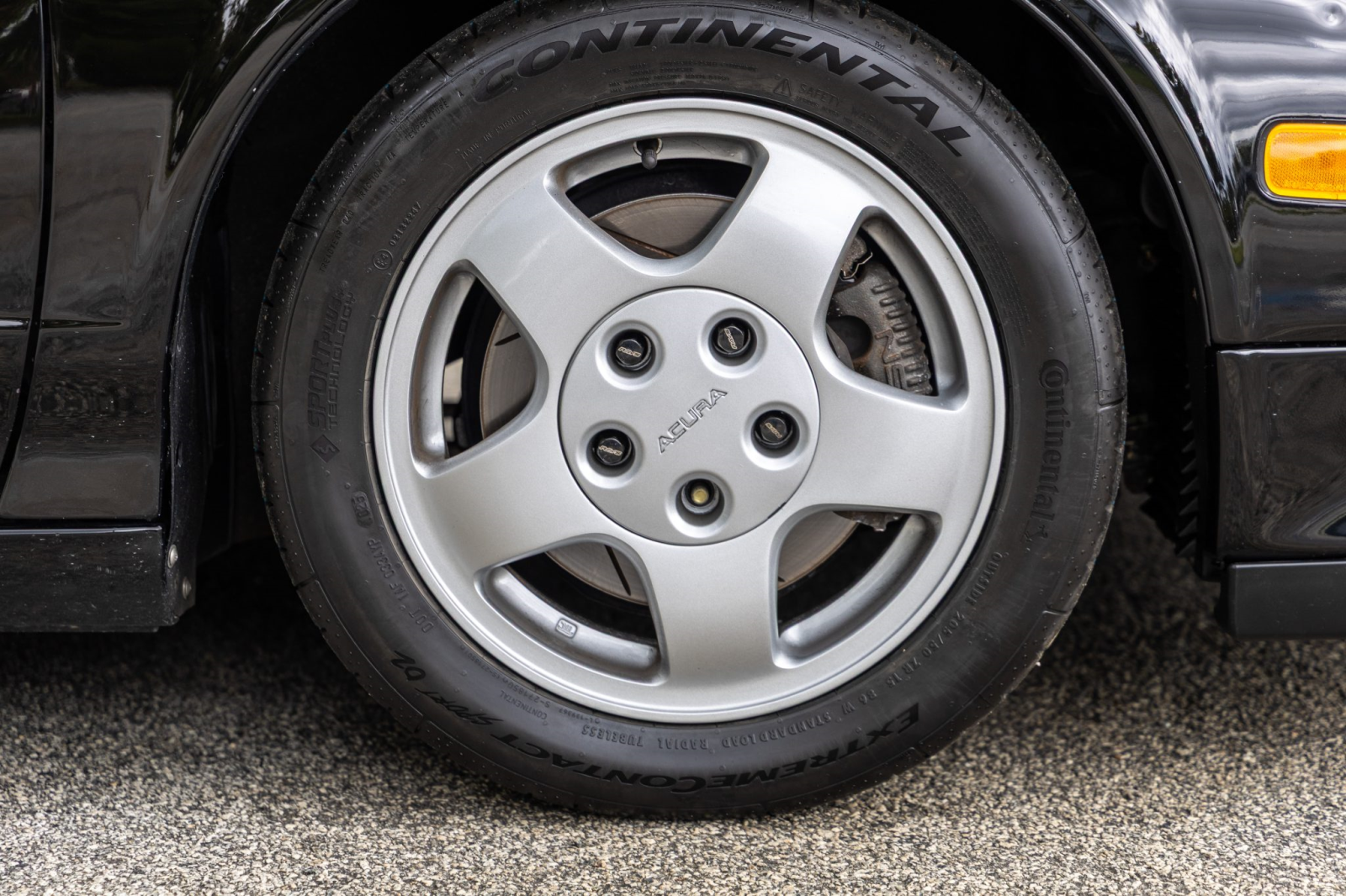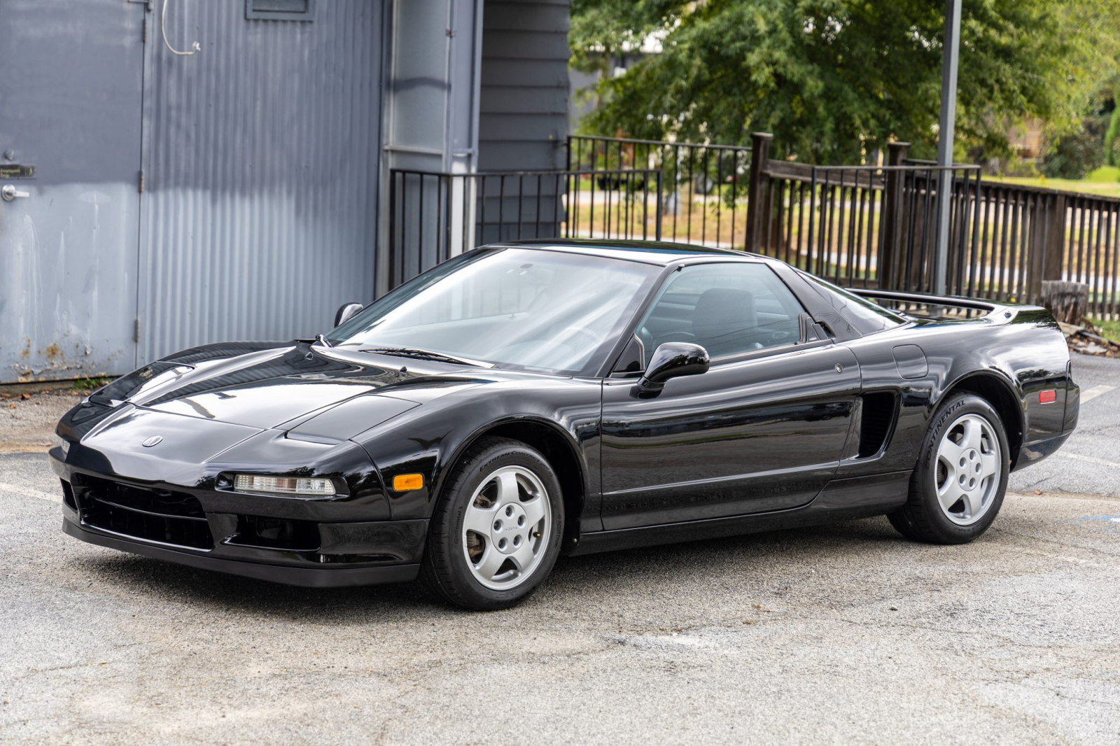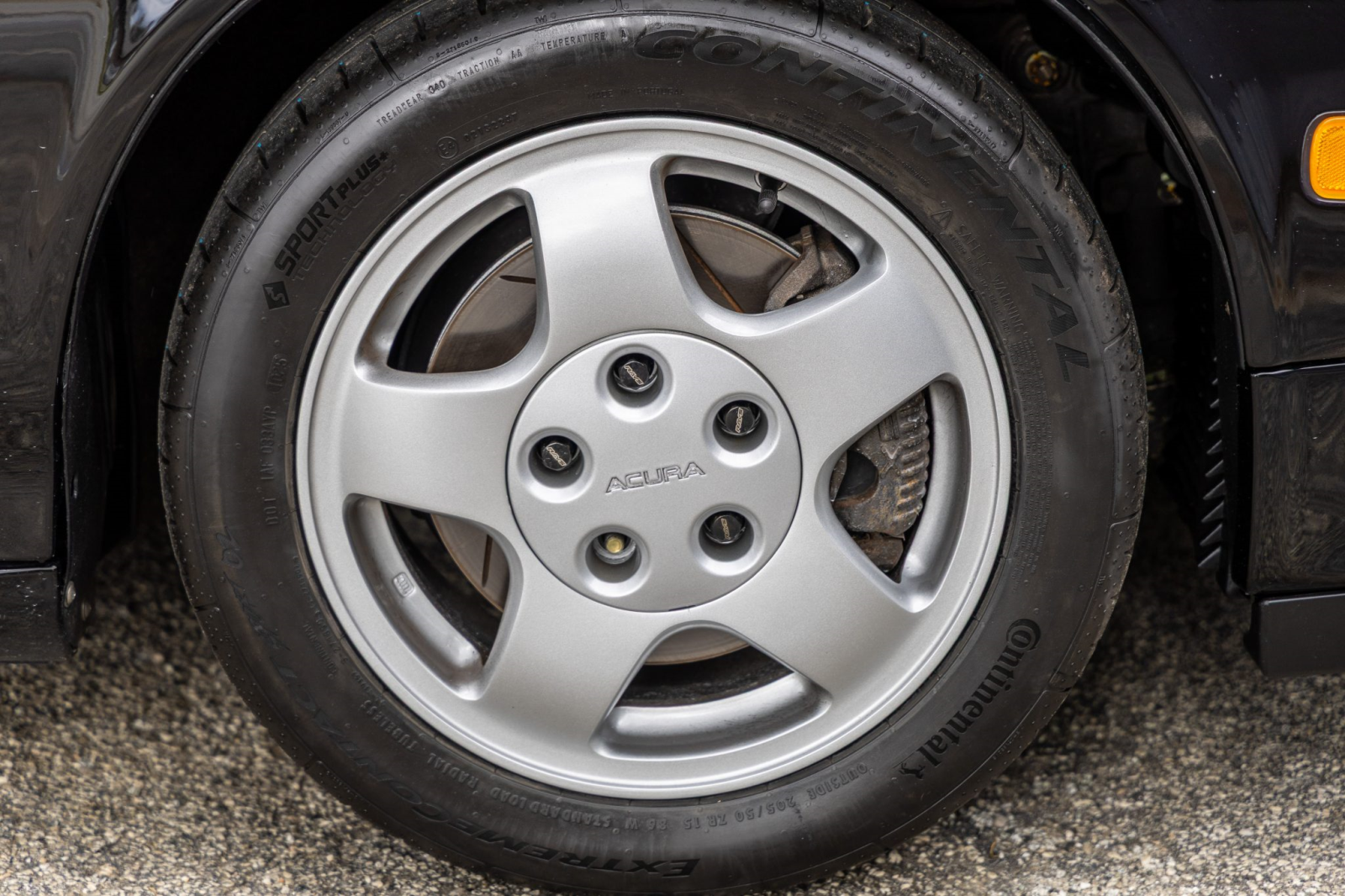 Staggered-diameter 15″ and 16″ five-spoke forged wheels wear Continental tires that were mounted in preparation for the sale. The car features a four-wheel double-wishbone suspension with front and rear stabilizer bars, and braking is handled by NSX-branded calipers over slotted rotors at each corner.