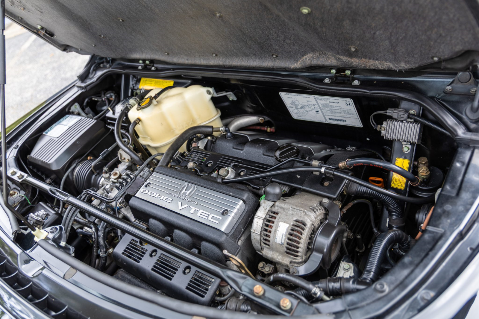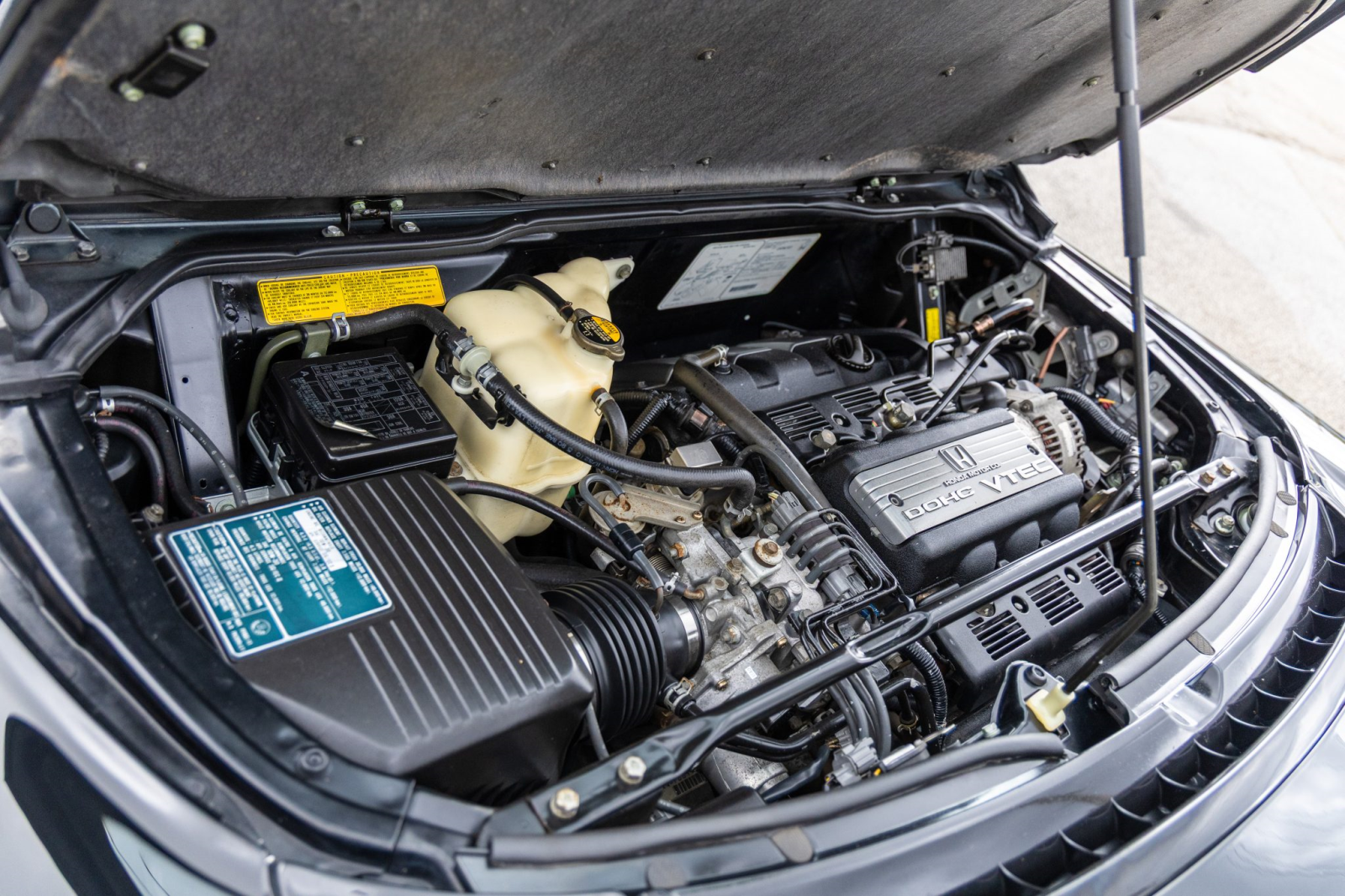 The mid-mounted 3.0-liter V6 features VTEC variable valve timing and was factory rated at 270 horsepower and 210 lb-ft of torque. A timing belt service was carried out in 2017, and an oil change was performed in preparation for the sale.