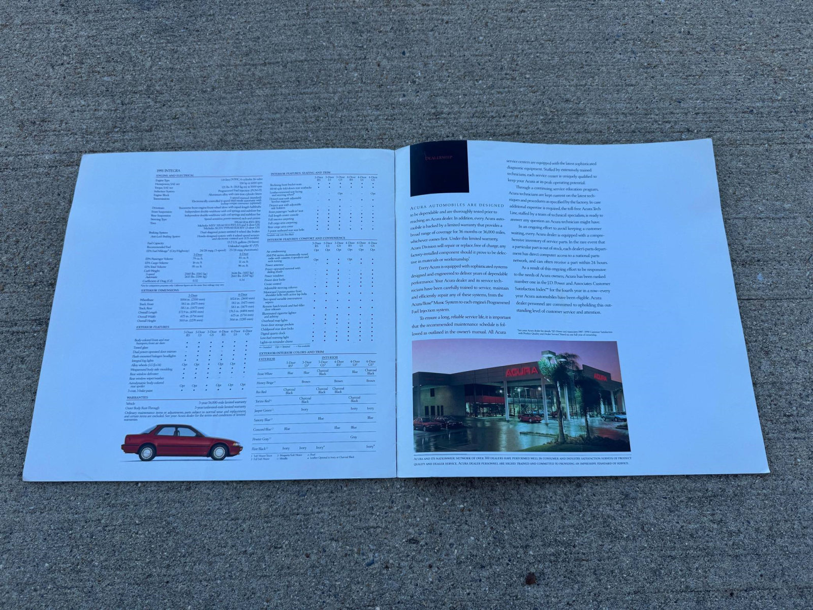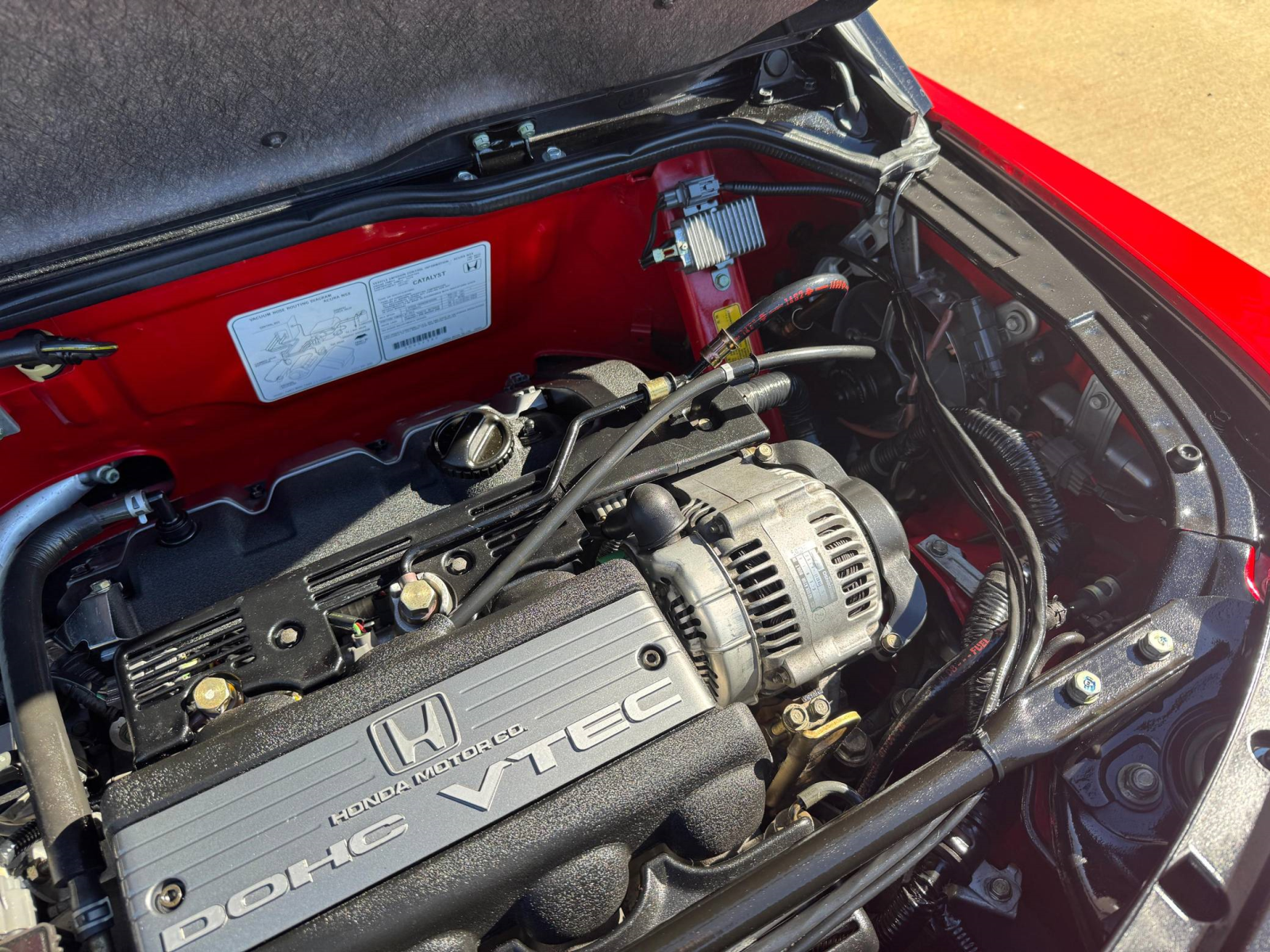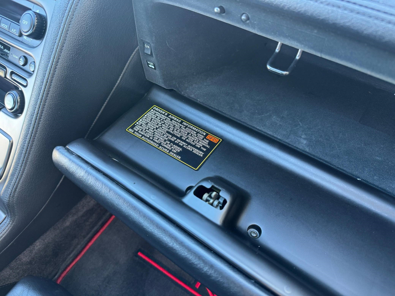- A window sticker is provided in the gallery, and a partial list of notable equipment reported by the selling dealer includes a limited-slip differential, pop-up headlights, leather upholstery, an Acura/Bose sound system, and cruise control. Notable modifications reported by the selling dealer are limited to KW coilovers.