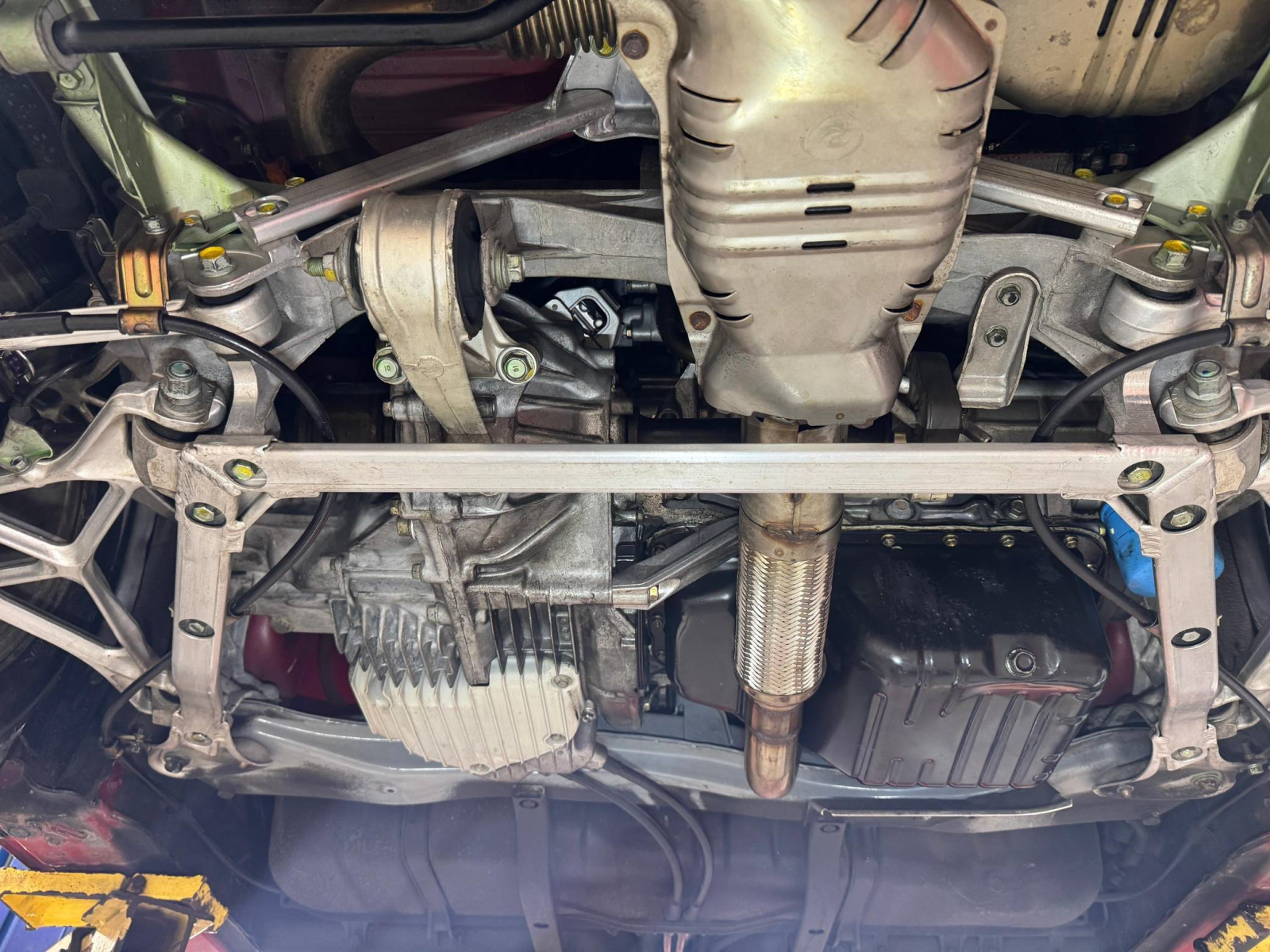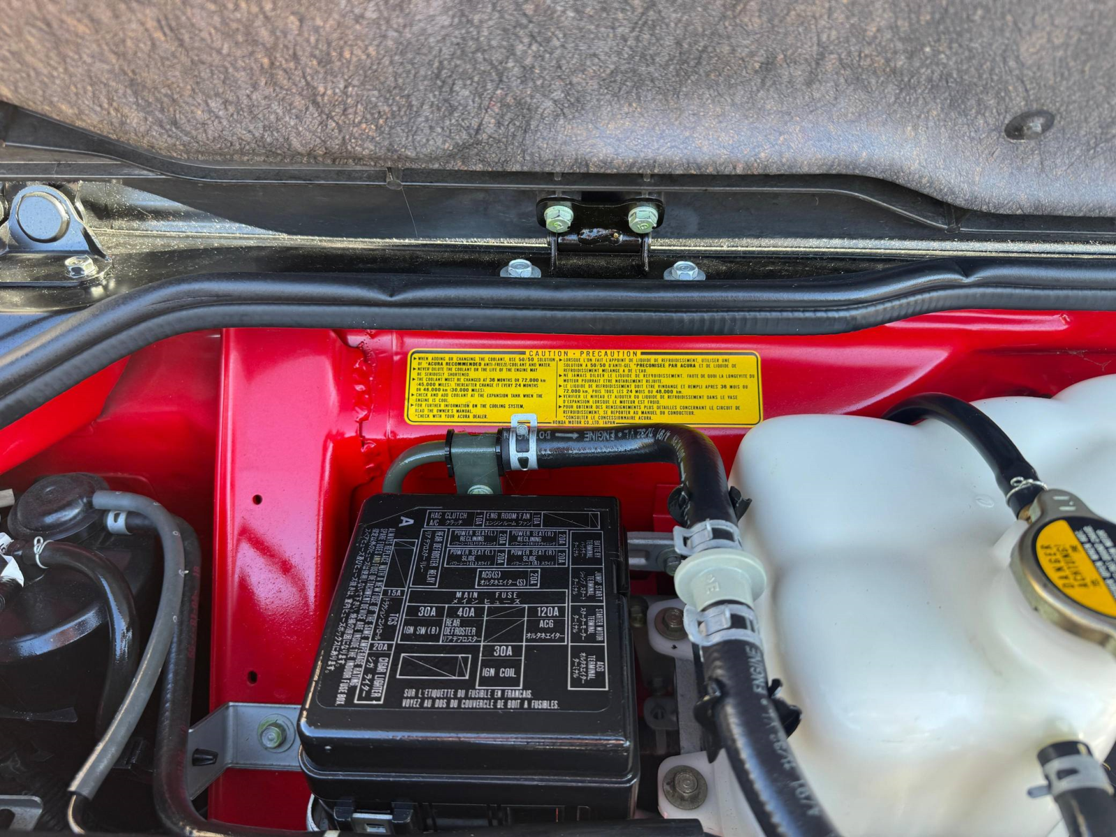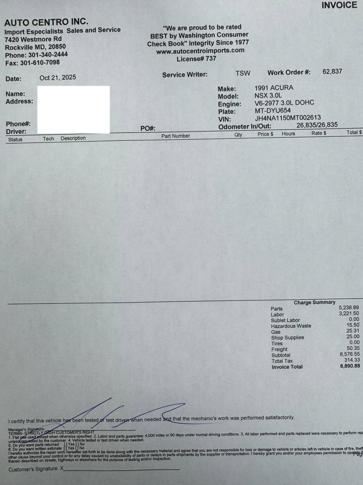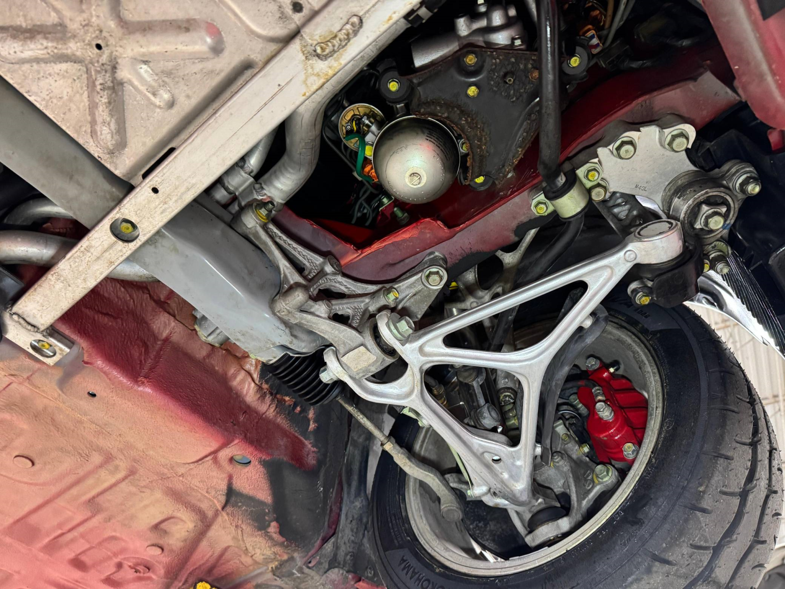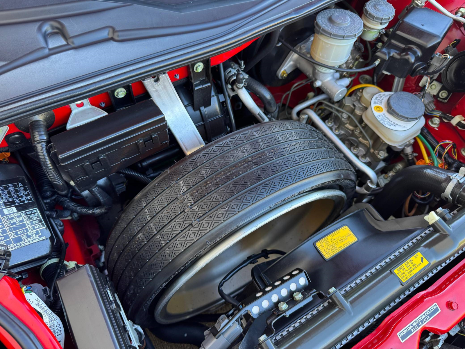 - October 2025 (26,835 miles): Engine oil and filter, coolant, transmission fluid, and brake fluid changed, timing belt, timing belt tensioner, water pump, thermostat, spark plugs, air filter, PCV valve, battery, fuel injector seals, 3 ignition coils, water temperature sensor, valve cover gasket, drive belts, timing cover gasket, rear trunk struts, and tires replaced, four-wheel alignment performed