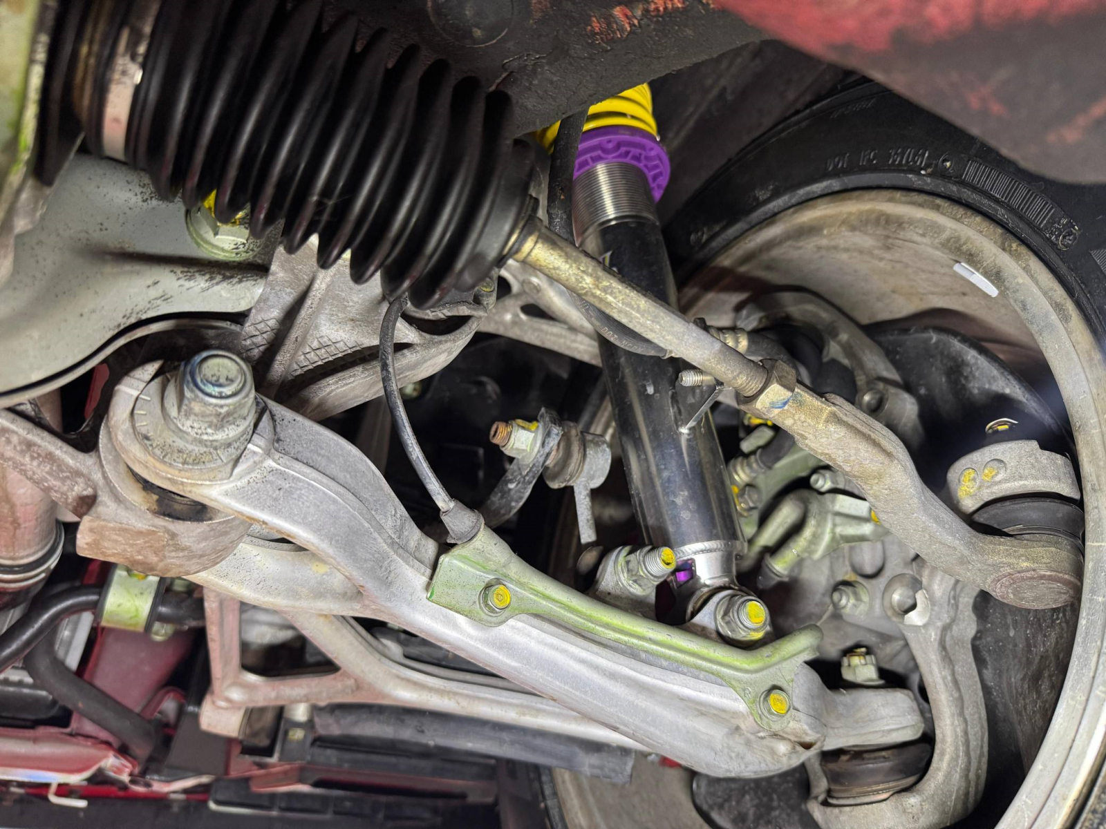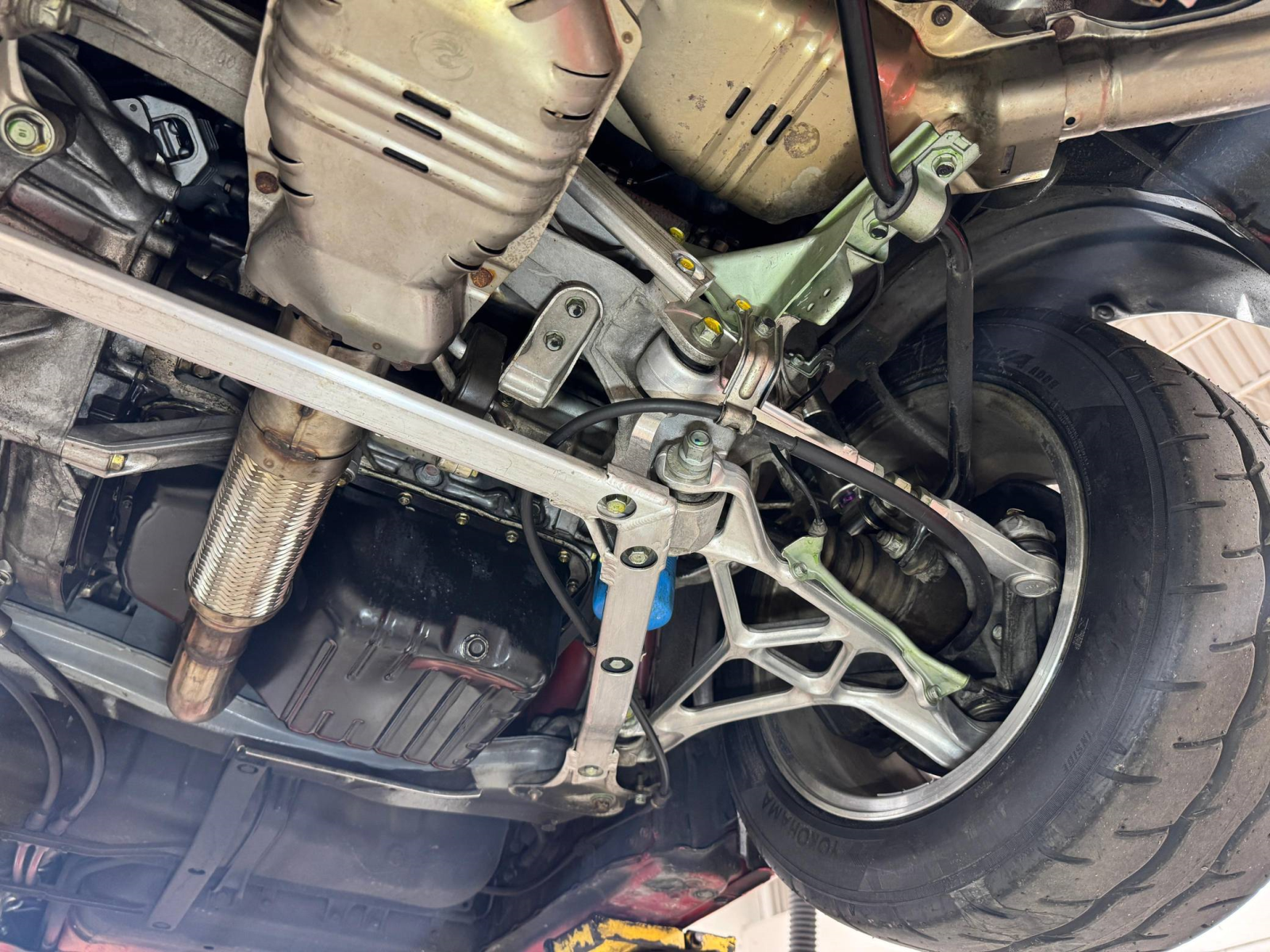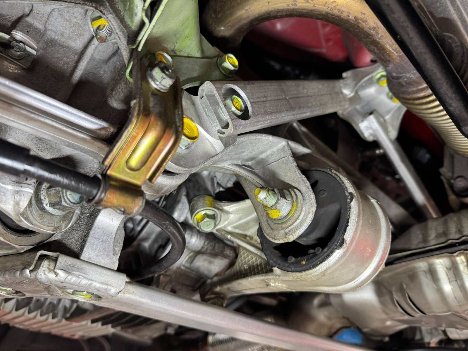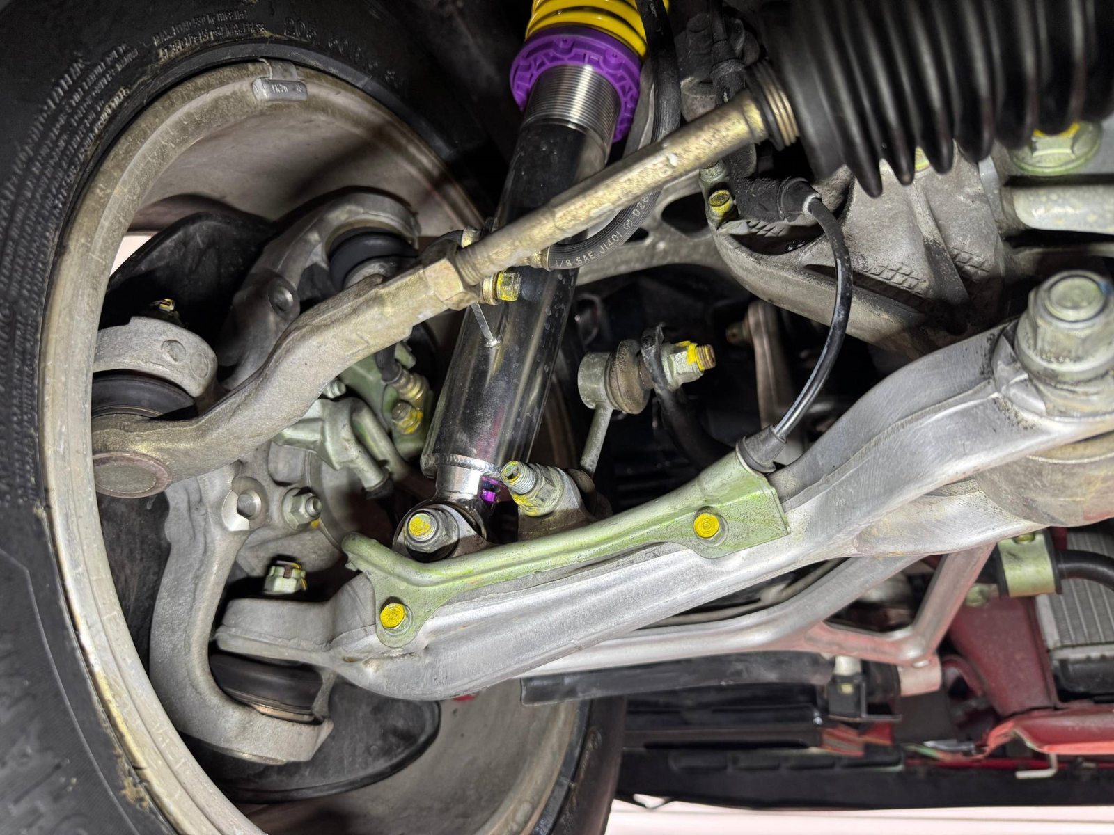 - October 2025 (26,835 miles): Engine oil and filter, coolant, transmission fluid, and brake fluid changed, timing belt, timing belt tensioner, water pump, thermostat, spark plugs, air filter, PCV valve, battery, fuel injector seals, 3 ignition coils, water temperature sensor, valve cover gasket, drive belts, timing cover gasket, rear trunk struts, and tires replaced, four-wheel alignment performed