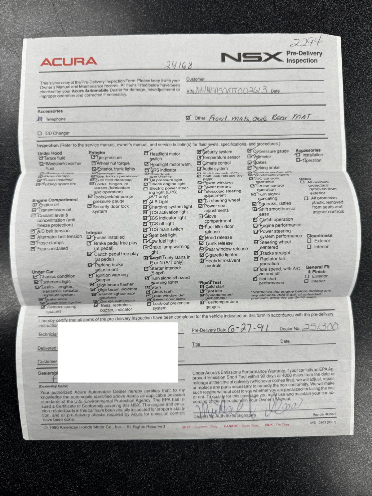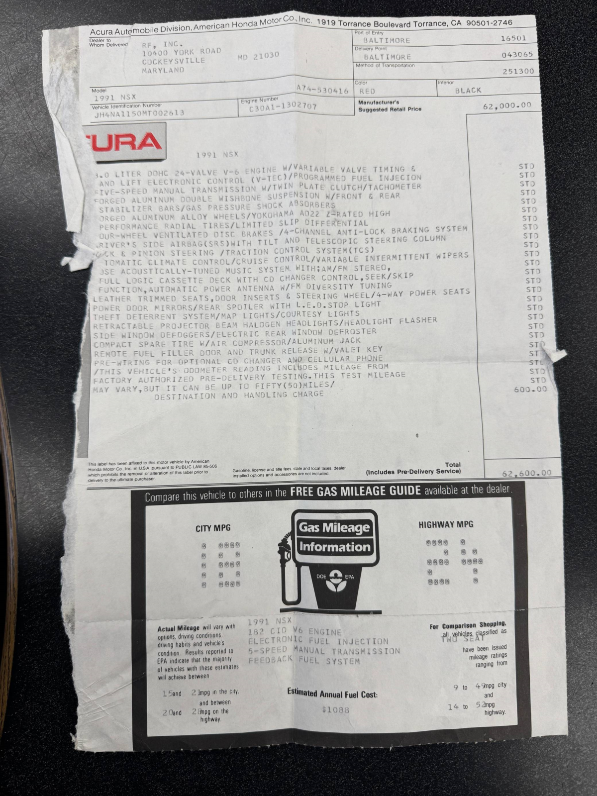 - Documentation in the gallery indicates that this NSX may be equipped with a Dinan ECU, but the selling dealer is not able to confirm.