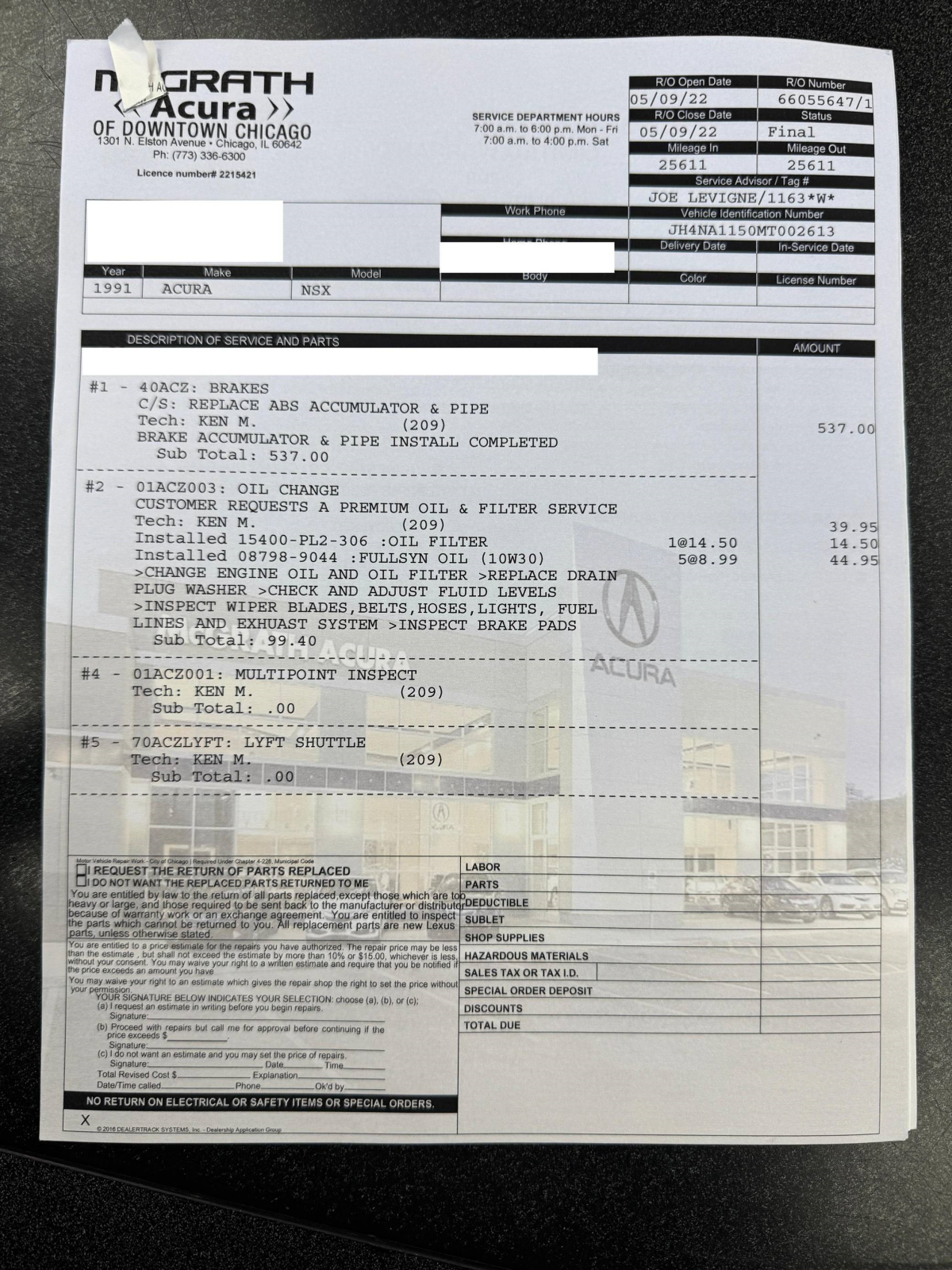 - May 2022 (25,611 miles): Engine oil and filter changed, ABS accumulator and pipe replaced