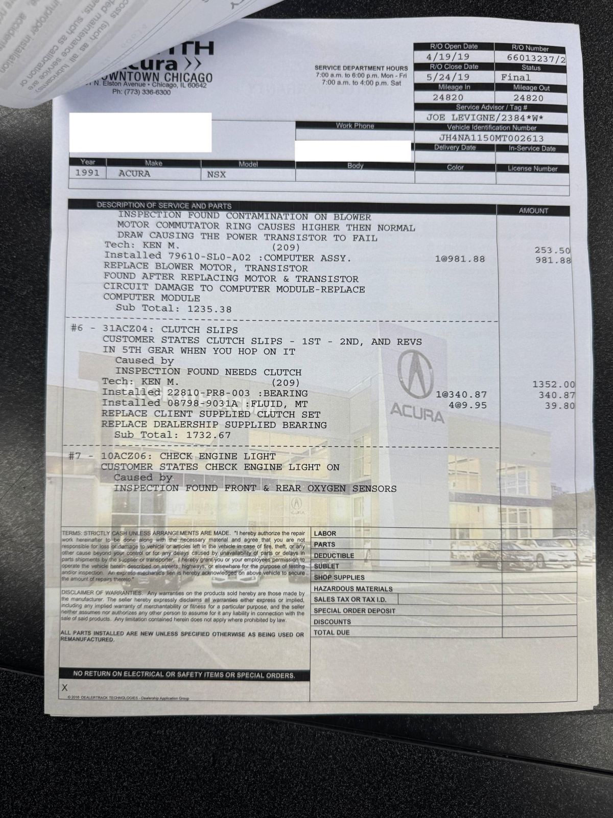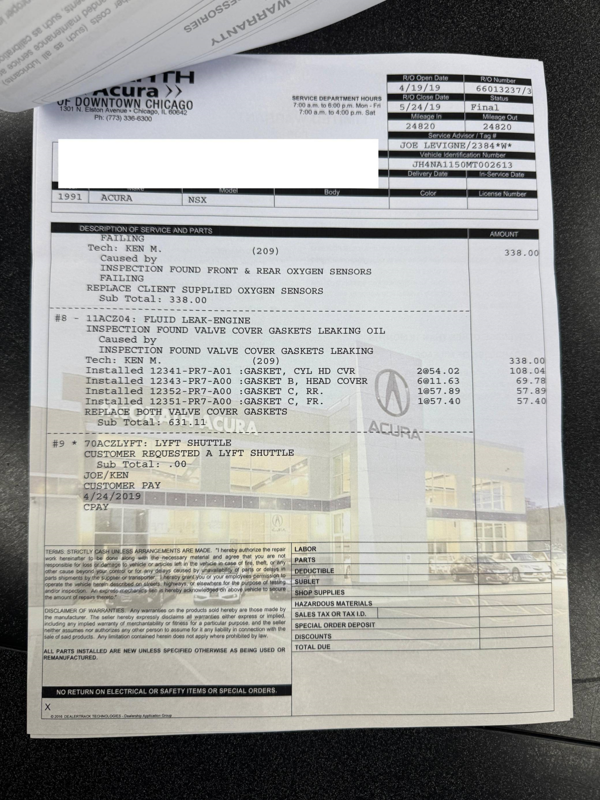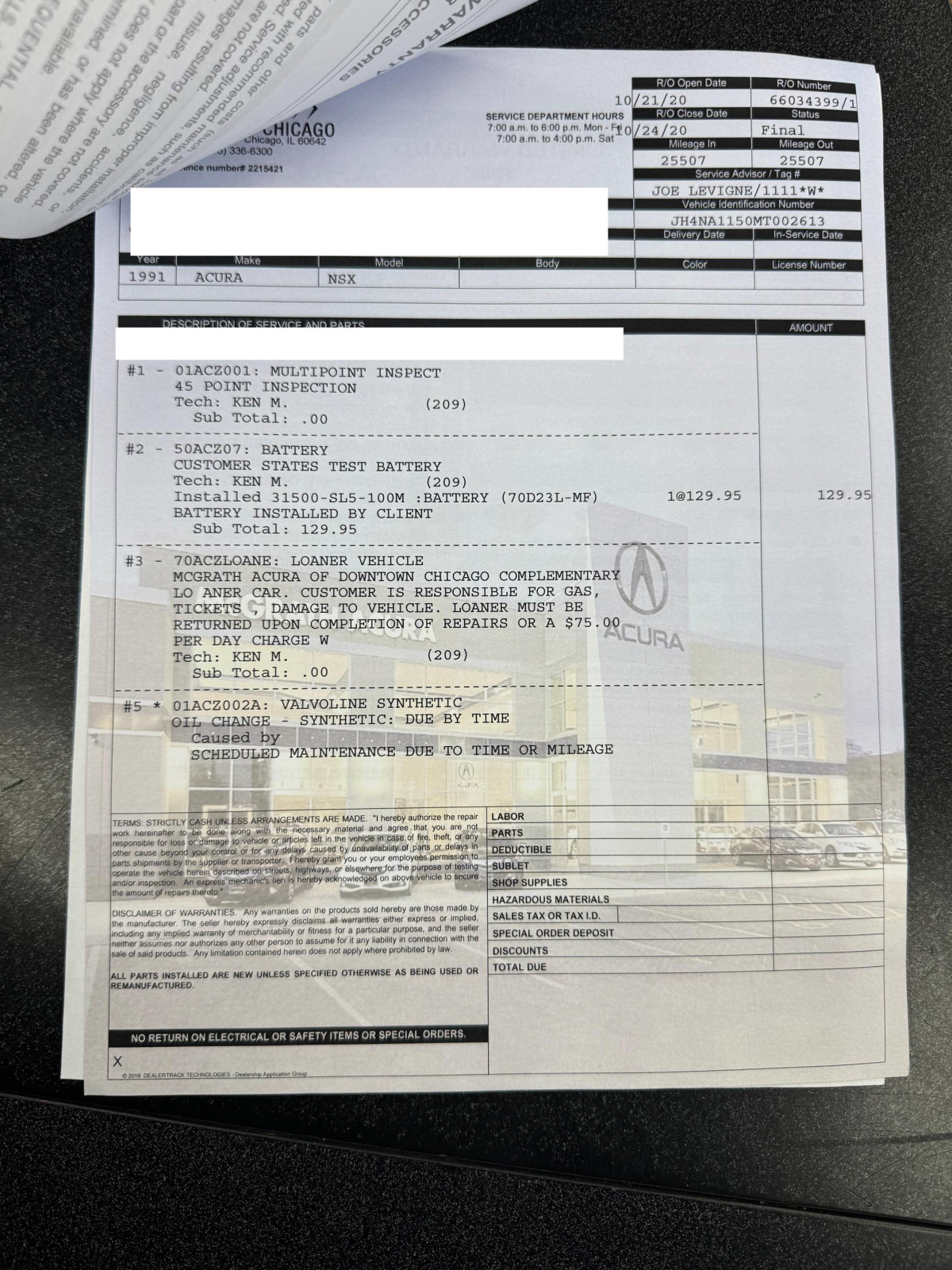 Service documentation in the gallery indicates that the following maintenance has been performed: