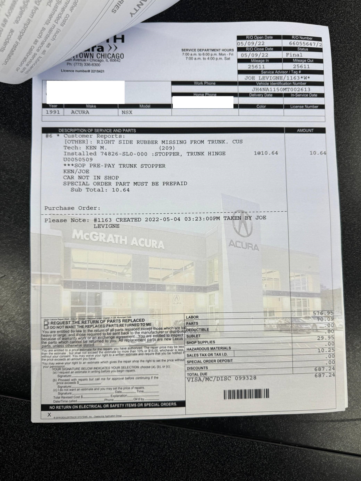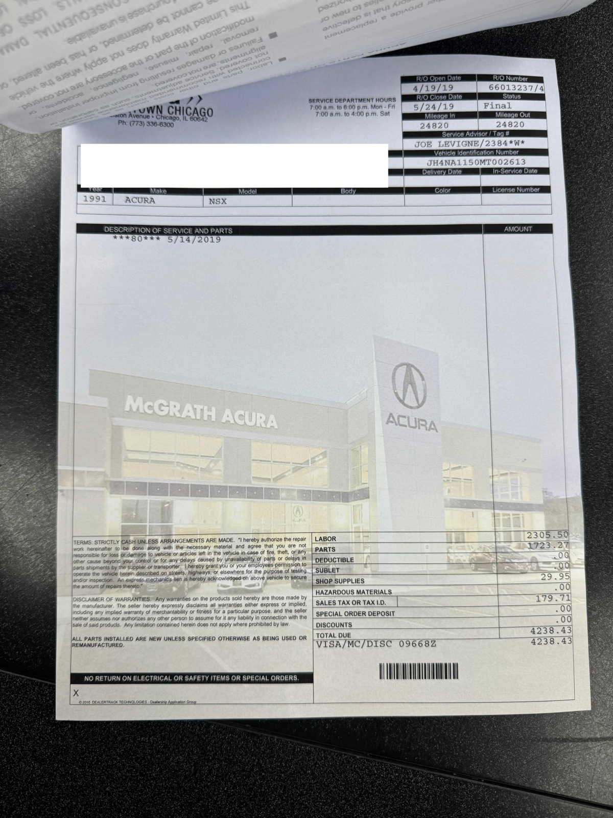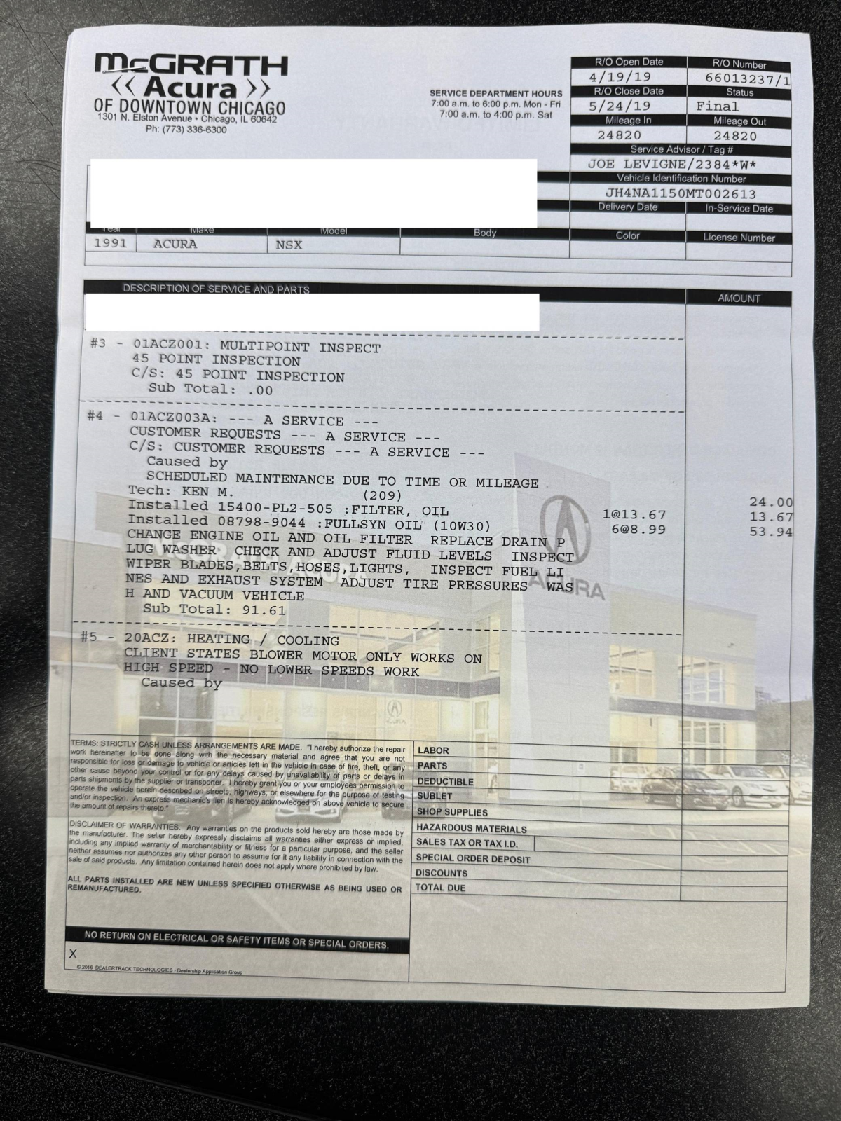 Service documentation in the gallery indicates that the following maintenance has been performed: