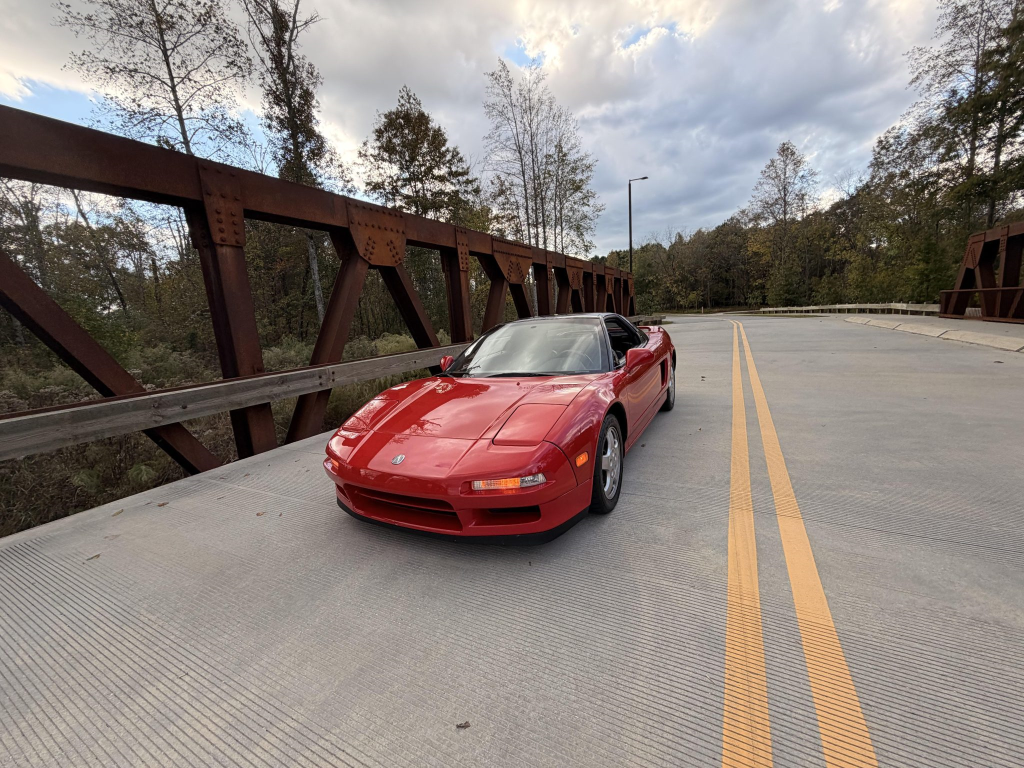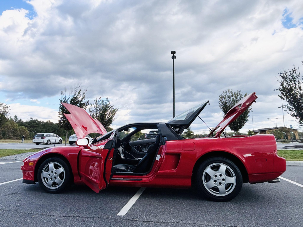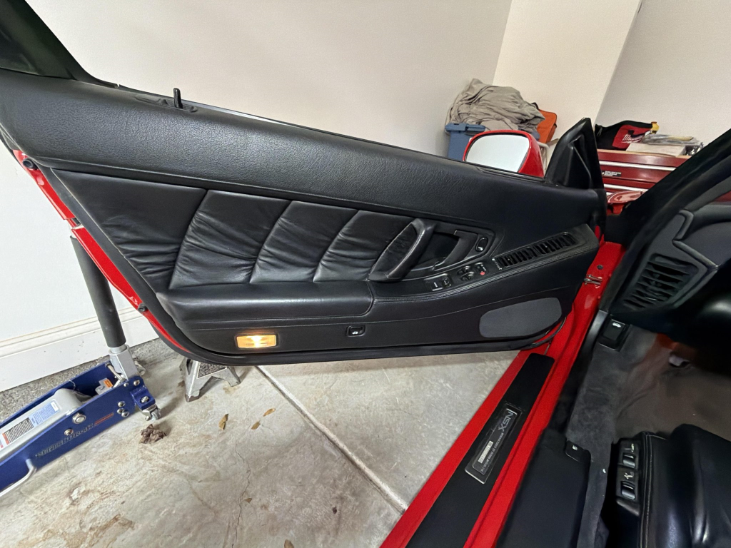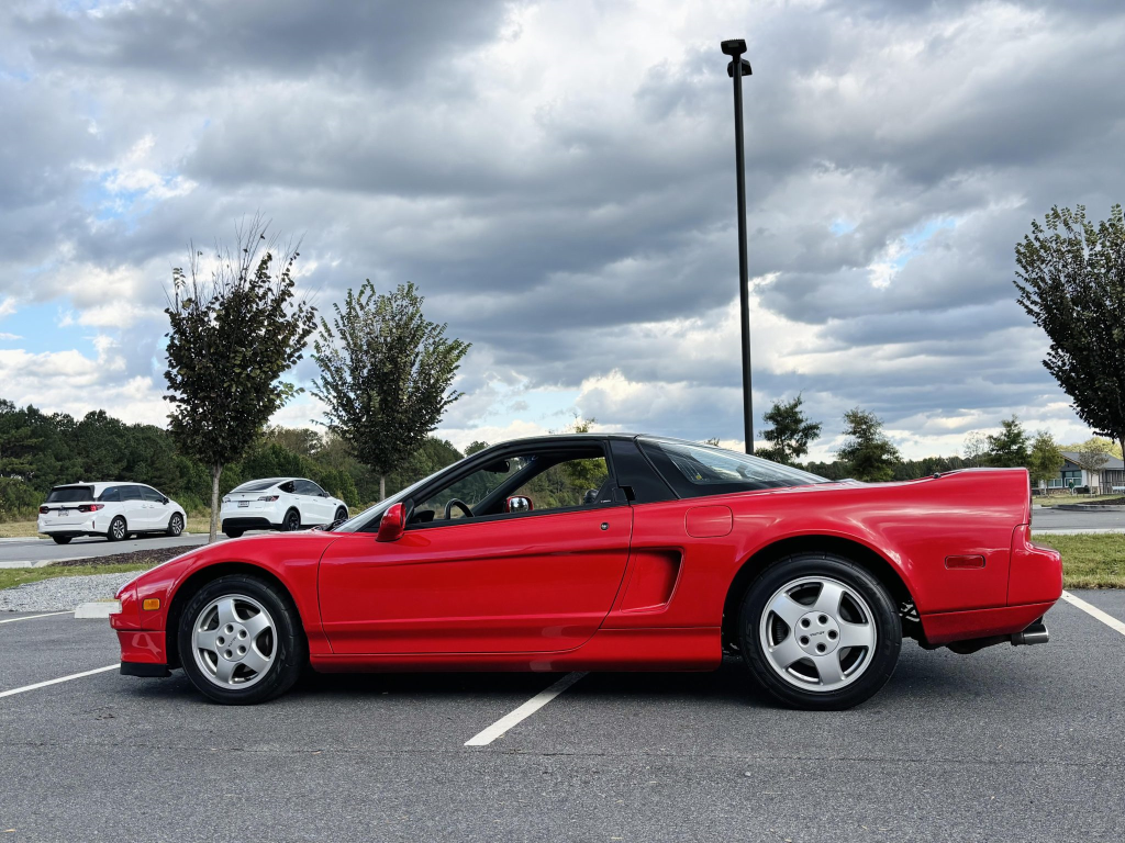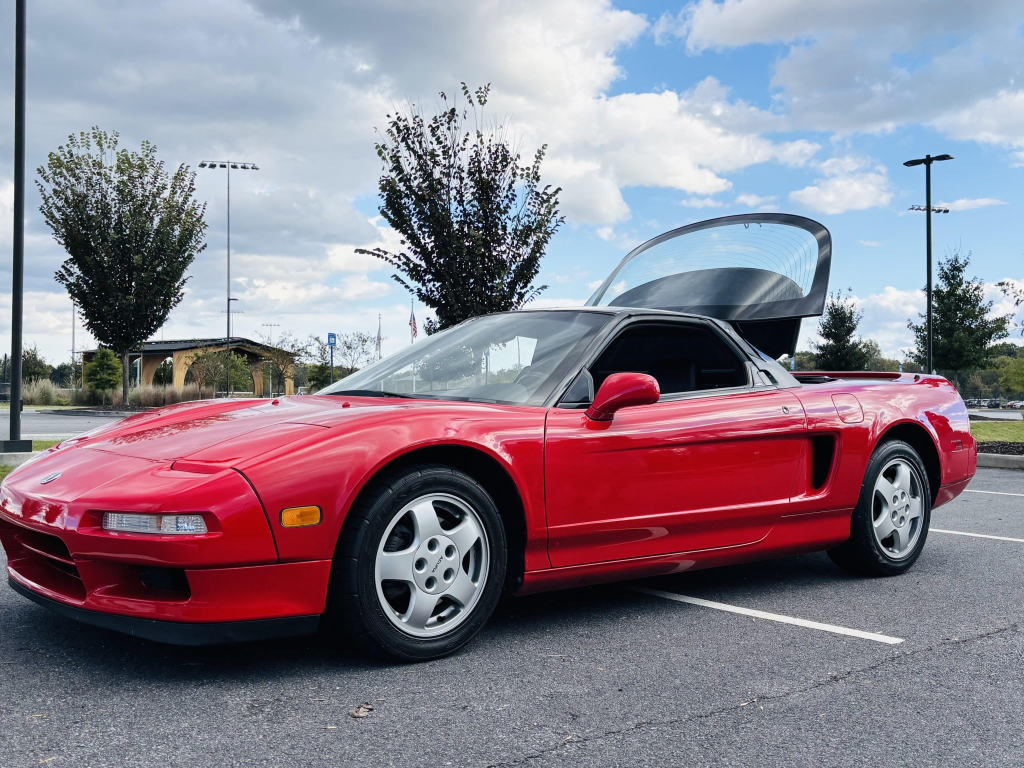 This 1992 Acura NSX shows 73k miles following registration history in North Carolina, Ohio, and Georgia, and it is powered by a 3.0-liter VTEC V6 paired with a five-speed manual transaxle. Finished in Formula Red over black leather upholstery, the car is equipped with staggered-diameter 15″ and 16″ forged wheels, a limited-slip differential, a black roof panel, pop-up headlights, power-adjustable seats, automatic climate control, cruise control, and a Bose sound system. This NSX was purchased by the seller in 2020 and is now offered with a clean Carfax report and a clean Georgia title in the seller’s name.