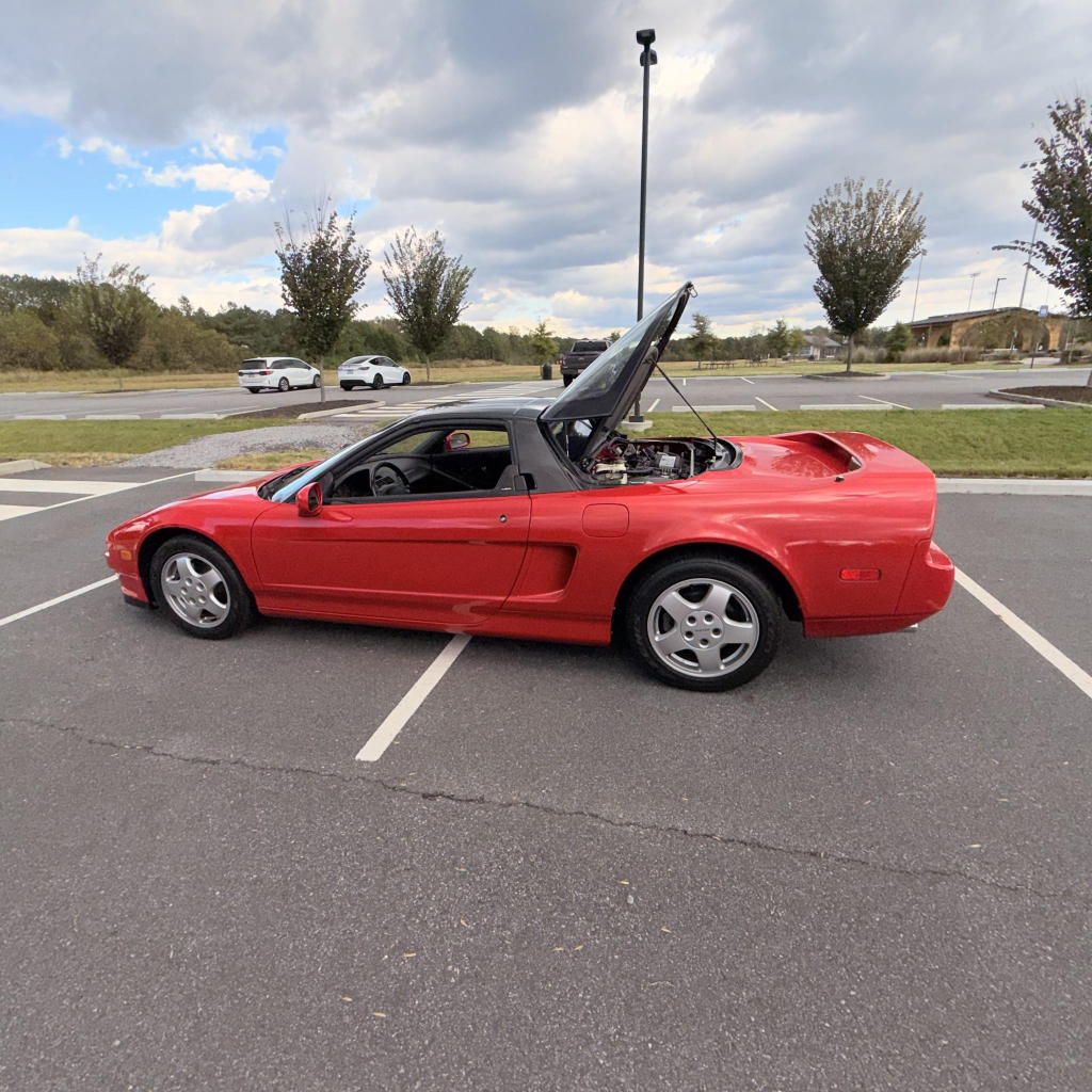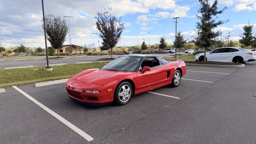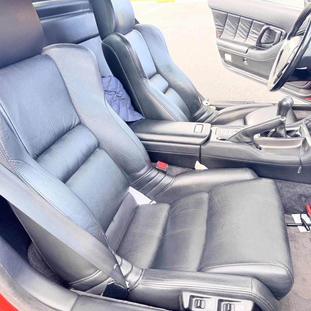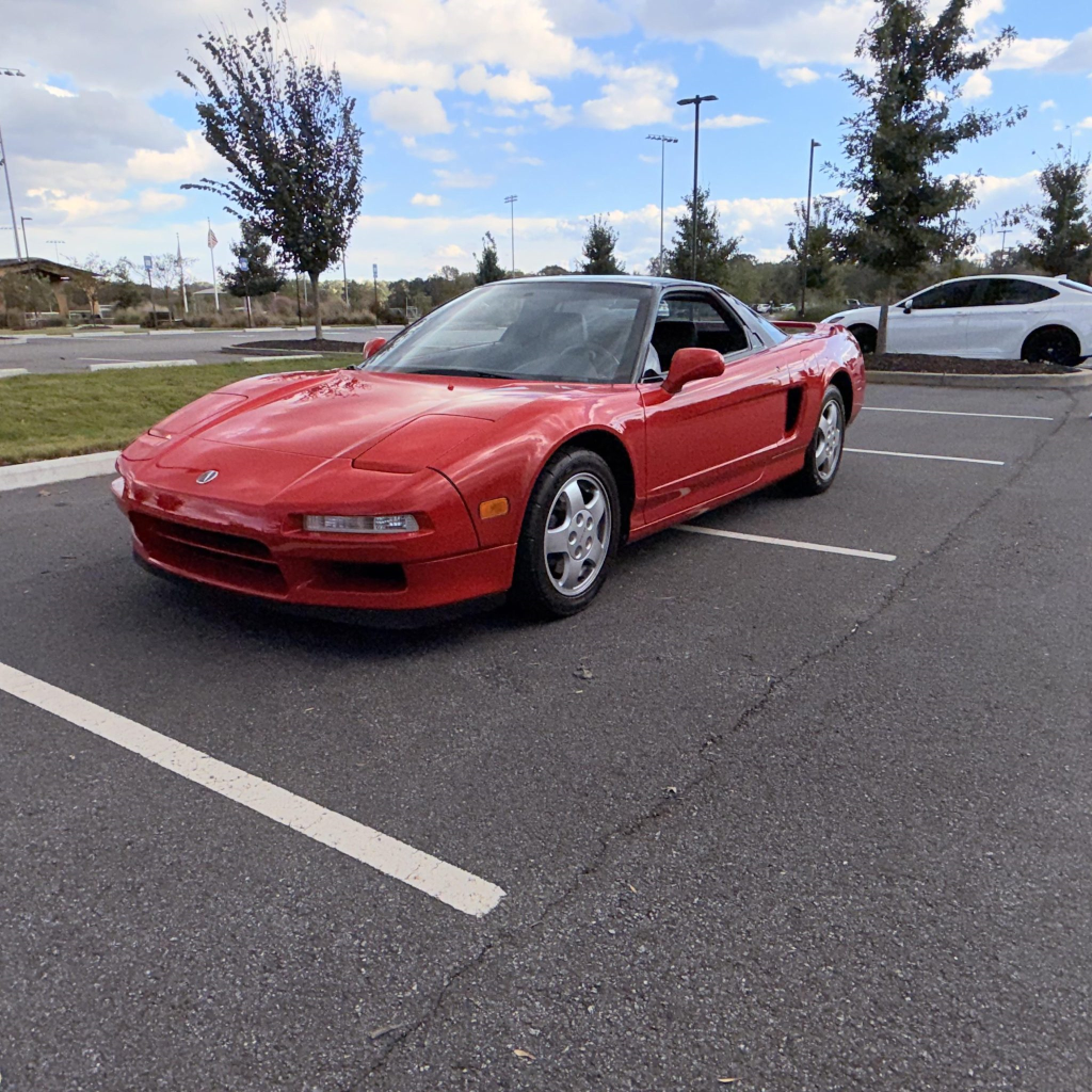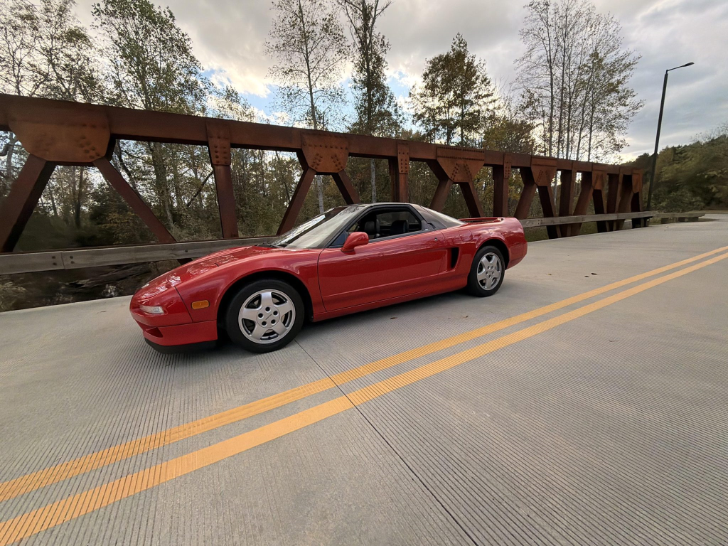 This 1992 Acura NSX shows 73k miles following registration history in North Carolina, Ohio, and Georgia, and it is powered by a 3.0-liter VTEC V6 paired with a five-speed manual transaxle. Finished in Formula Red over black leather upholstery, the car is equipped with staggered-diameter 15″ and 16″ forged wheels, a limited-slip differential, a black roof panel, pop-up headlights, power-adjustable seats, automatic climate control, cruise control, and a Bose sound system. This NSX was purchased by the seller in 2020 and is now offered with a clean Carfax report and a clean Georgia title in the seller’s name.