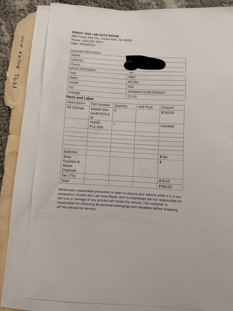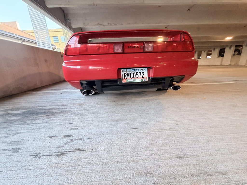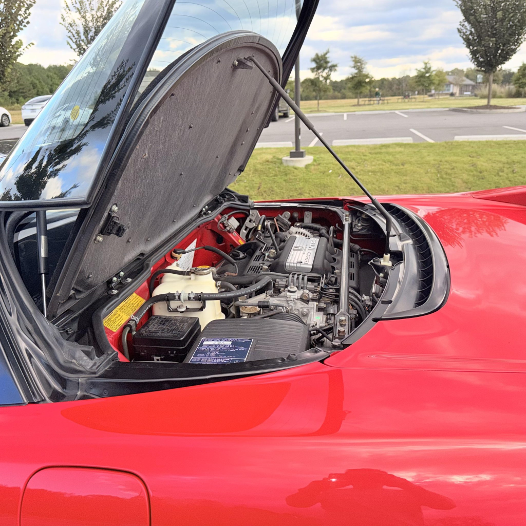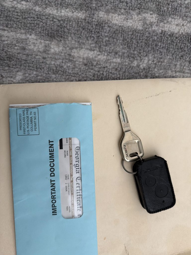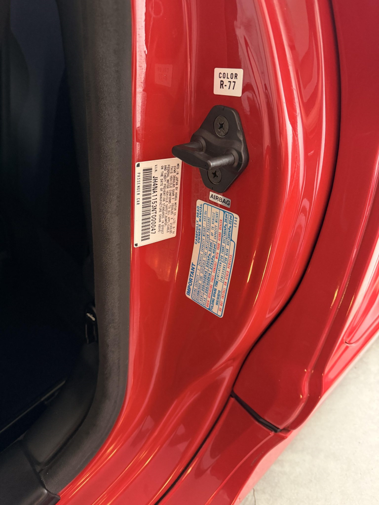This 1992 Acura NSX shows 73k miles following registration history in North Carolina, Ohio, and Georgia, and it is powered by a 3.0-liter VTEC V6 paired with a five-speed manual transaxle. Finished in Formula Red over black leather upholstery, the car is equipped with staggered-diameter 15″ and 16″ forged wheels, a limited-slip differential, a black roof panel, pop-up headlights, power-adjustable seats, automatic climate control, cruise control, and a Bose sound system. This NSX was purchased by the seller in 2020 and is now offered with a clean Carfax report and a clean Georgia title in the seller’s name.