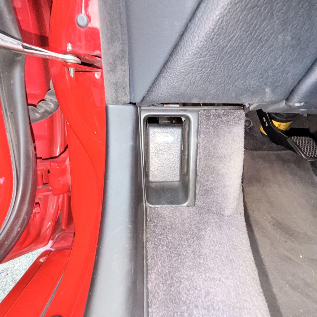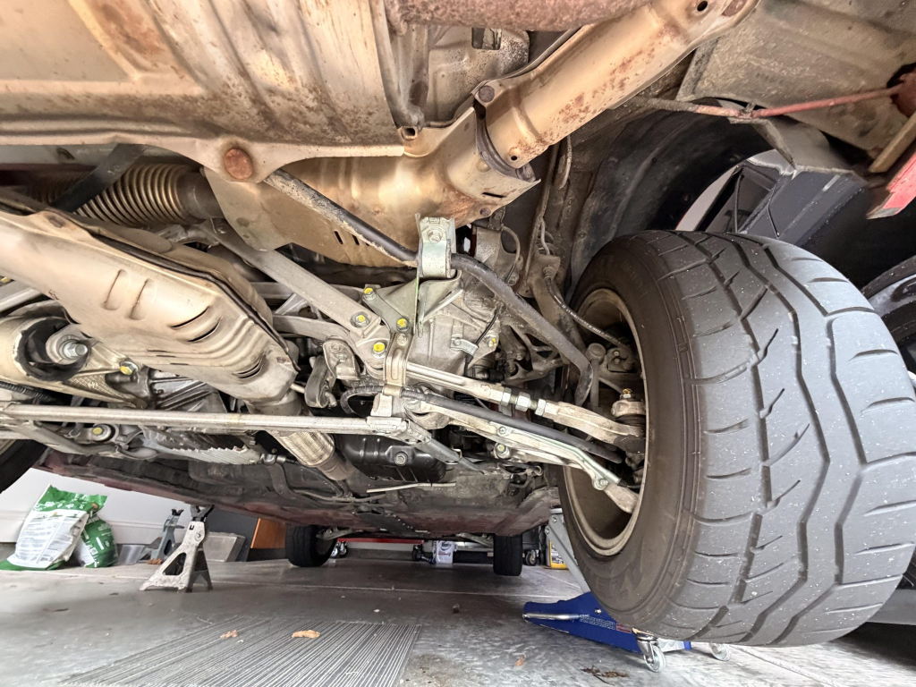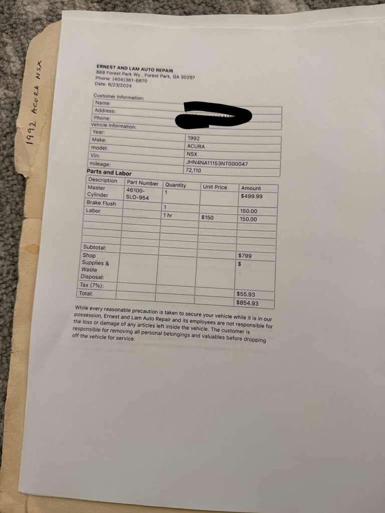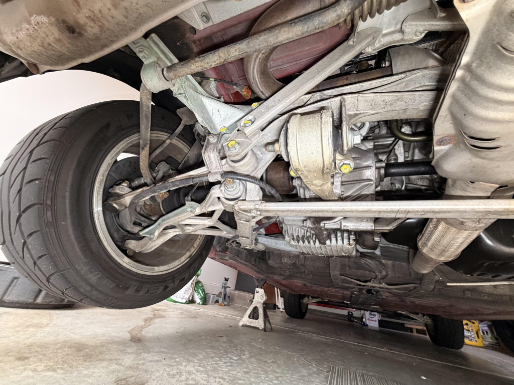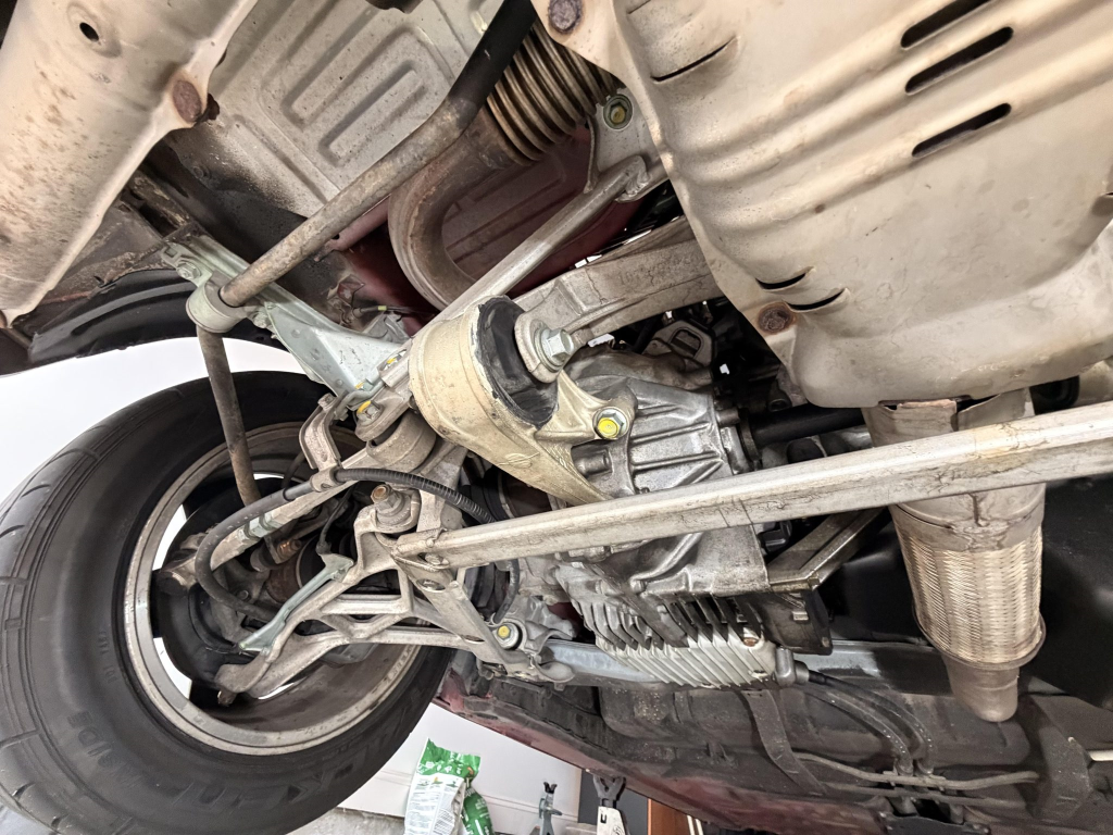 Staggered-diameter 15″ and 16″ five-spoke forged wheels are mounted with Falken tires. The car features a four-wheel double-wishbone suspension with front and rear stabilizer bars, and braking is handled by NSX-branded calipers over vented rotors at each corner. A replacement brake primary cylinder was installed in 2024, according to the seller.