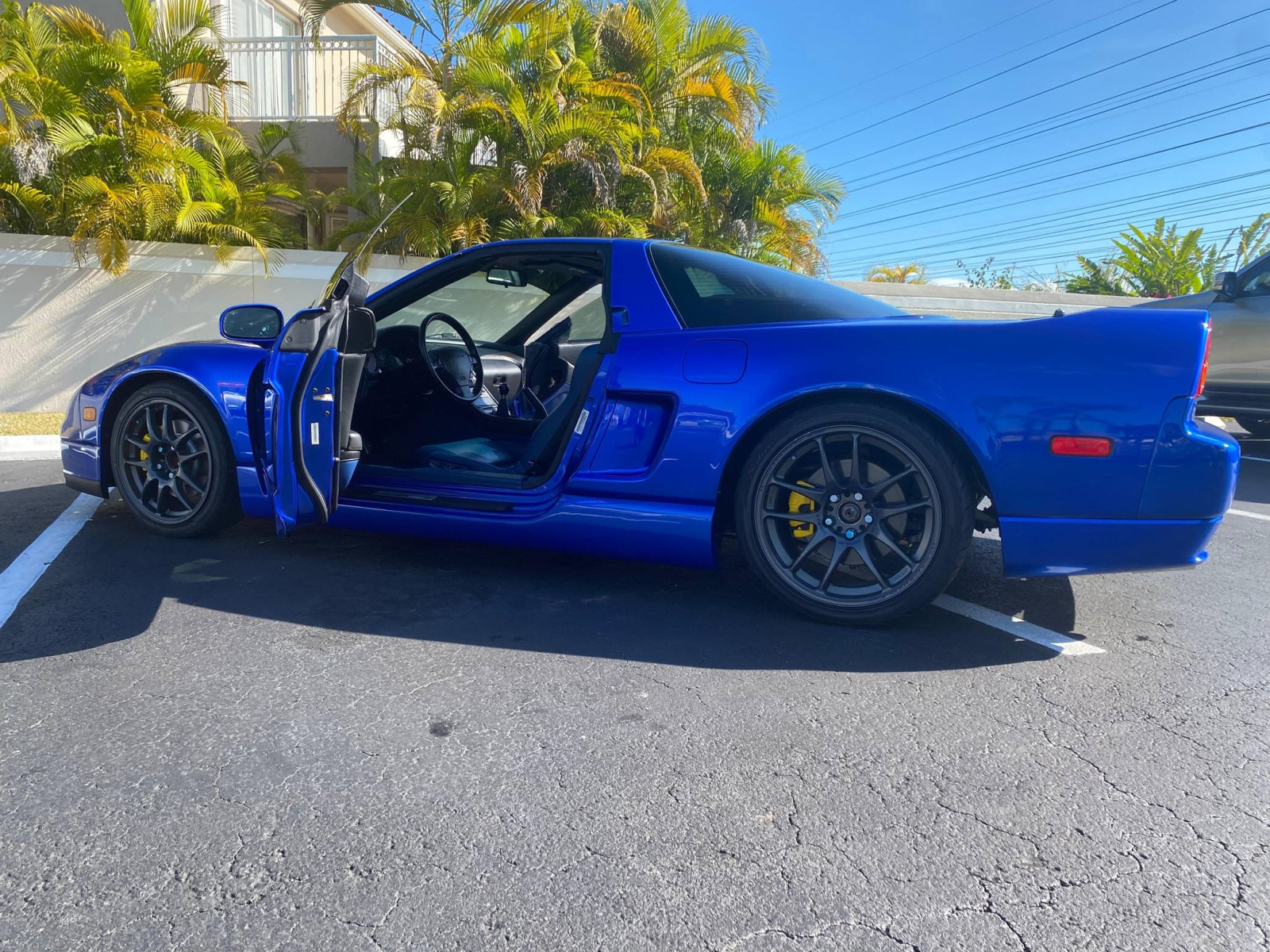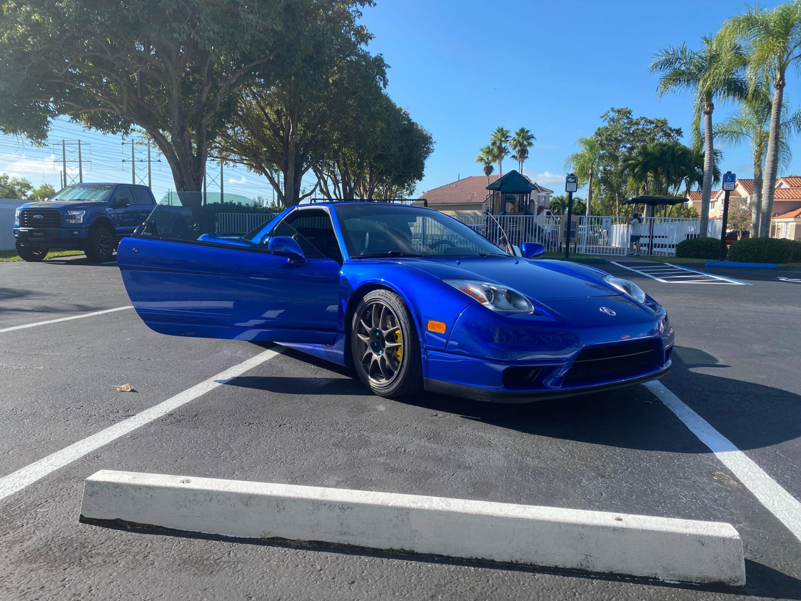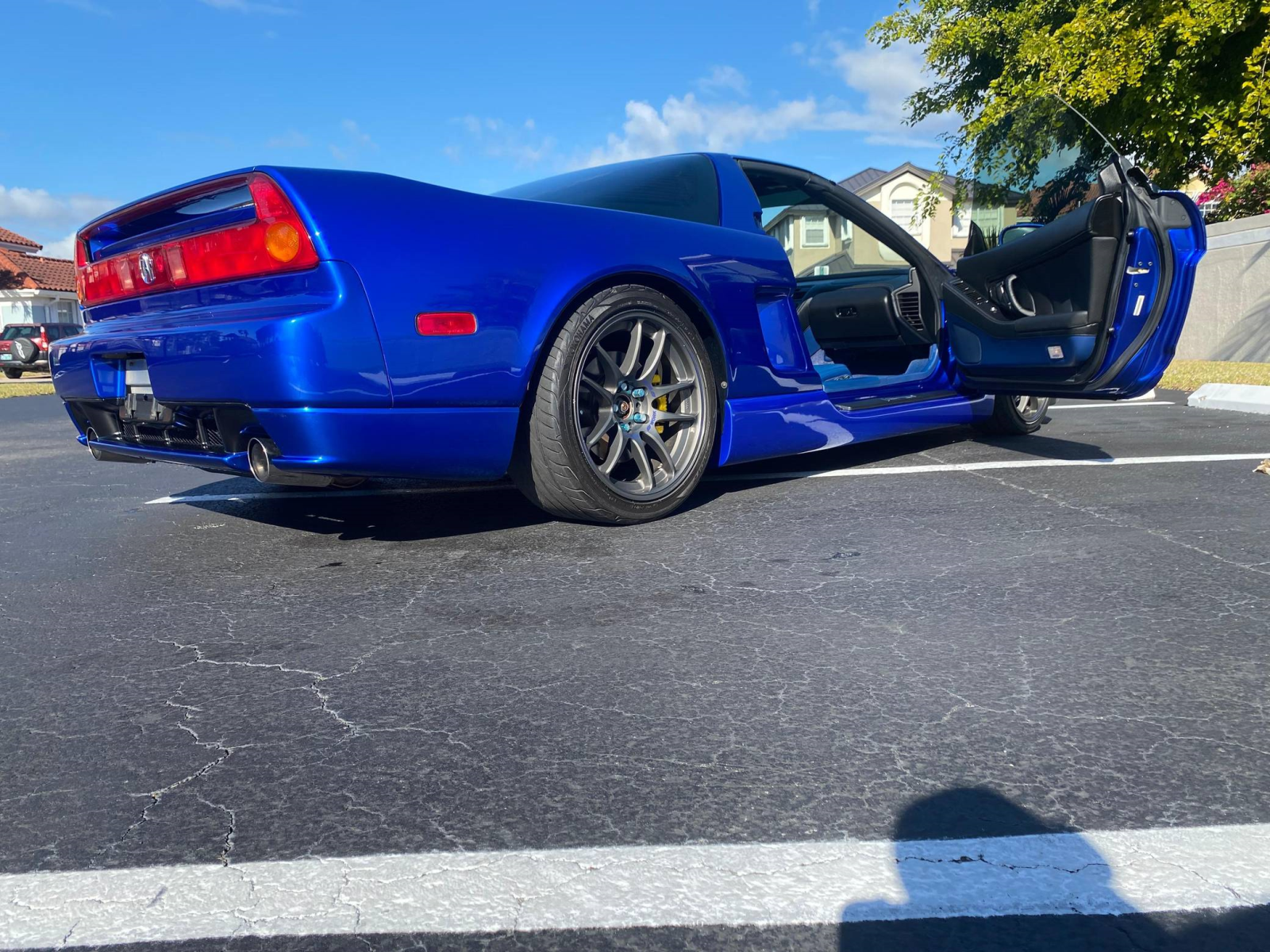 THIS… is a 2004 Acura NSX-T, finished in Long Beach Blue Pearl with a blue interior.