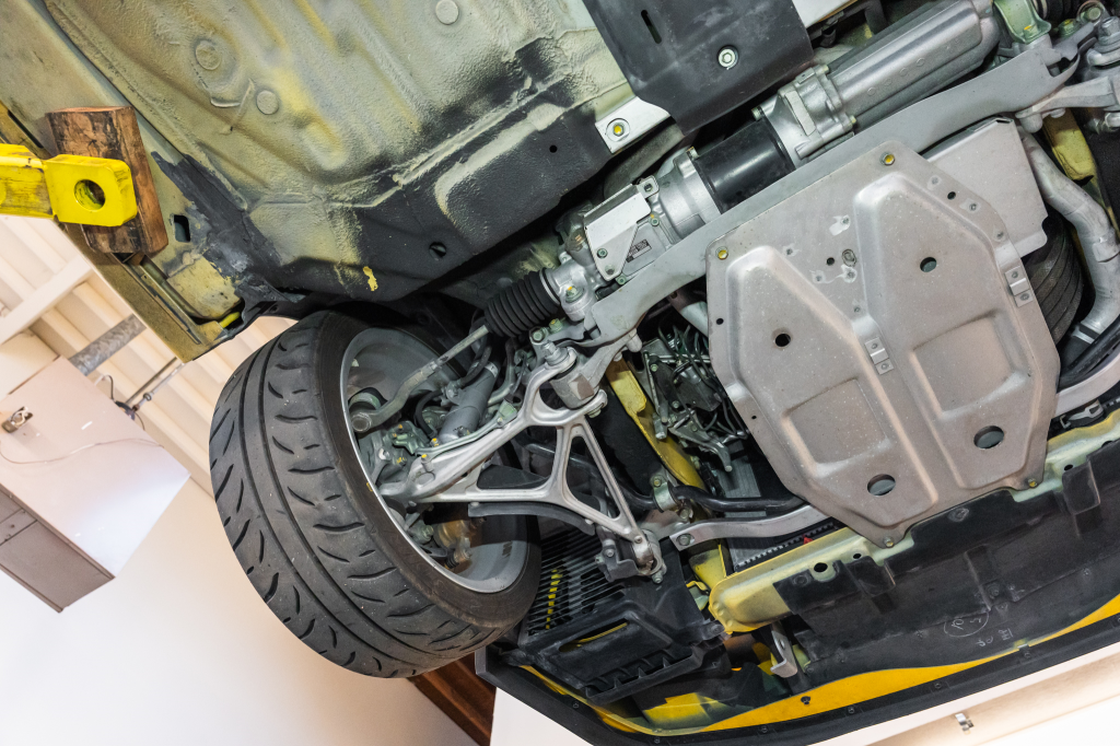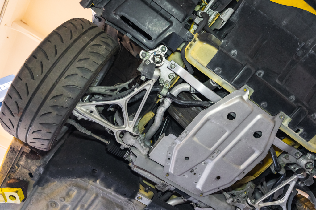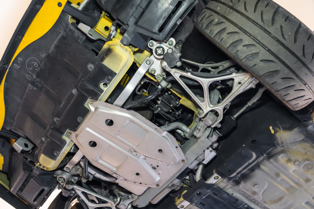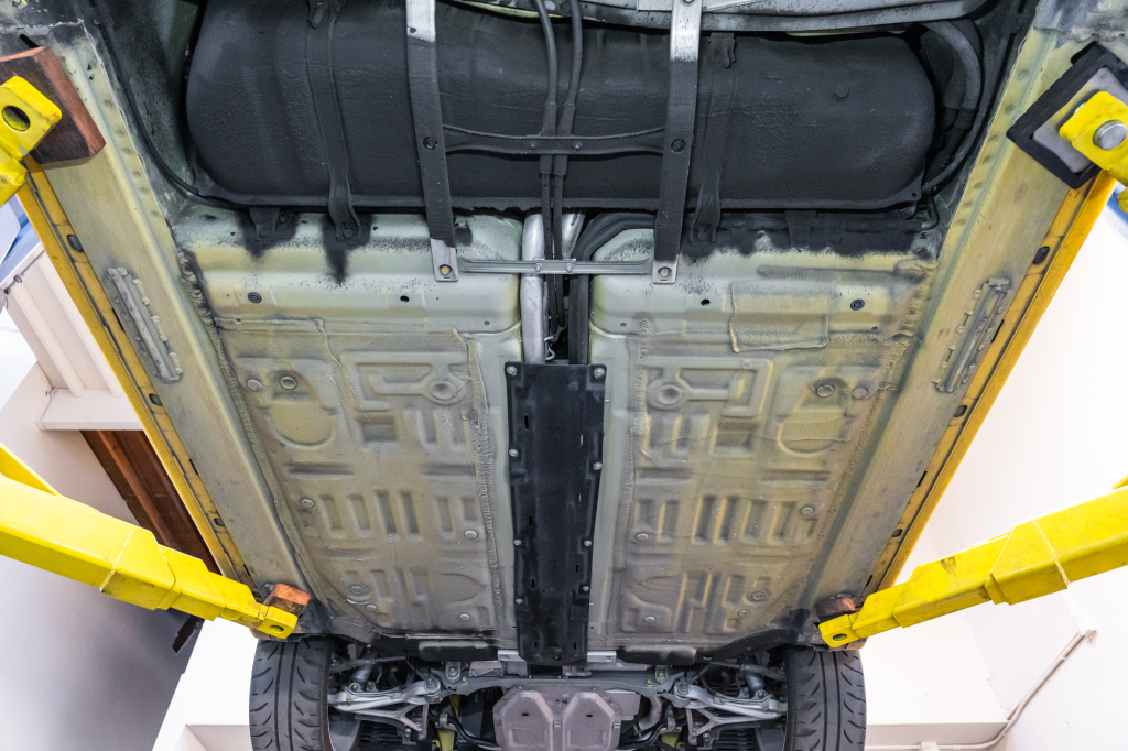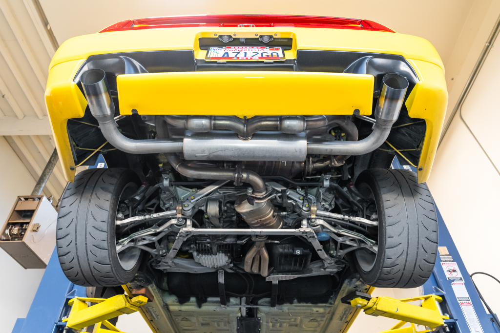 Power is routed to the rear wheels via a six-speed manual transaxle and a limited-slip differential. Replacement clutch hydraulic cylinders and a stainless-steel line were fitted in October 2024, and the transmission fluid was changed the following February.