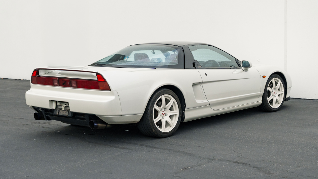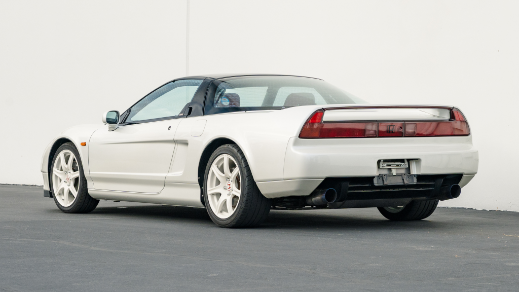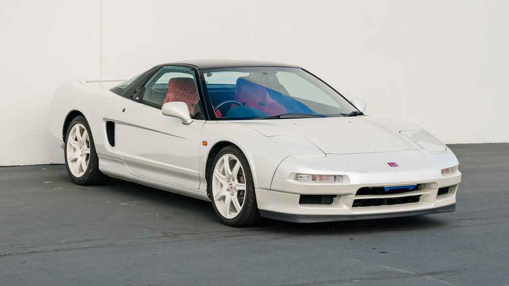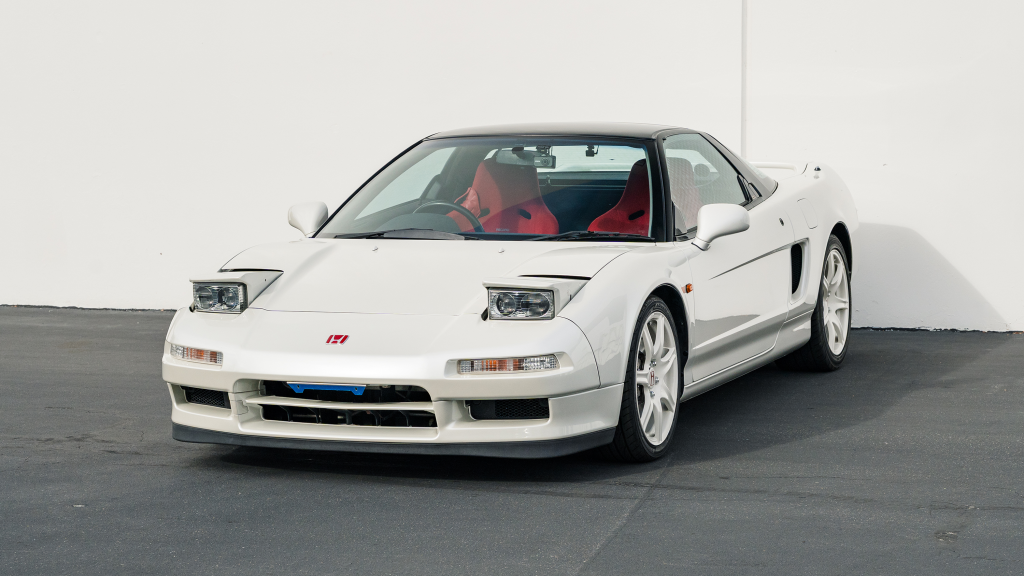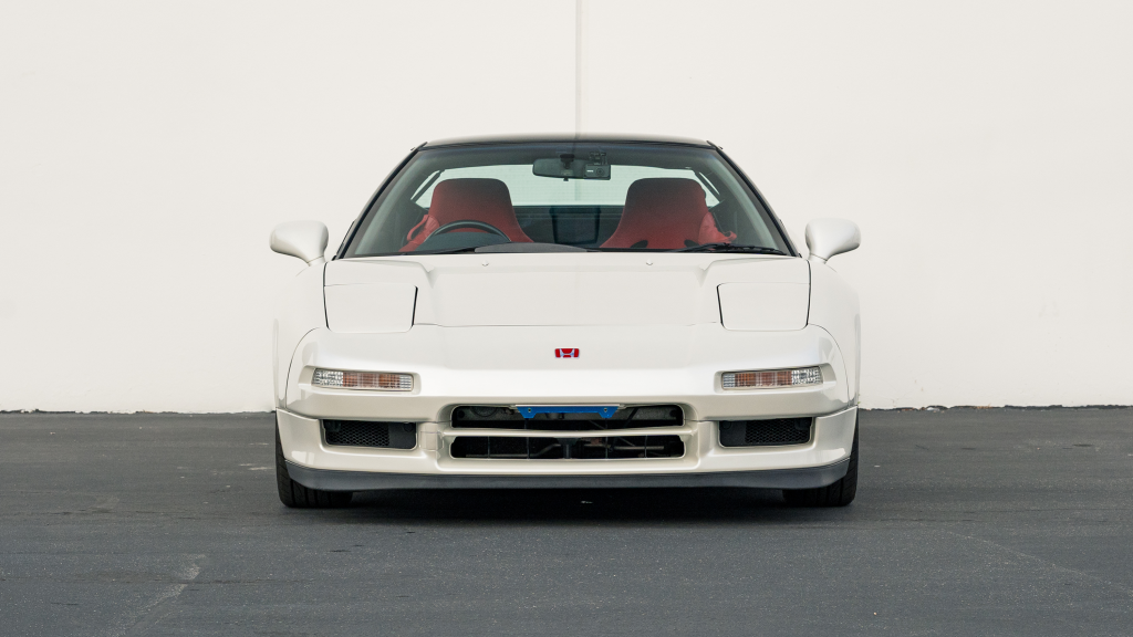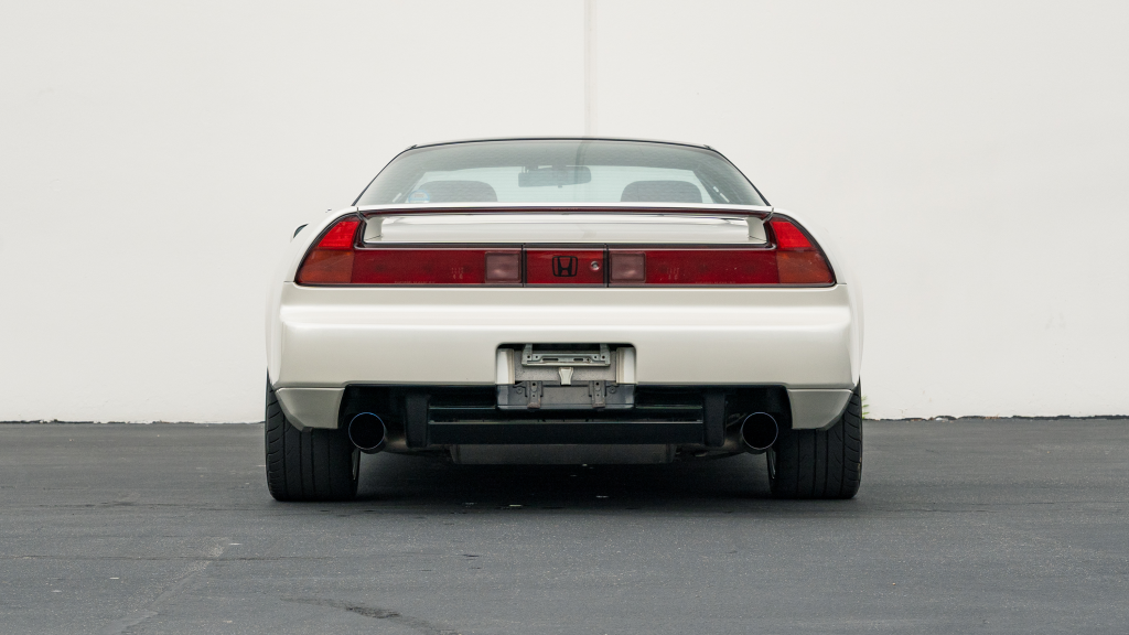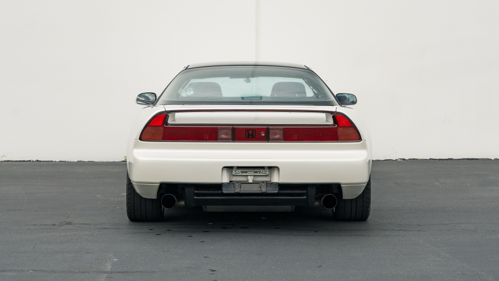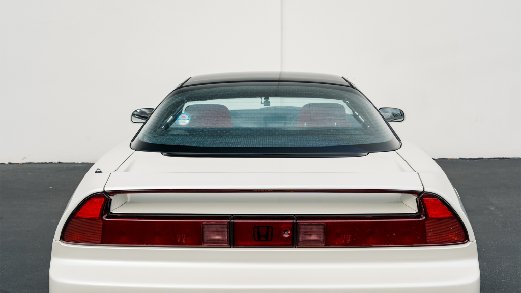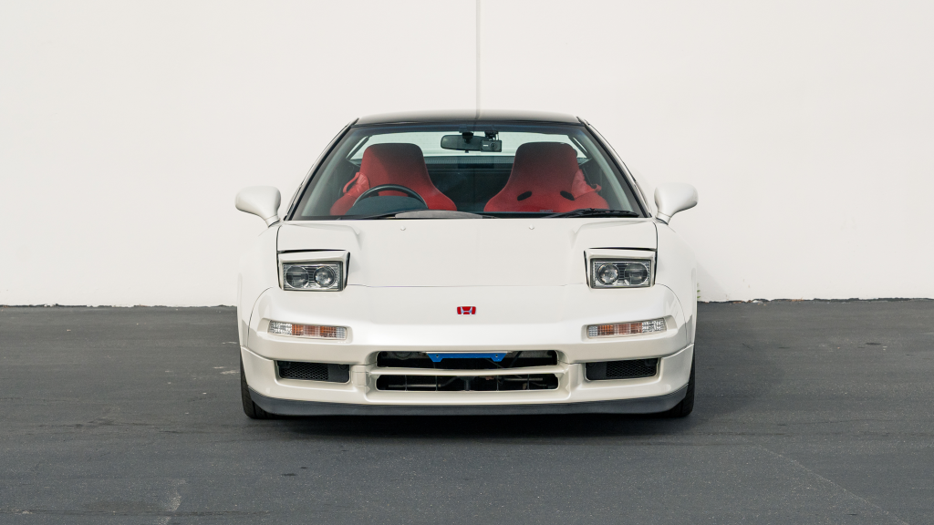 This 1993 Honda NSX-R is one of 483 first-generation Type R examples produced for the Japanese market between 1992 and 1995, and it is said to have remained under original ownership in Japan through 2025, when it was imported to the US by the seller. Finished in Neutron White Pearl with a black roof panel, the car is powered by a 3.0-liter V6 mated to a five-speed manual transaxle with a 4.235:1 final-drive ratio and a limited-slip differential. It rides on white-painted forged alloy wheels and is further equipped with front chassis braces, a stiffened suspension, unassisted steering, four-wheel ventilated disc brakes, and aftermarket exhaust components. Inside, Recaro carbon-Kevlar seats are trimmed in red Alcantara and accompanied by a MOMO steering wheel, a titanium shift knob, and an optional cassette stereo and air conditioning. This NSX-R is now offered in Huntington Beach, California, with a CarVX report and a Montana title in the name of the seller’s company.
