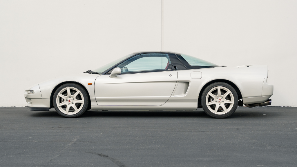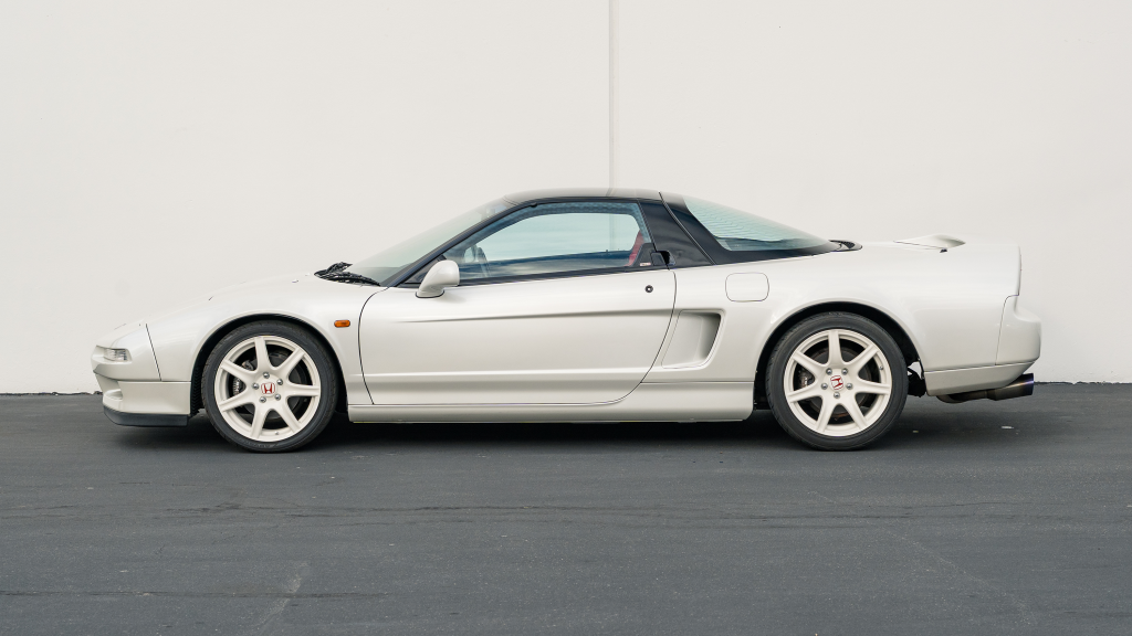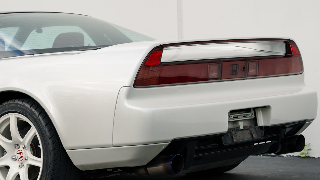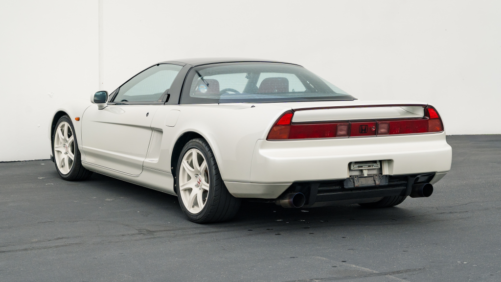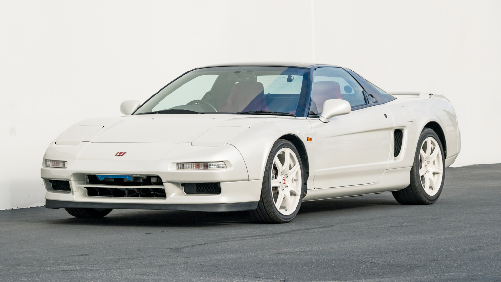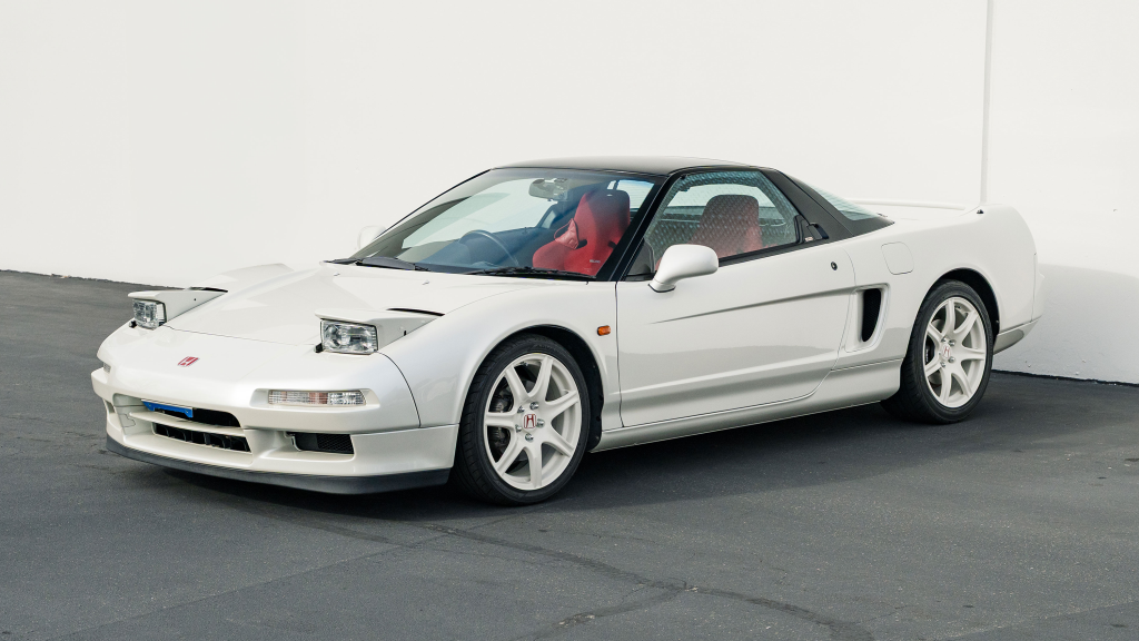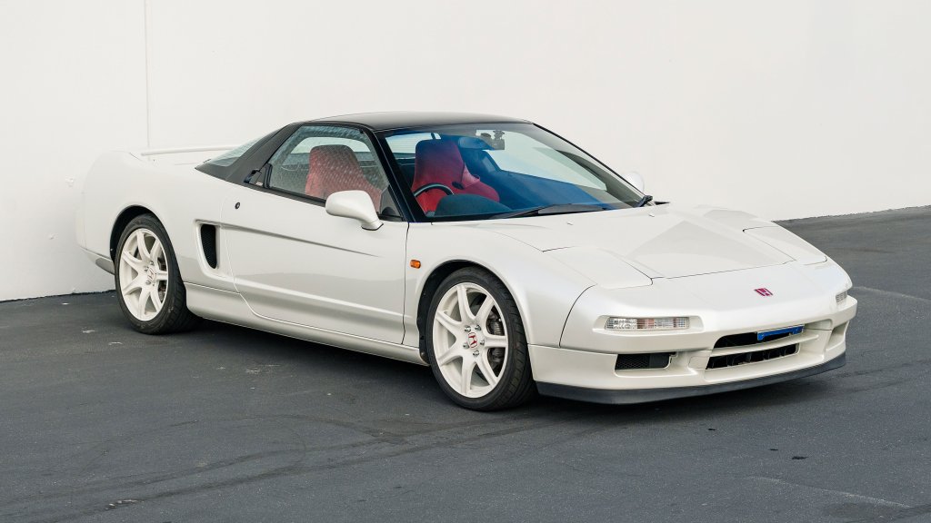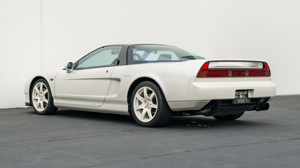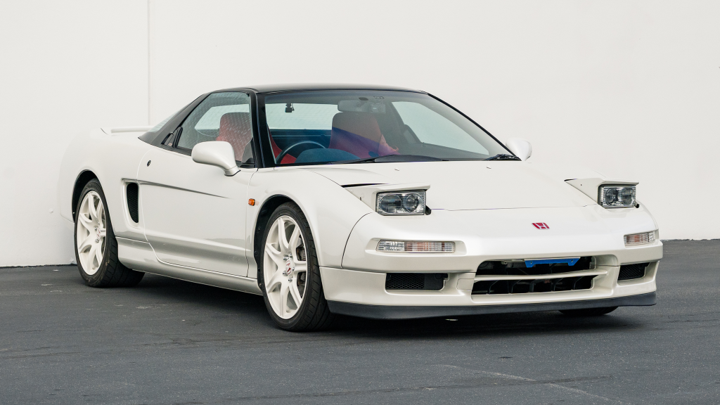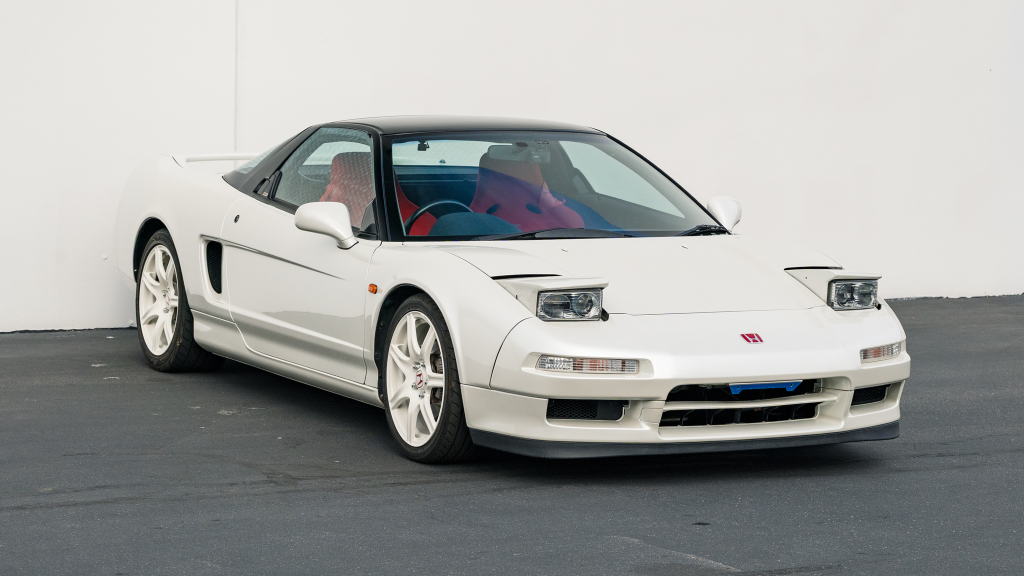 This 1993 Honda NSX-R is one of 483 first-generation Type R examples produced for the Japanese market between 1992 and 1995, and it is said to have remained under original ownership in Japan through 2025, when it was imported to the US by the seller. Finished in Neutron White Pearl with a black roof panel, the car is powered by a 3.0-liter V6 mated to a five-speed manual transaxle with a 4.235:1 final-drive ratio and a limited-slip differential. It rides on white-painted forged alloy wheels and is further equipped with front chassis braces, a stiffened suspension, unassisted steering, four-wheel ventilated disc brakes, and aftermarket exhaust components. Inside, Recaro carbon-Kevlar seats are trimmed in red Alcantara and accompanied by a MOMO steering wheel, a titanium shift knob, and an optional cassette stereo and air conditioning. This NSX-R is now offered in Huntington Beach, California, with a CarVX report and a Montana title in the name of the seller’s company.