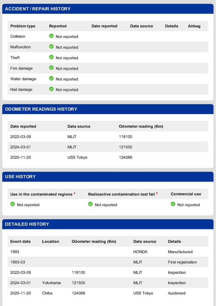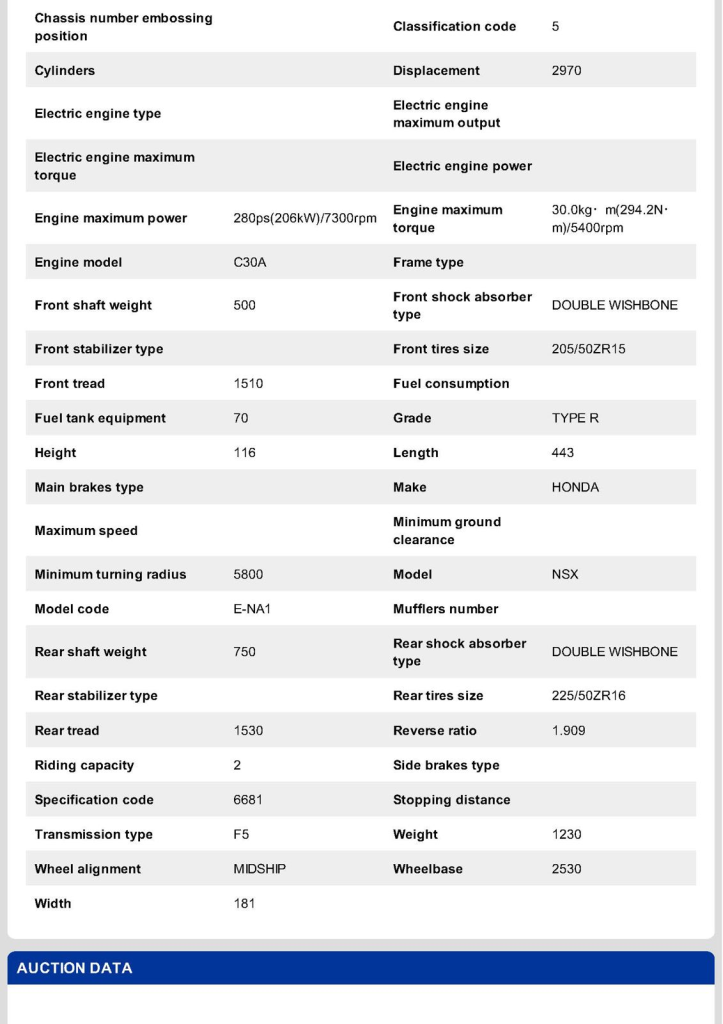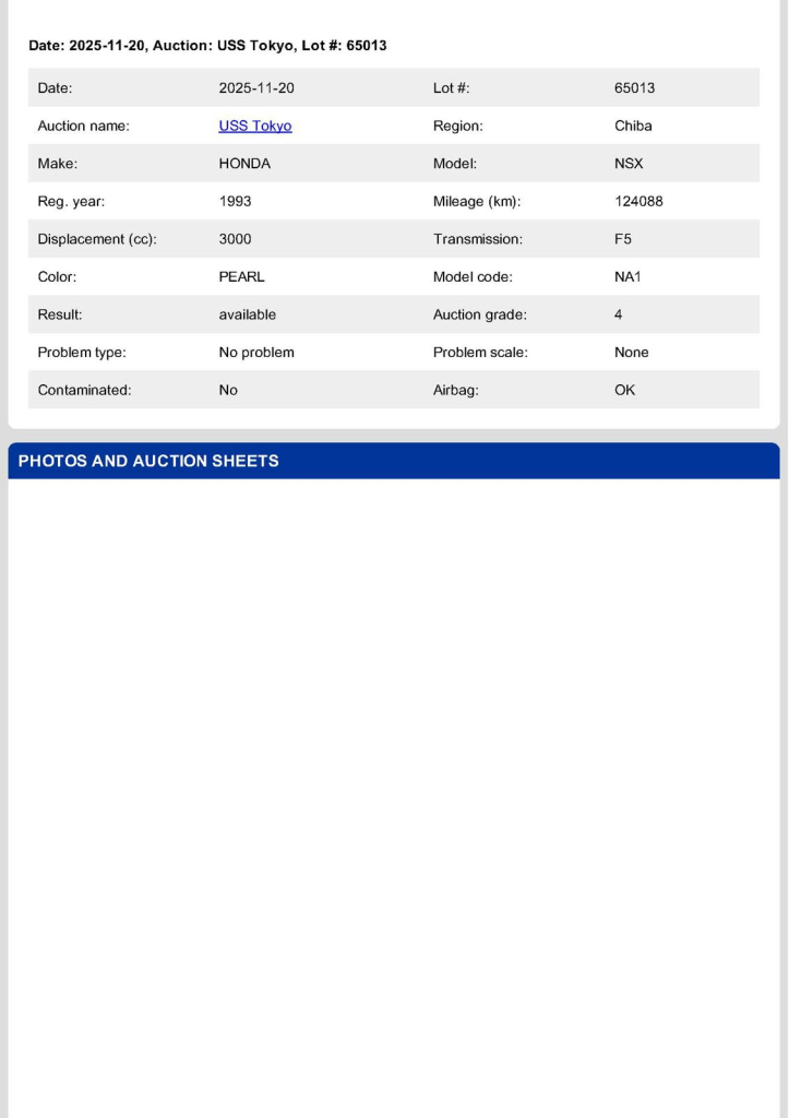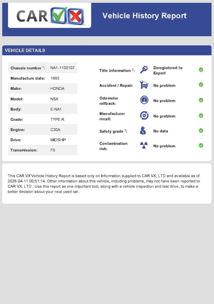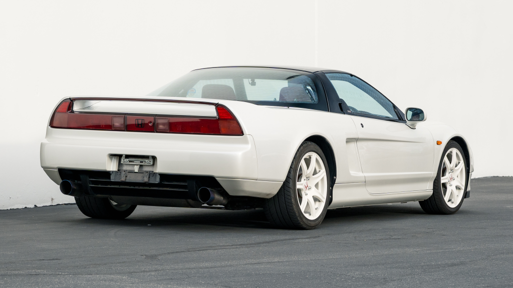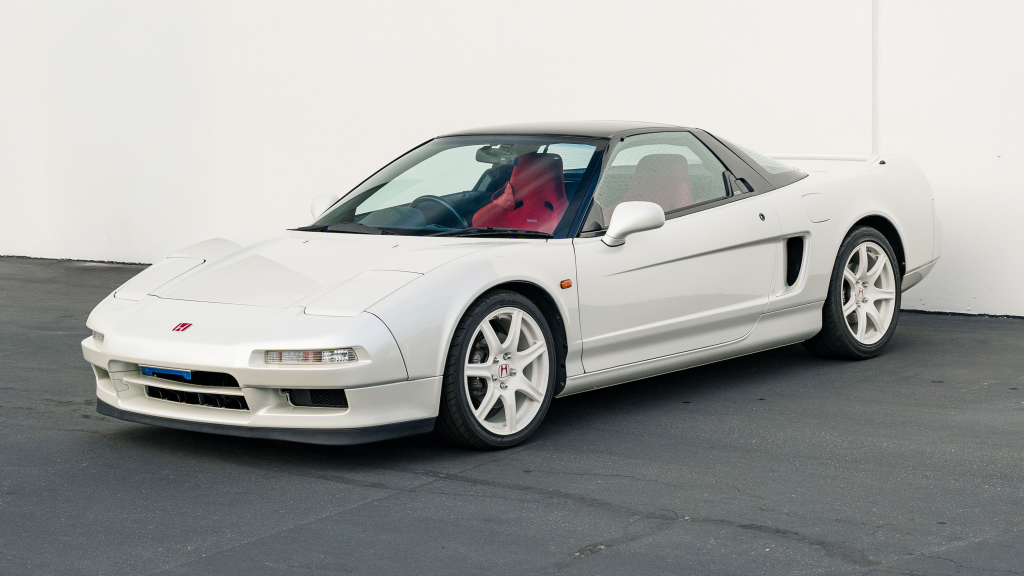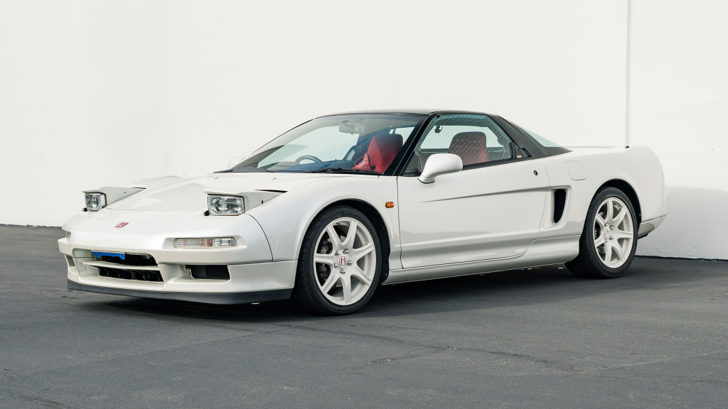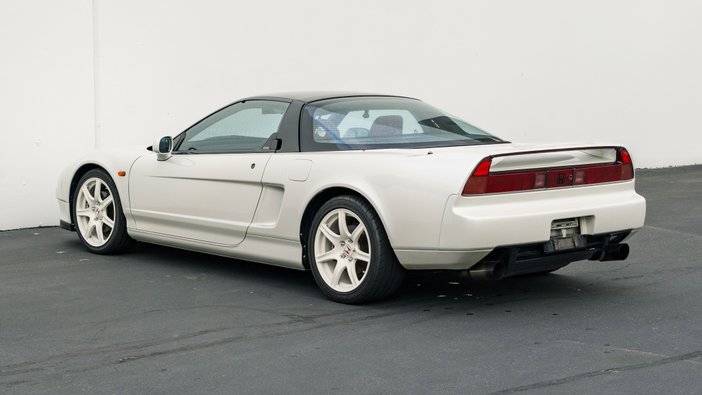 This 1993 Honda NSX-R is one of 483 first-generation Type R examples produced for the Japanese market between 1992 and 1995, and it is said to have remained under original ownership in Japan through 2025, when it was imported to the US by the seller. Finished in Neutron White Pearl with a black roof panel, the car is powered by a 3.0-liter V6 mated to a five-speed manual transaxle with a 4.235:1 final-drive ratio and a limited-slip differential. It rides on white-painted forged alloy wheels and is further equipped with front chassis braces, a stiffened suspension, unassisted steering, four-wheel ventilated disc brakes, and aftermarket exhaust components. Inside, Recaro carbon-Kevlar seats are trimmed in red Alcantara and accompanied by a MOMO steering wheel, a titanium shift knob, and an optional cassette stereo and air conditioning. This NSX-R is now offered in Huntington Beach, California, with a CarVX report and a Montana title in the name of the seller’s company.
