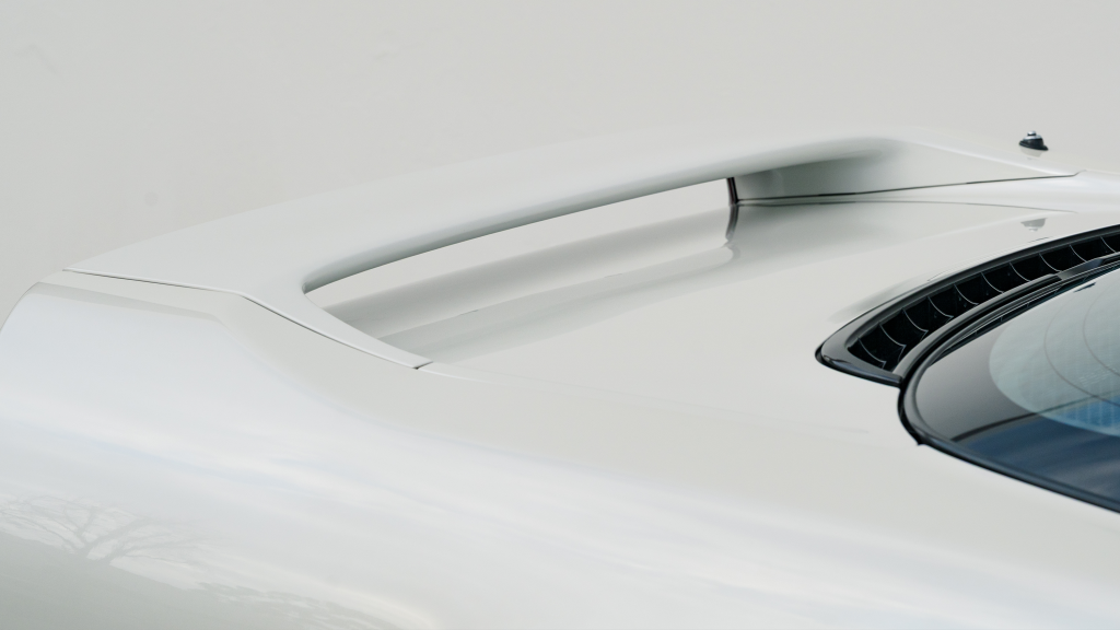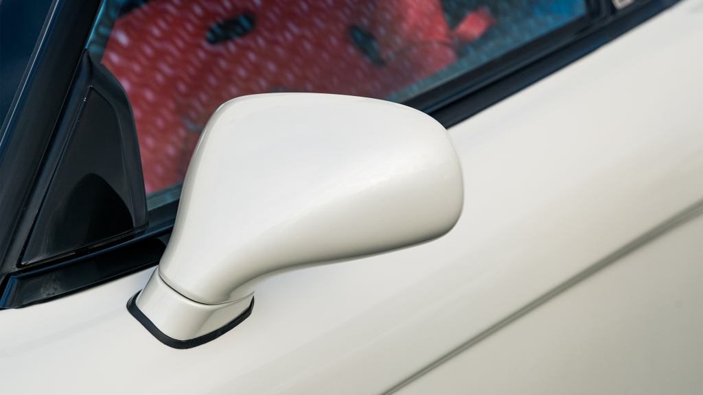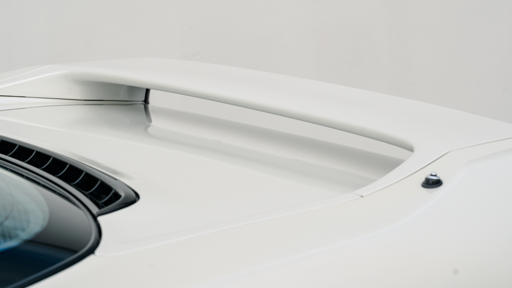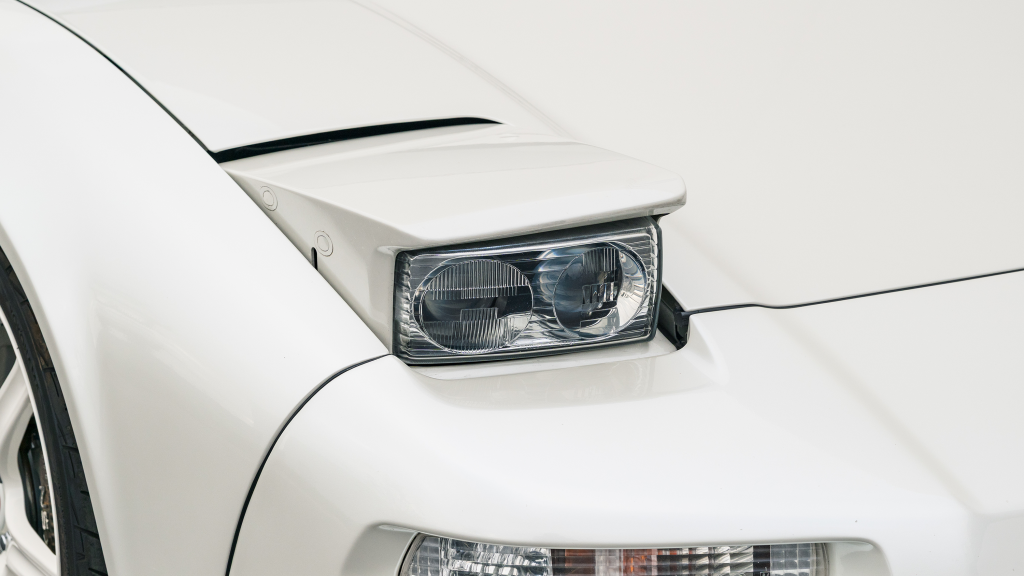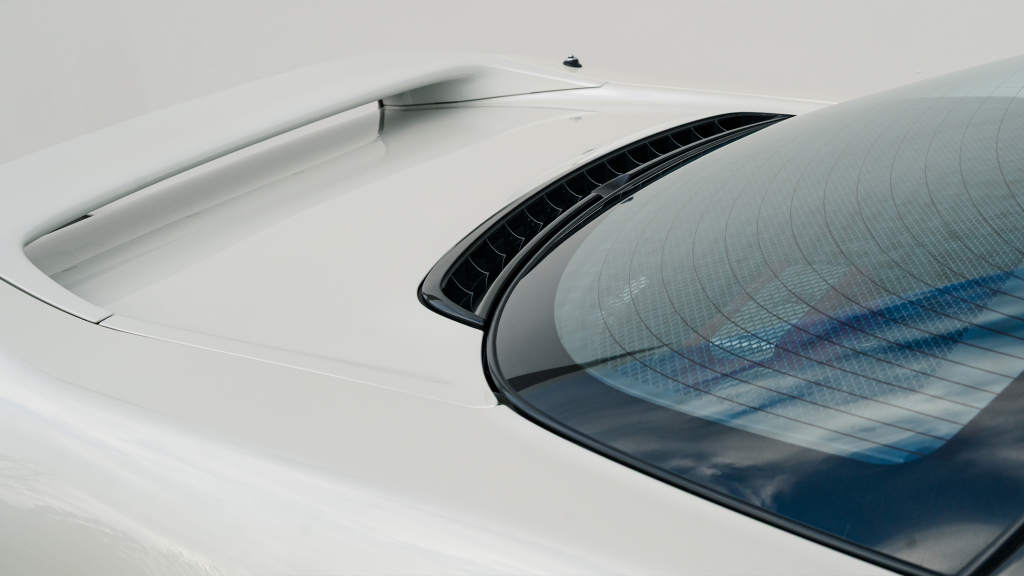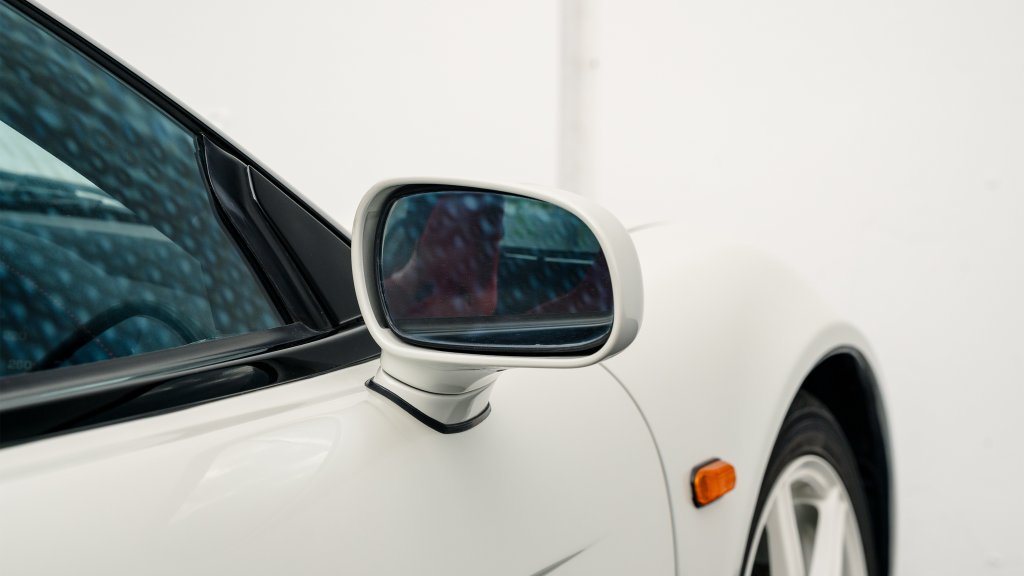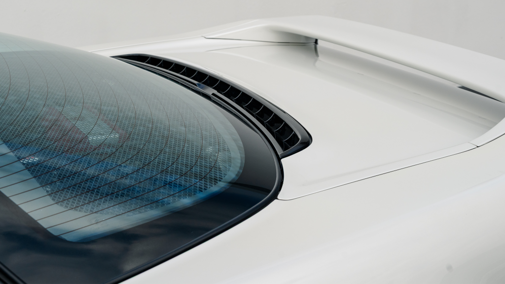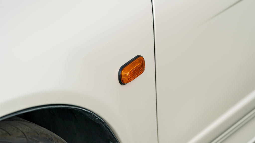 The Type R variant of the NSX was introduced in 1992 as a track-oriented offering exclusively for the Japanese market with several amenities eliminated in favor of a claimed weight savings of approximately 265 pounds. This example is finished in Neutron White Pearl (NH-545P) with a black roof panel. Exterior features distinct to the NSX-R model include a red Honda nose badge as well as mesh grilles integrated into the front air inlets.