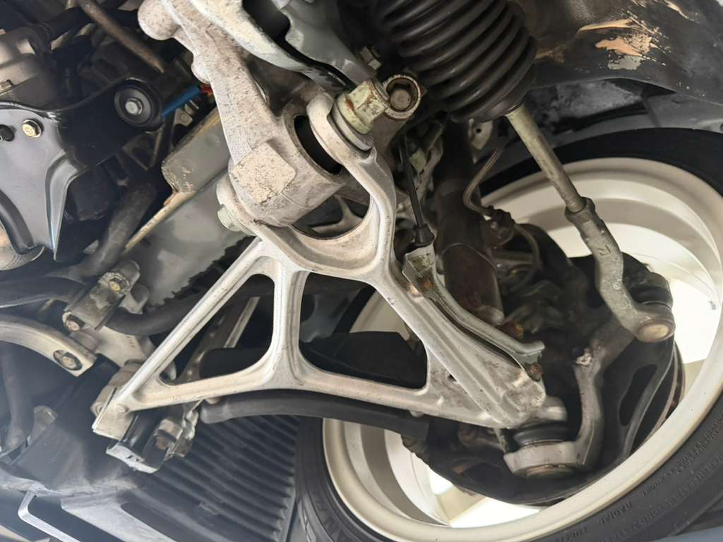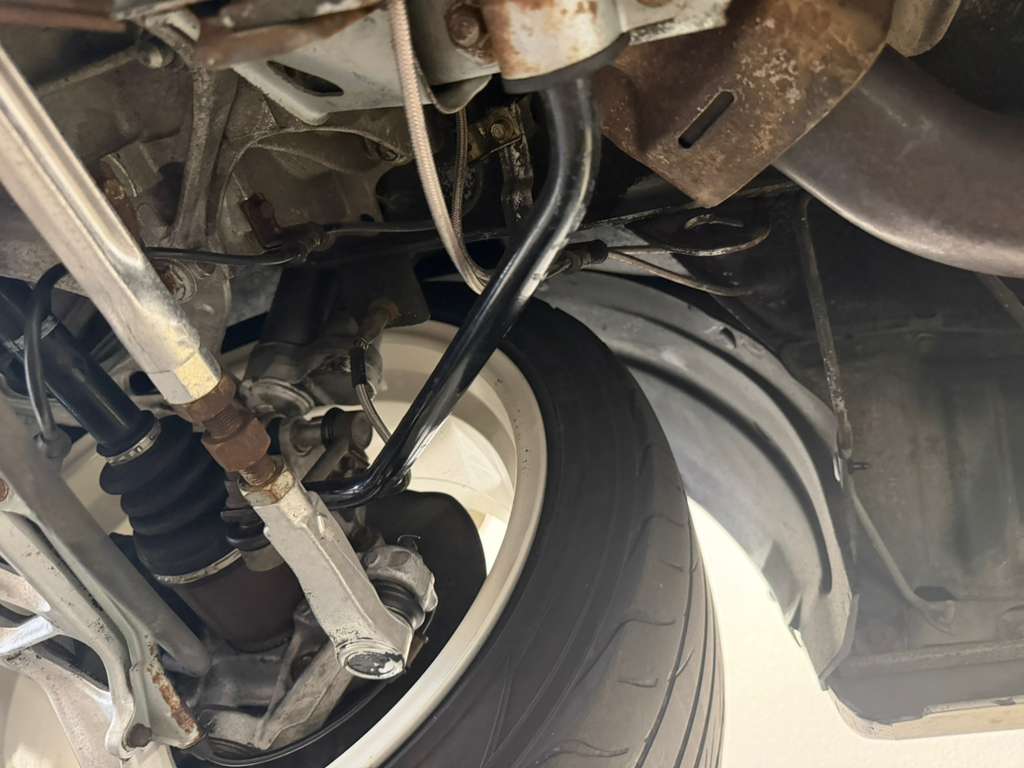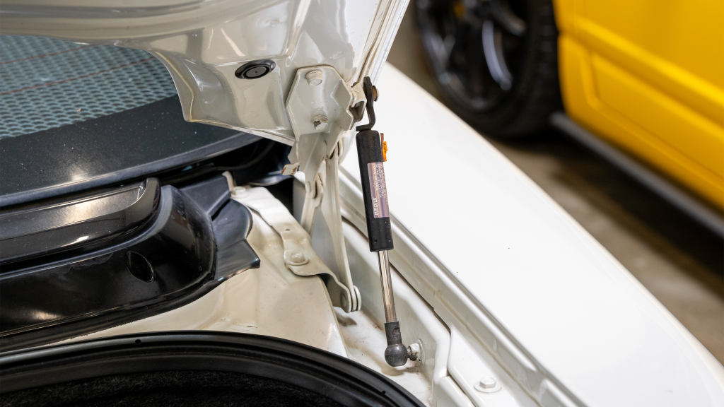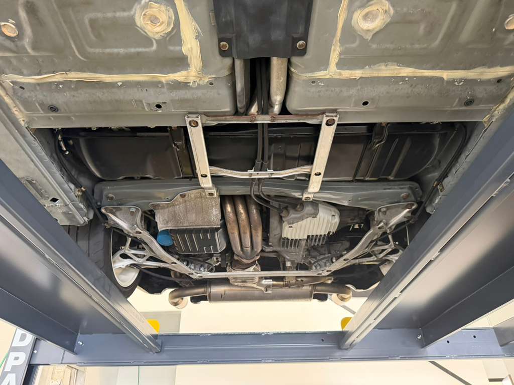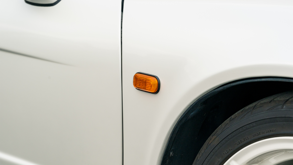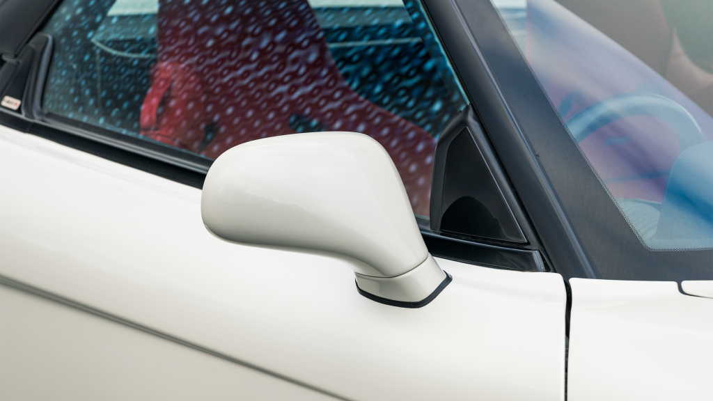 White-painted forged alloy wheels measure 17×7” up front and 17×9” at the rear and are wrapped in Yokohama S-drive and Advan Fleva tires. The NSX-R was equipped with a performance-focused suspension setup that included stiffer springs, shocks, and sway bars as well as reversed spring bias and two front chassis braces. Power assistance was eliminated from the steering system for Type R examples, which were also built without traction control. Braking is handled by ventilated discs with four-channel ABS.