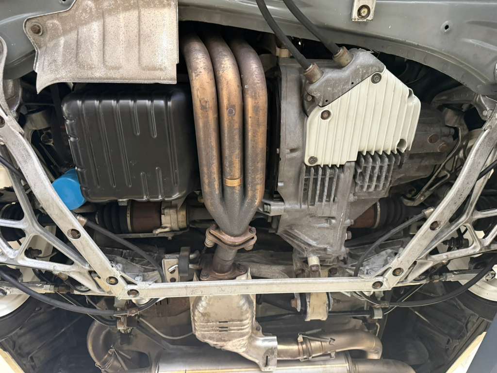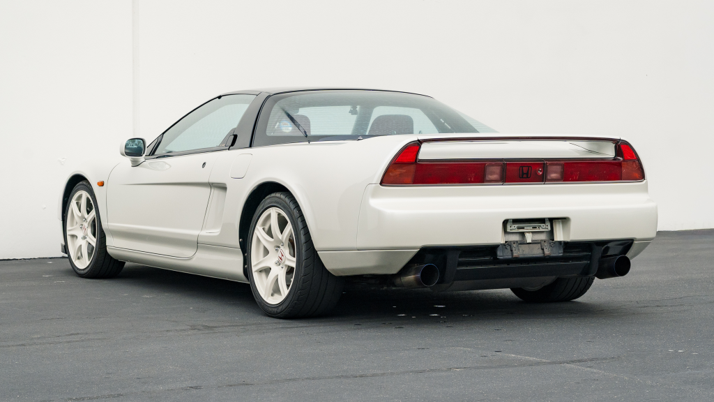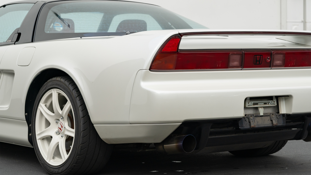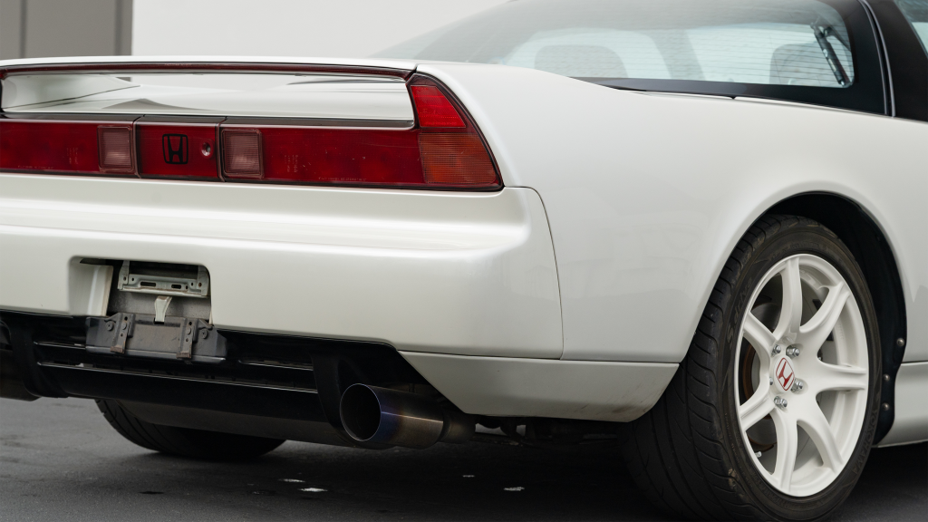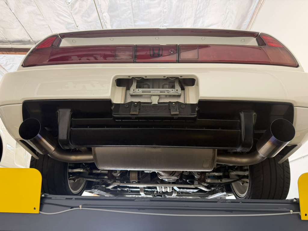Power is sent to the rear wheels via a five-speed manual transaxle with a 4.235:1 final-drive ratio, instead of the 4.06:1 gearing of the standard NSX, as well as a limited-slip differential with a higher lockup ratio. An aftermarket exhaust system has been installed, and the seller notes that the removed components will accompany the car.
