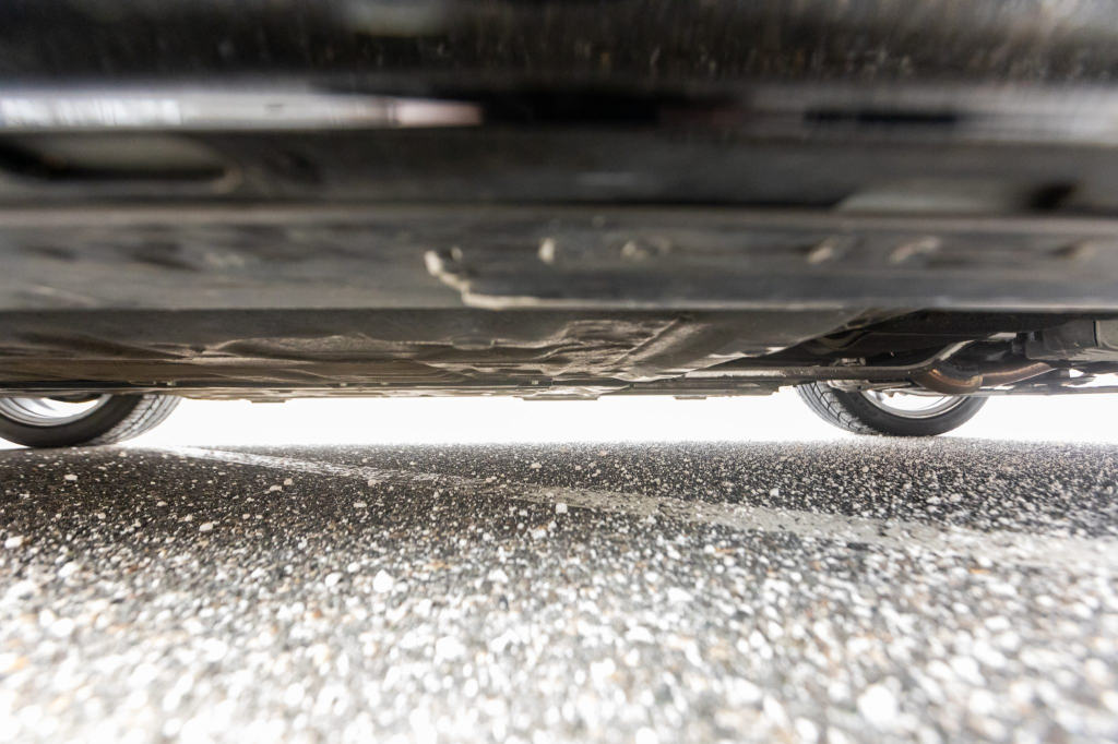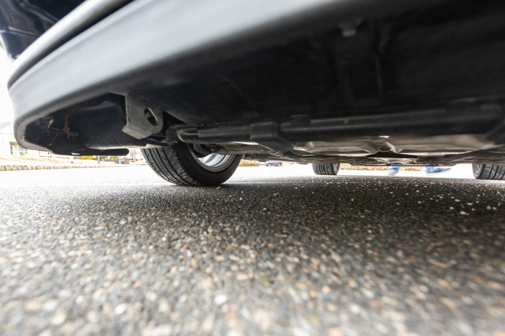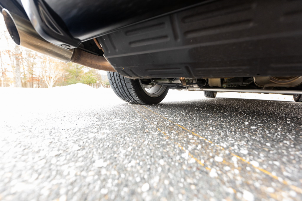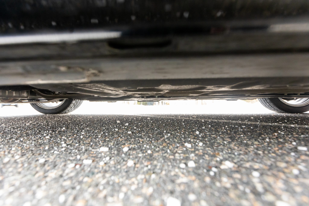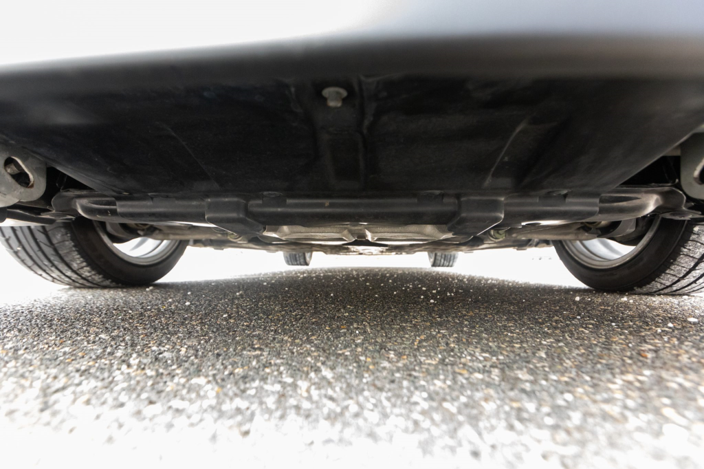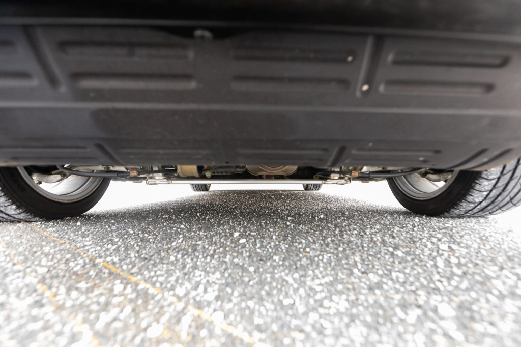 Power is routed to the rear wheels via a six-speed manual transaxle and a limited-slip differential. Additional photos of the underside are presented in the gallery.