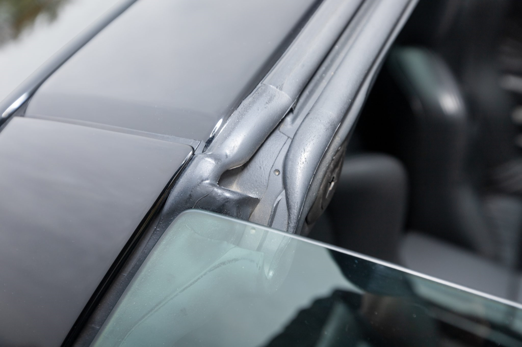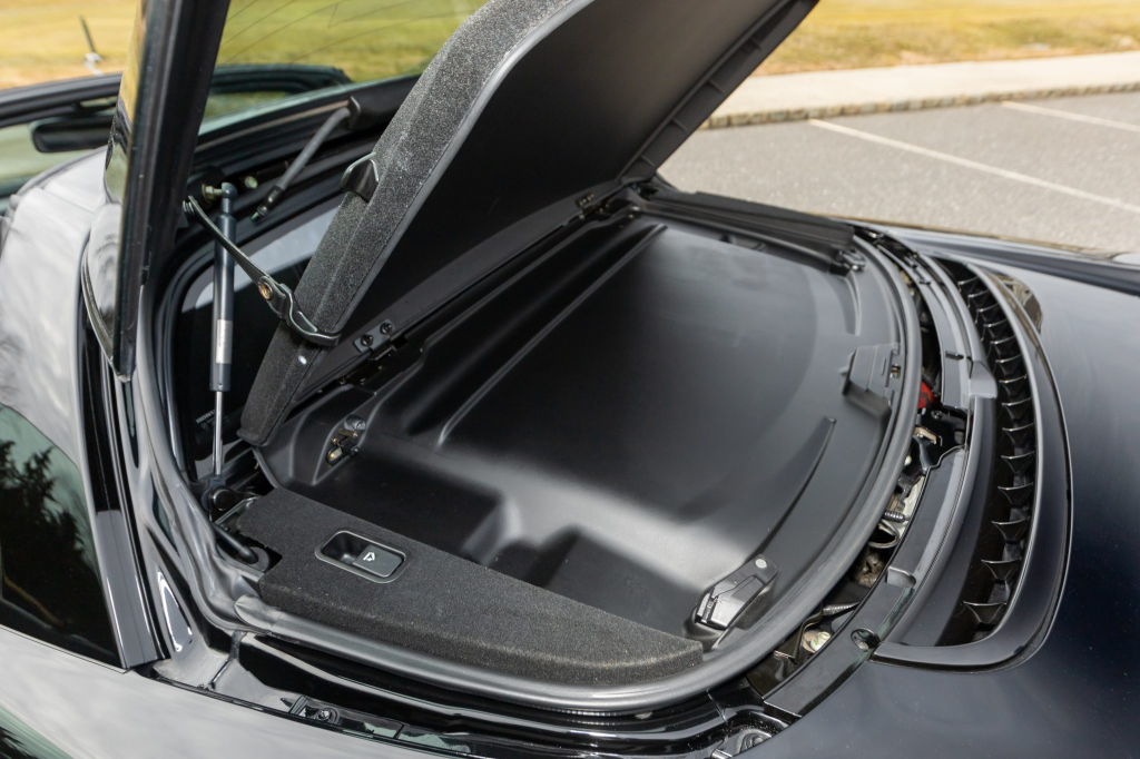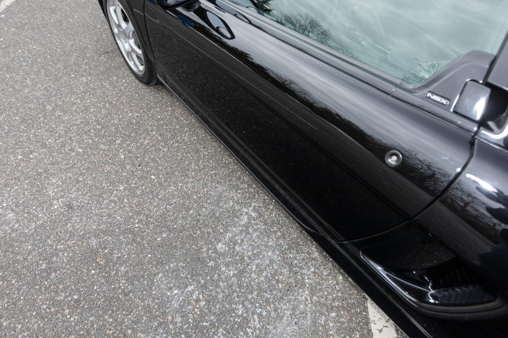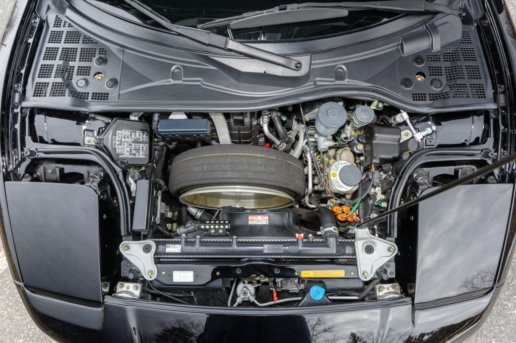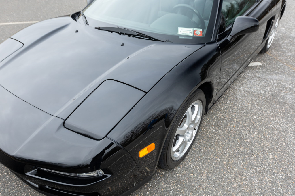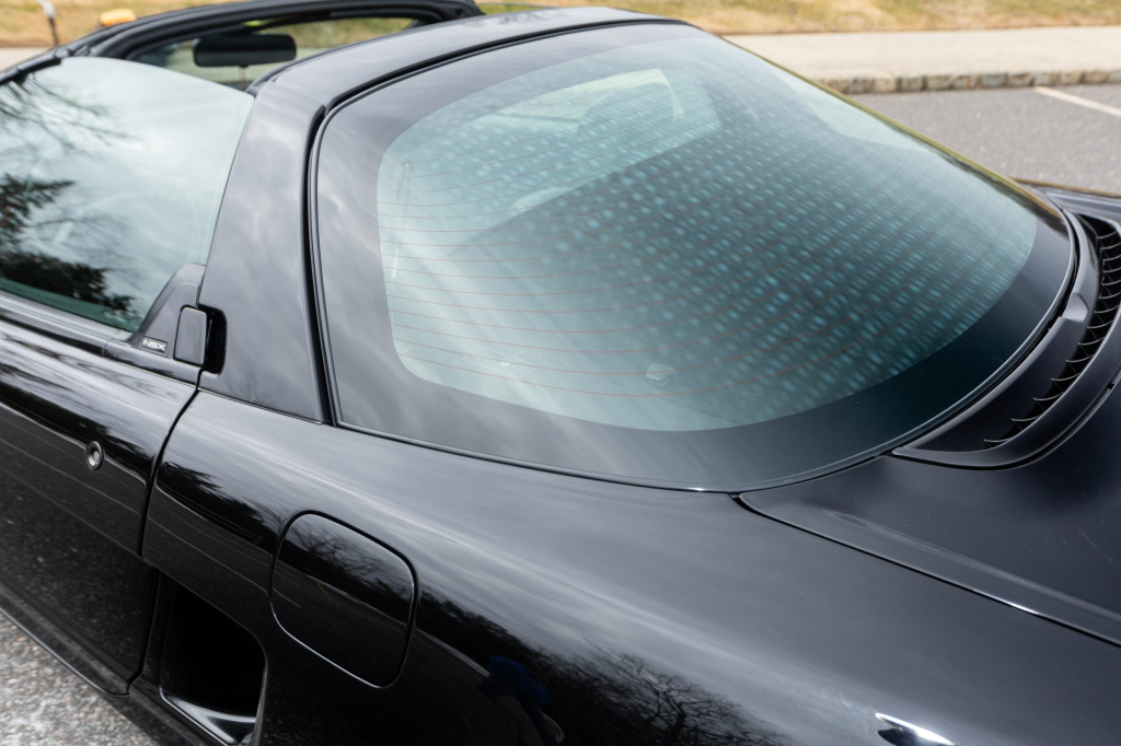 The NSX featured aluminum bodywork, and this example is finished in Berlina Black with a body-color removable roof panel. Features include pop-up headlights, an integrated rear wing, side air intakes, power-adjustable side mirrors, and dual exhaust outlets. A noise is emitted from the antenna when it is retracted, per the seller.