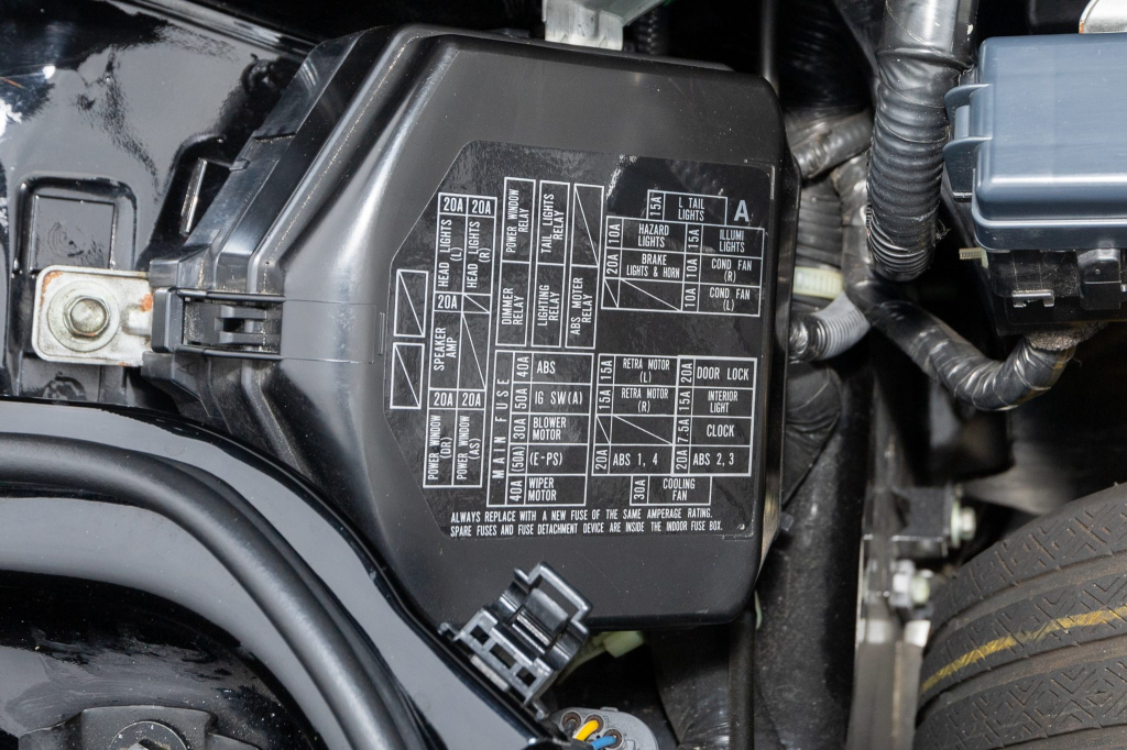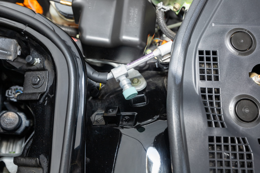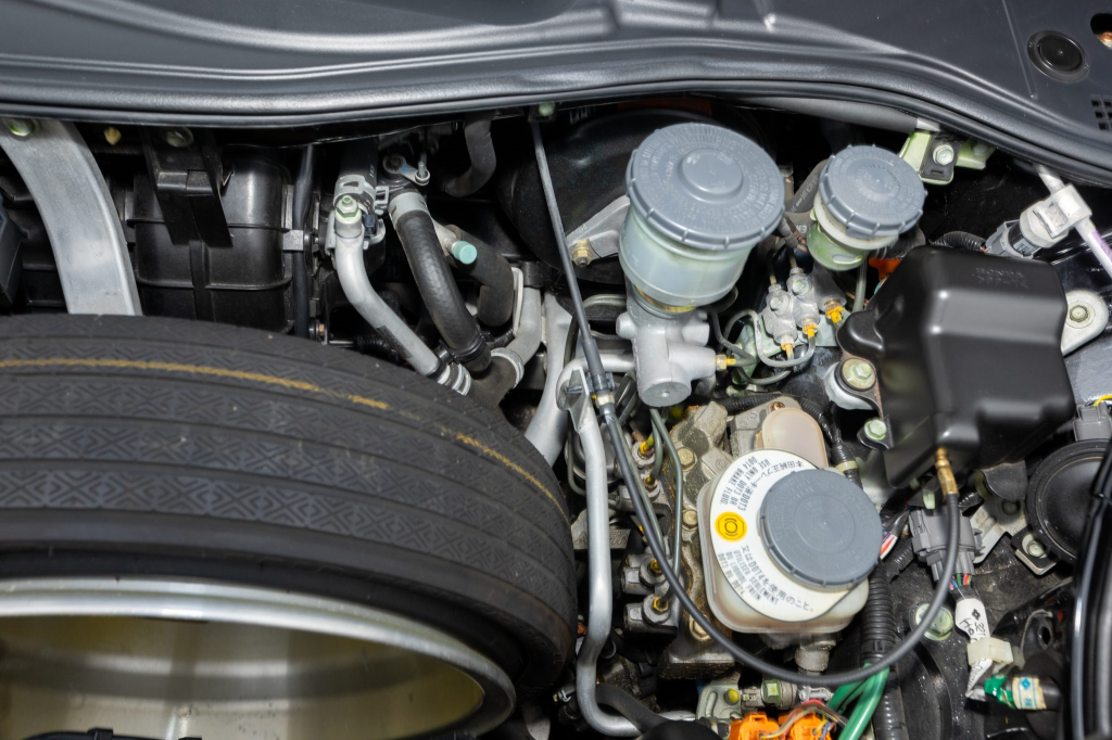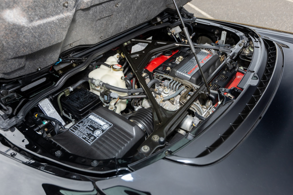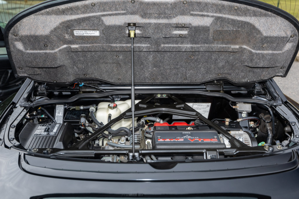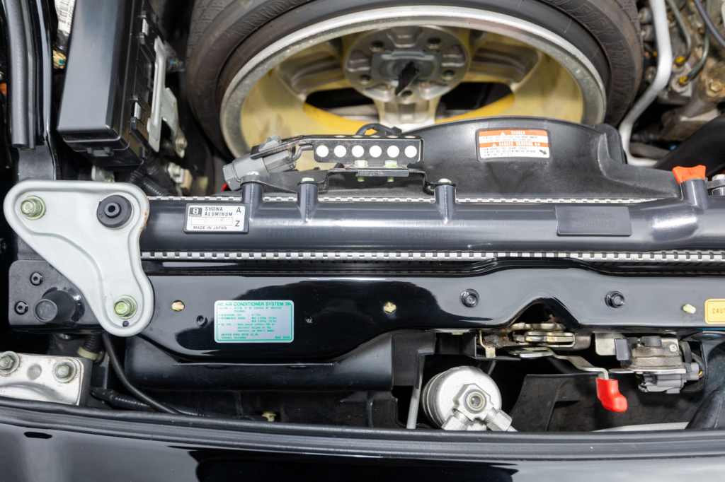 Staggered-diameter 16” and 17” seven-spoke aluminum wheels are mounted with Bridgestone tires. The car features a four-wheel double-wishbone suspension with front and rear stabilizer bars, and braking is handled by NSX-branded calipers over vented rotors at each corner.