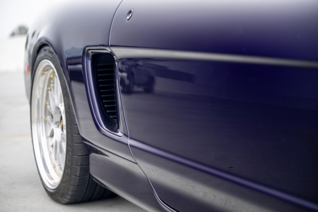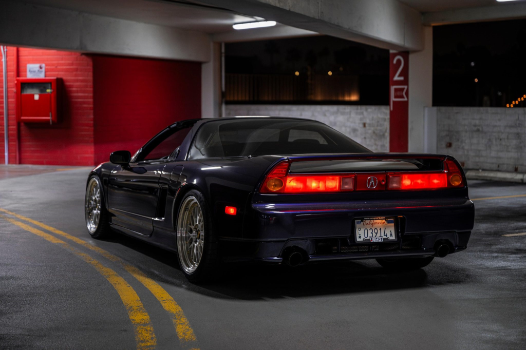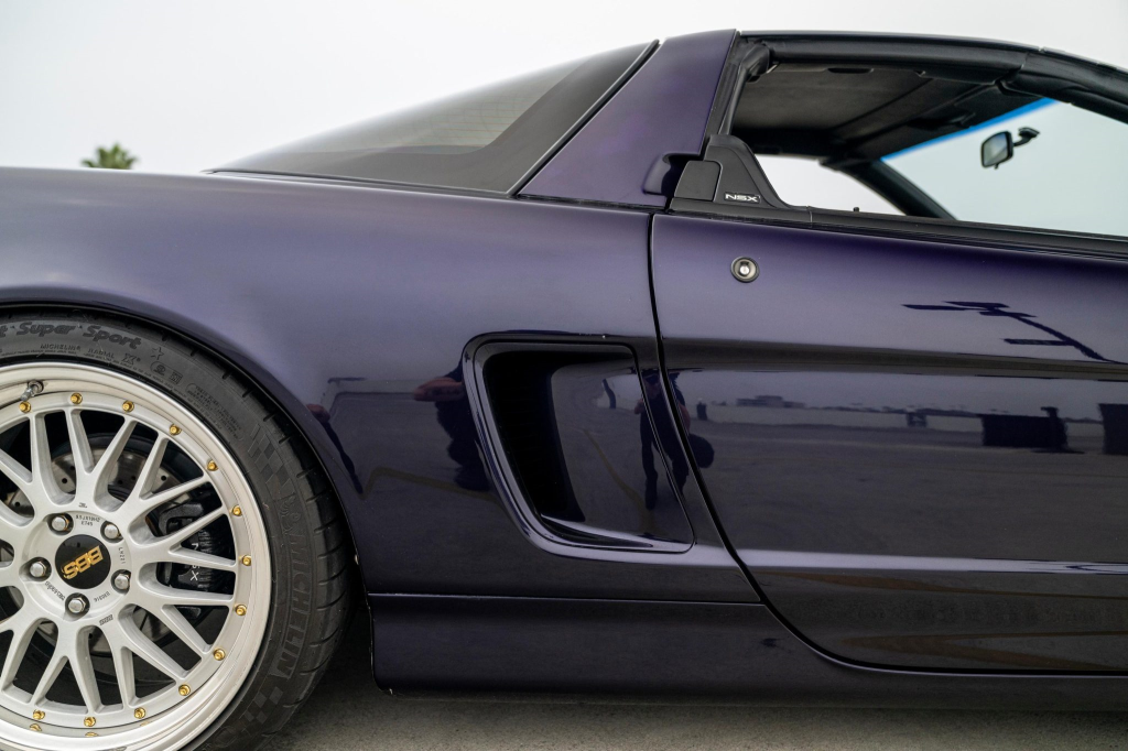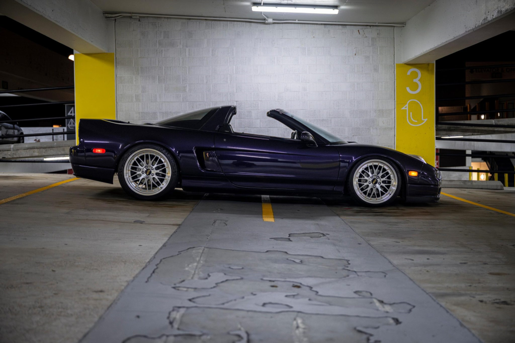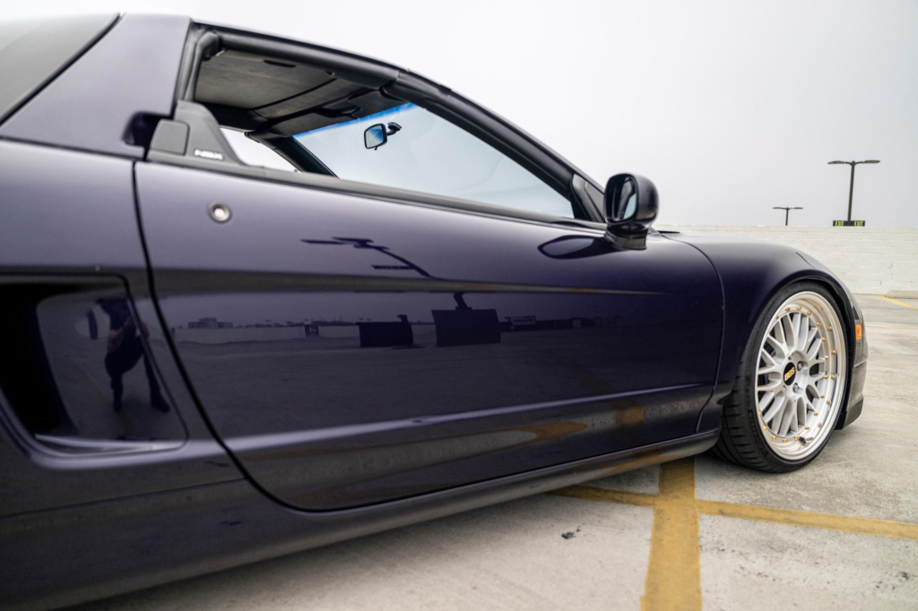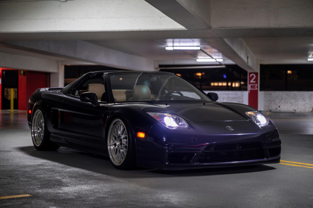 This 1995 Acura NSX-T is finished in Midnight Pearl over tan leather and has been retrofitted with a six-speed manual transaxle as well as NA2-style bumper covers and lights. Power comes from a 3.0-liter VTEC V6, and features include a limited-slip differential, a removable body-color roof panel, an aftermarket exhaust, 18” and 19” BBS LM wheels, and Endless Zeal Function adjustable coilovers. Automatic climate control, cruise control, a Bose sound system, and power-adjustable seats are further details. The car has remained registered in California since new and was acquired by the selling dealer in 2021. This NSX-T shows 84k miles and is now offered with a clean Carfax report and a clean California title.