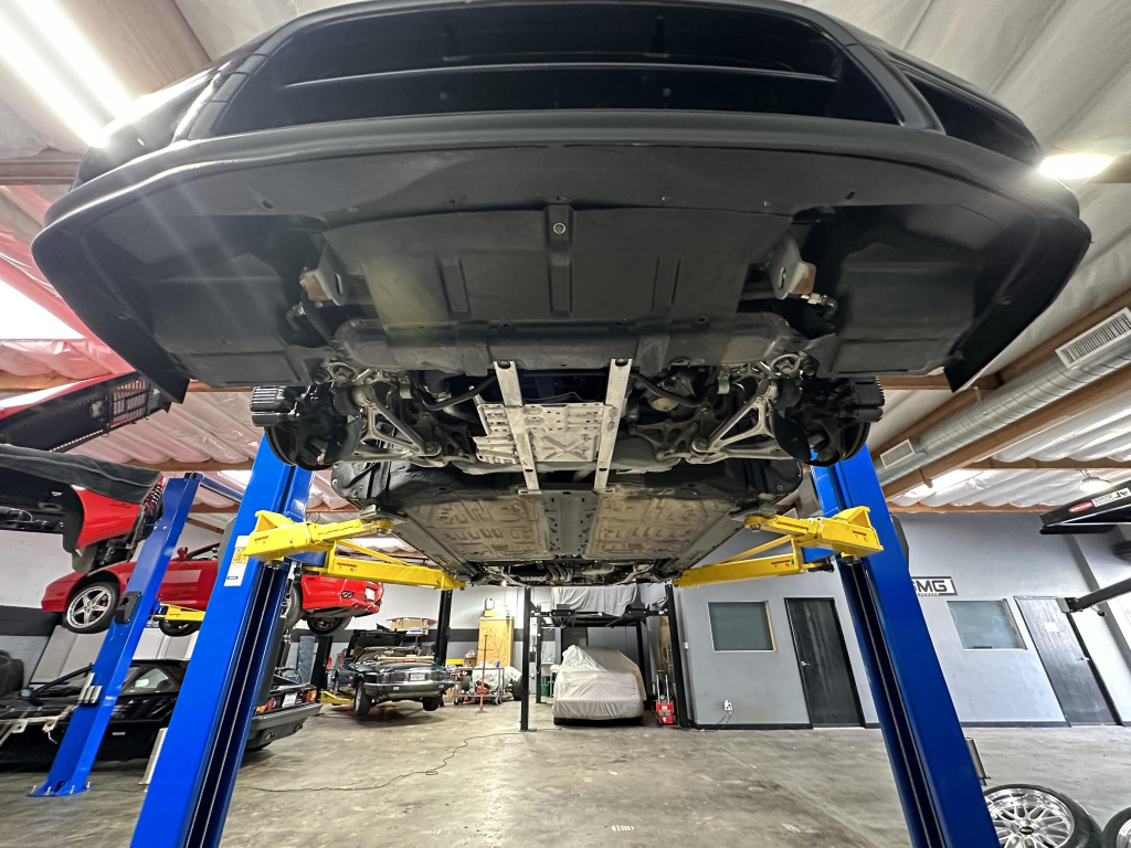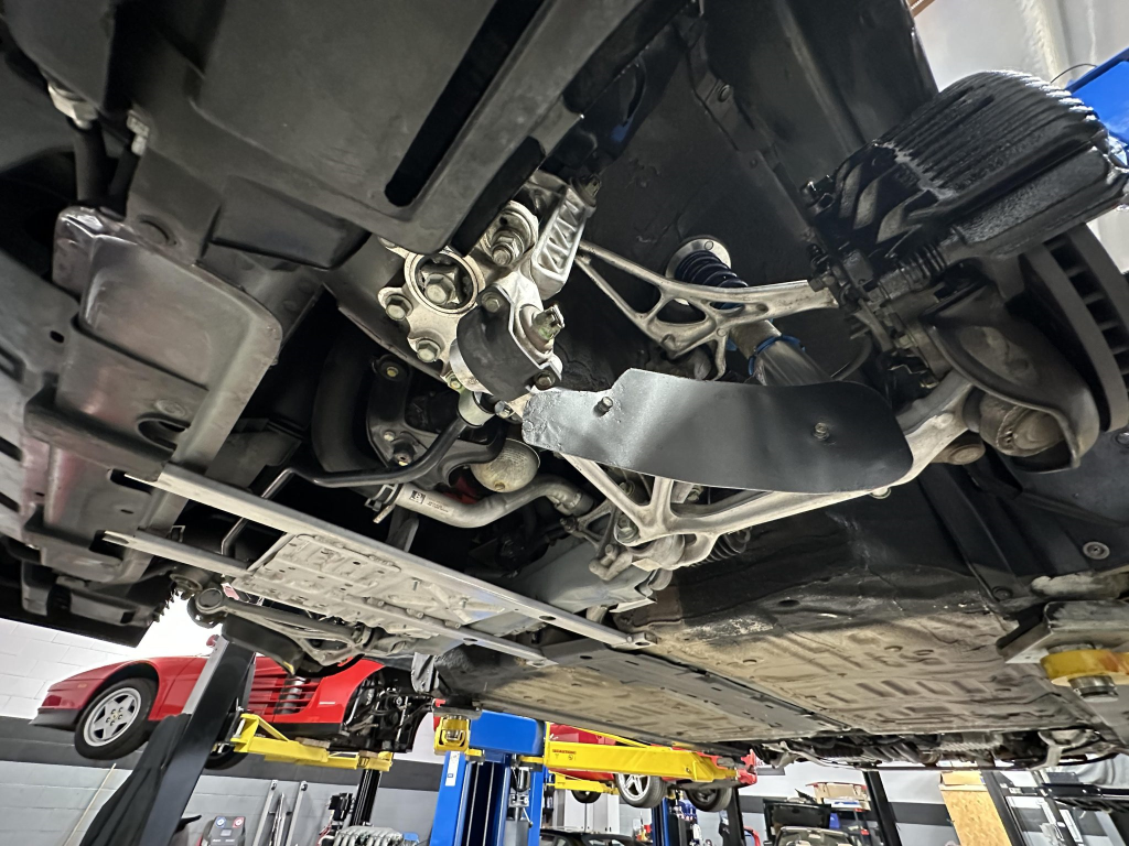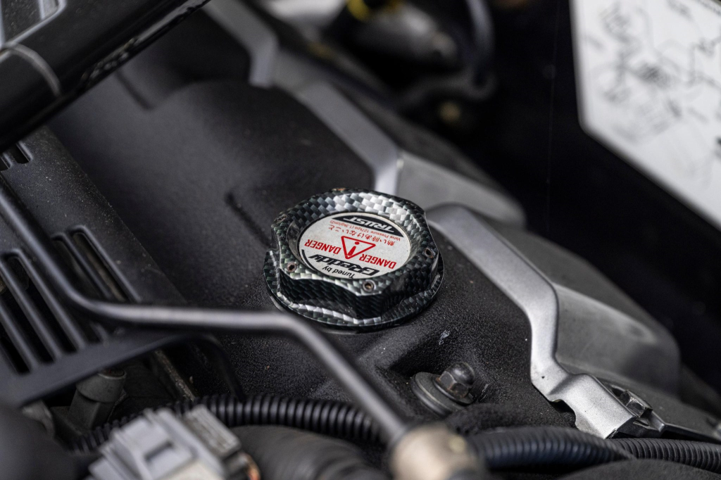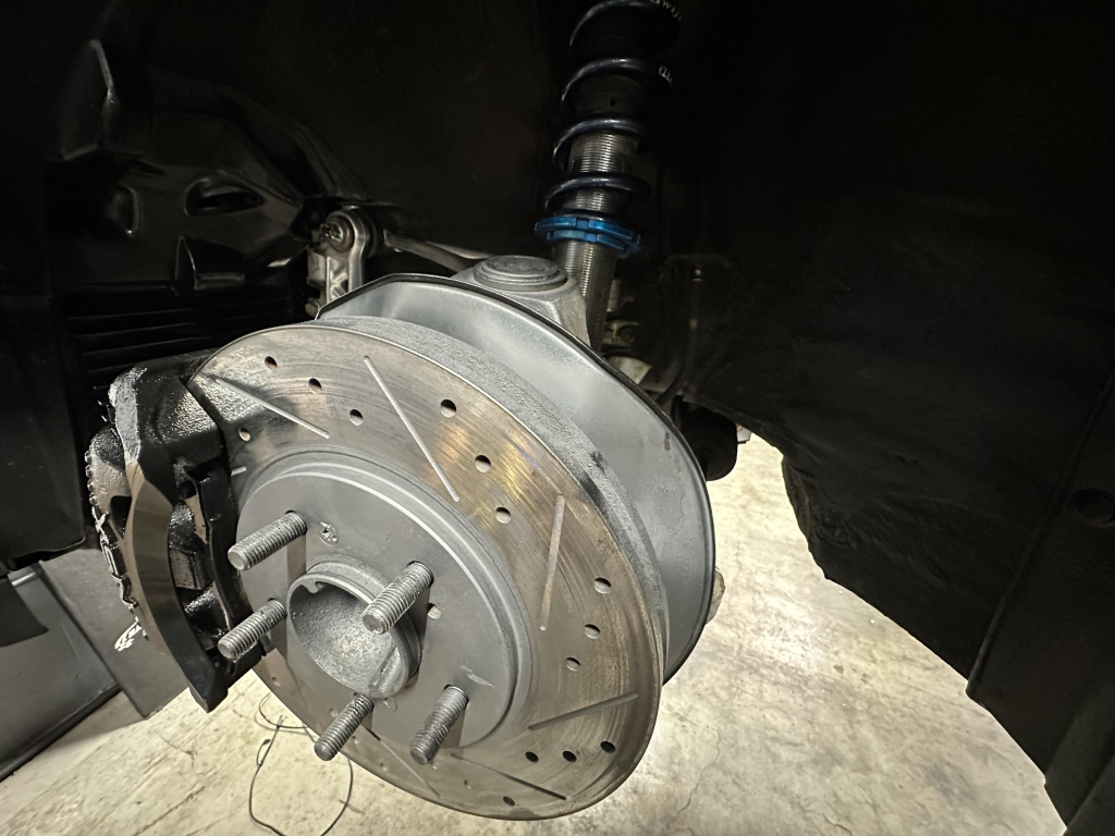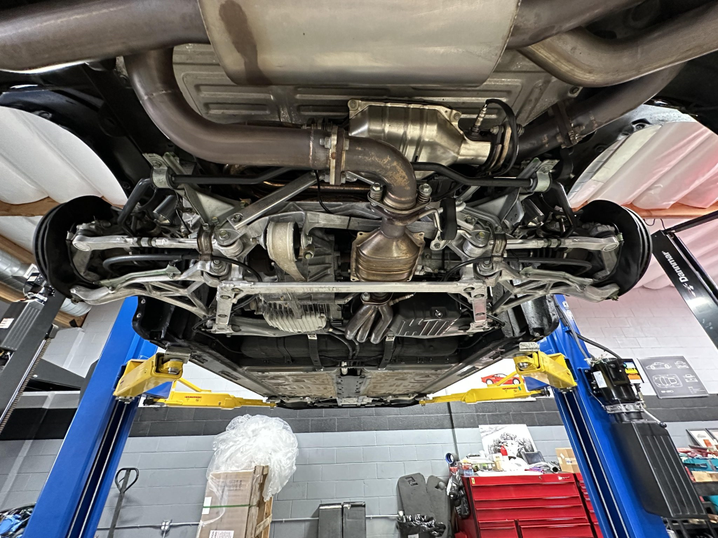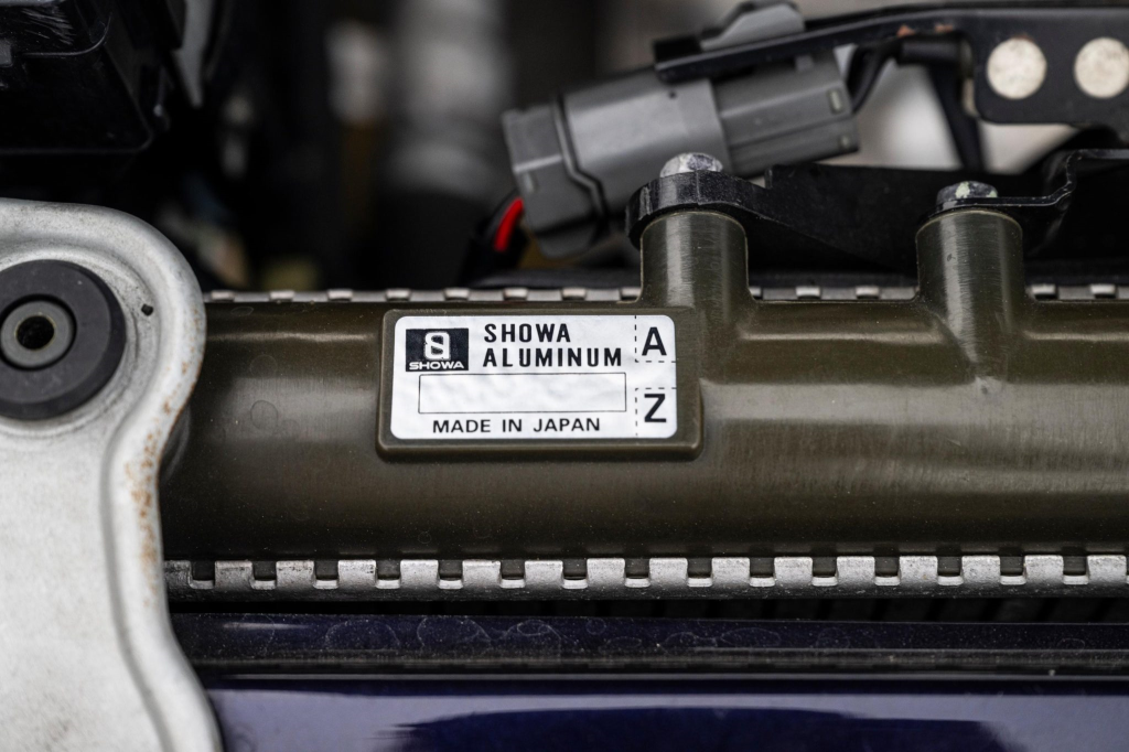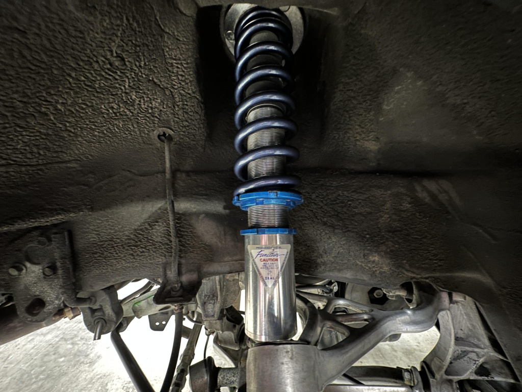 The 18” BBS LM wheels are mounted with 215/35 front and 275/35 rear Michelin Pilot Super Sport tires. The four-wheel double-wishbone suspension incorporates front and rear stabilizer bars, and Endless Zeal Function adjustable coilovers have been installed. NSX-branded calipers are fitted over aftermarket slotted rotors at all four corners. An alignment, ride-height adjustment, and corner balancing service was performed at West End of Huntington Beach, California, in November 2025.
