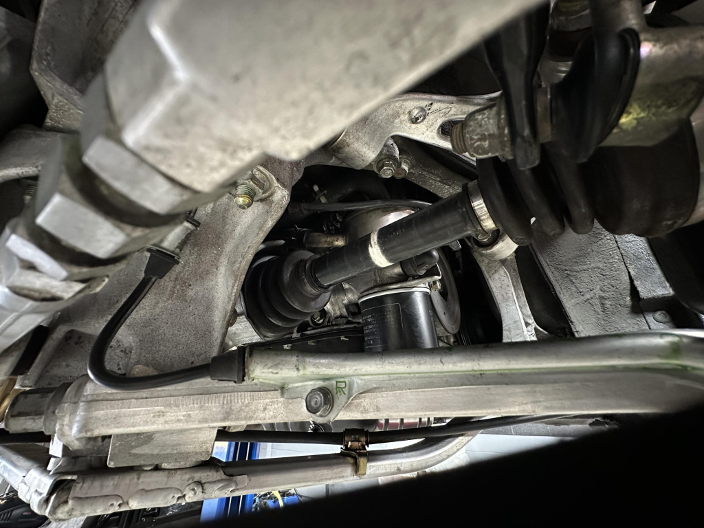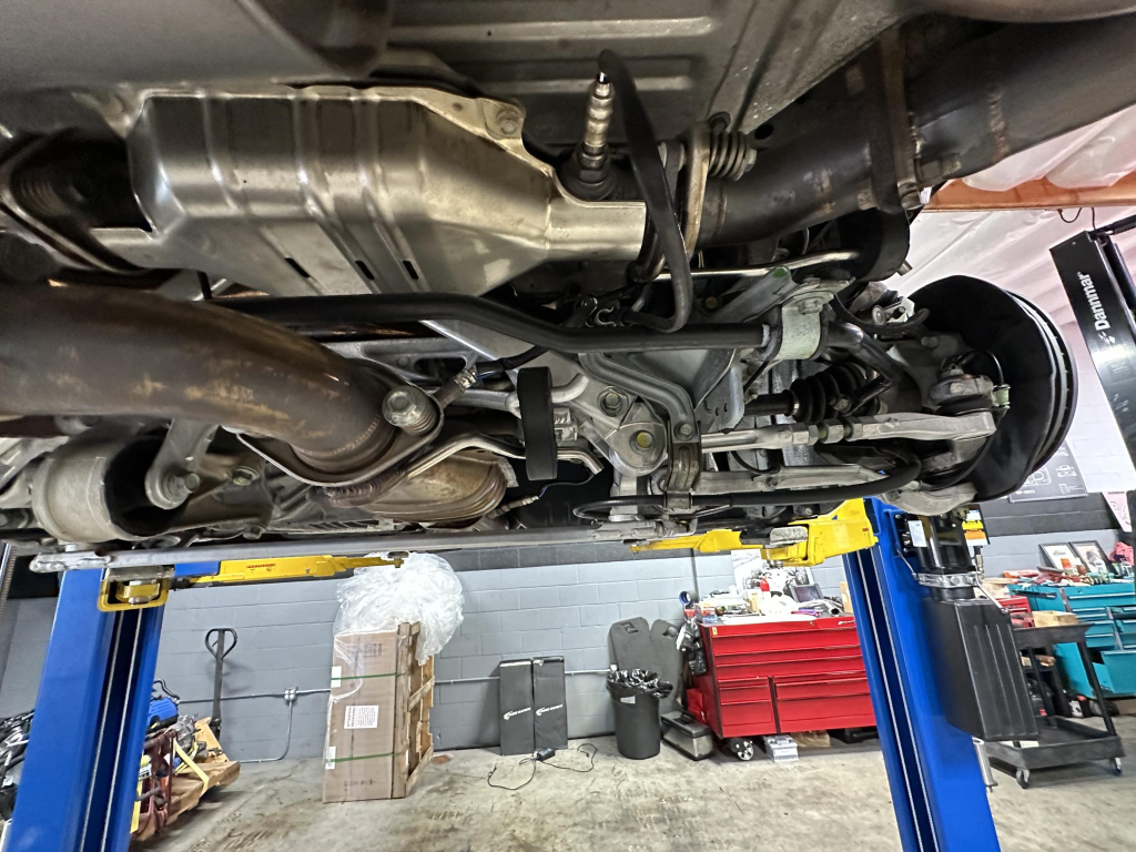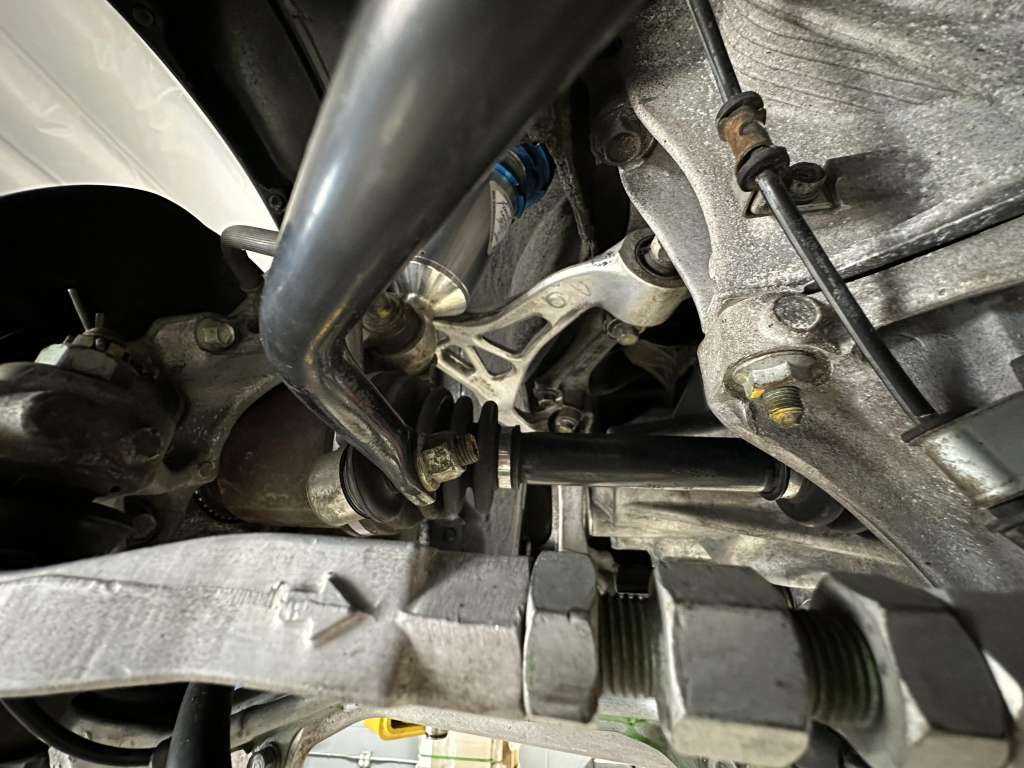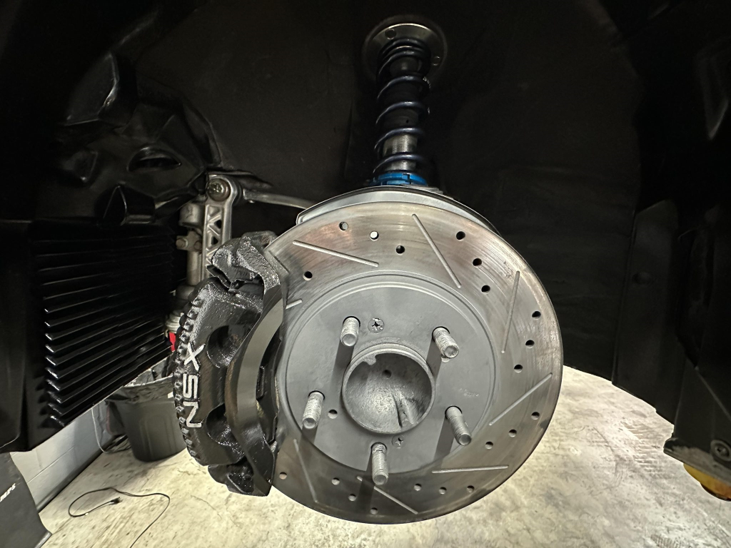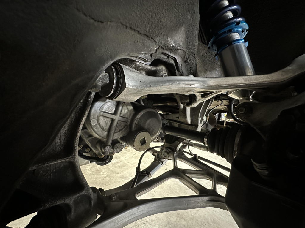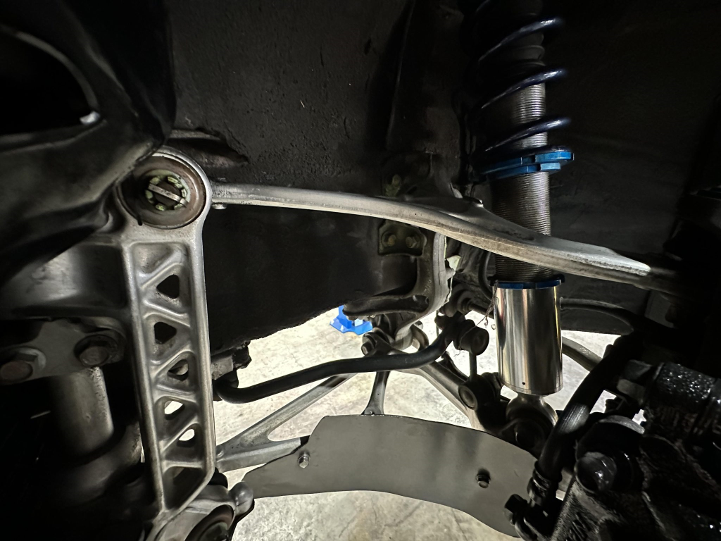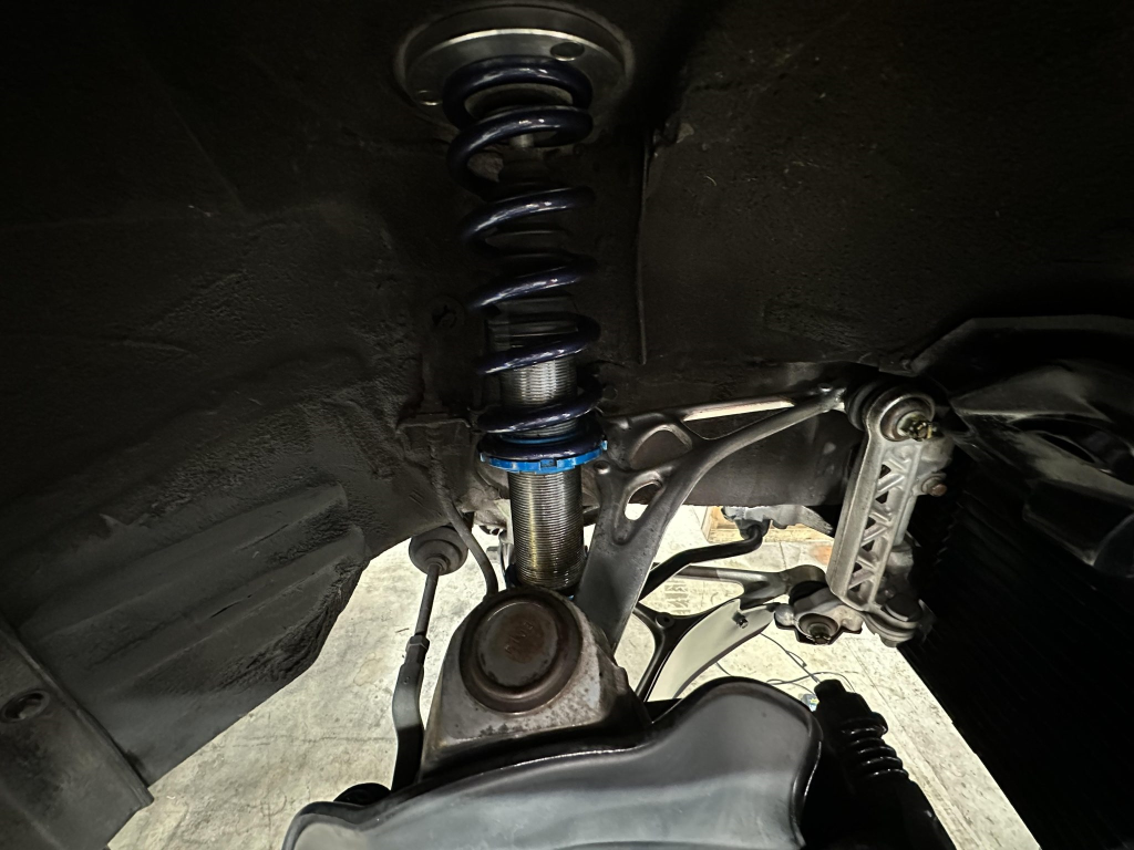 The 18” BBS LM wheels are mounted with 215/35 front and 275/35 rear Michelin Pilot Super Sport tires. The four-wheel double-wishbone suspension incorporates front and rear stabilizer bars, and Endless Zeal Function adjustable coilovers have been installed. NSX-branded calipers are fitted over aftermarket slotted rotors at all four corners. An alignment, ride-height adjustment, and corner balancing service was performed at West End of Huntington Beach, California, in November 2025.