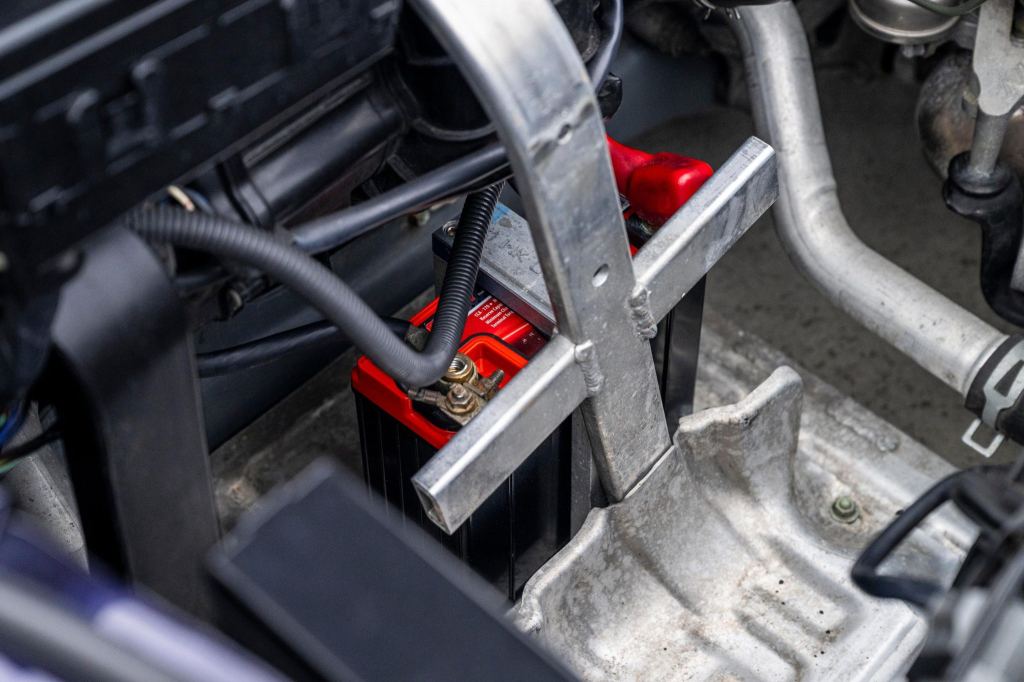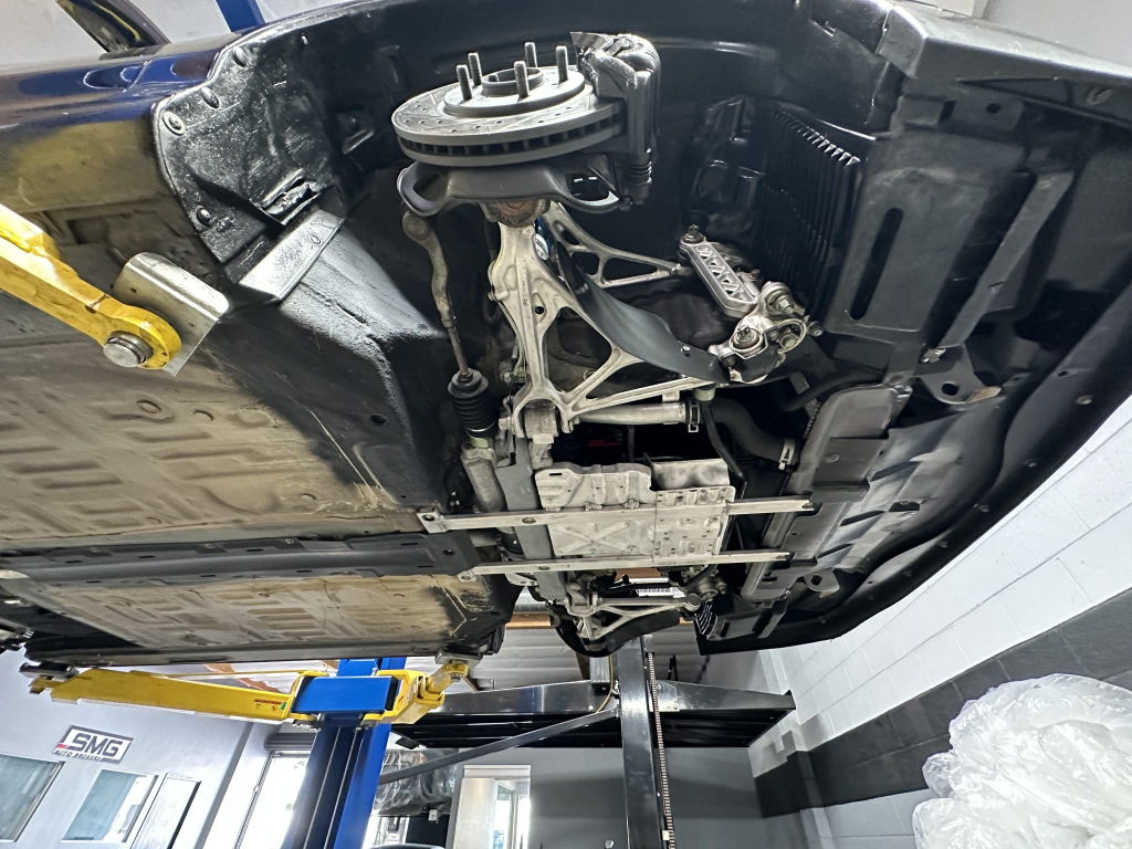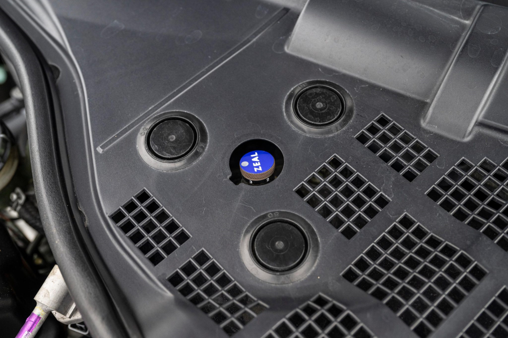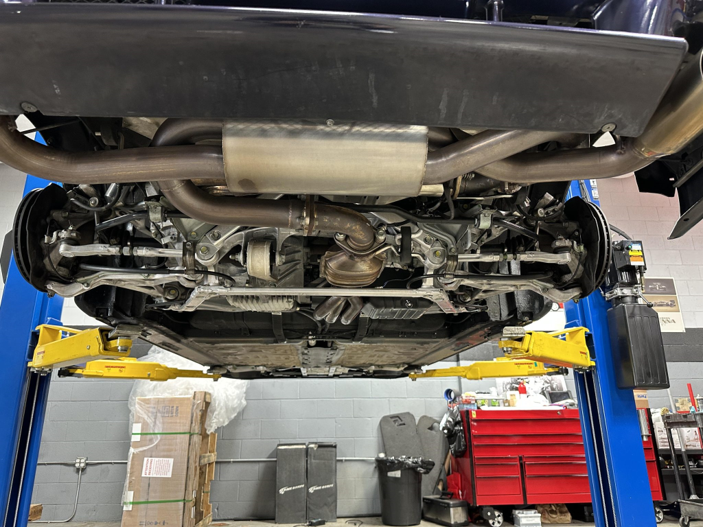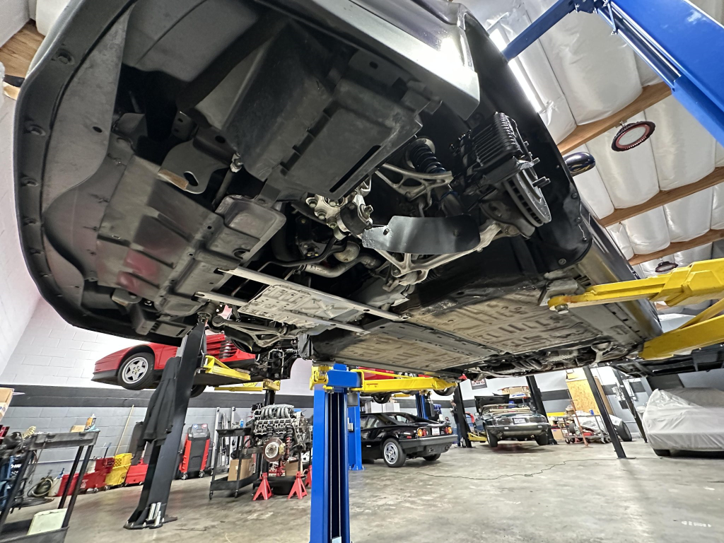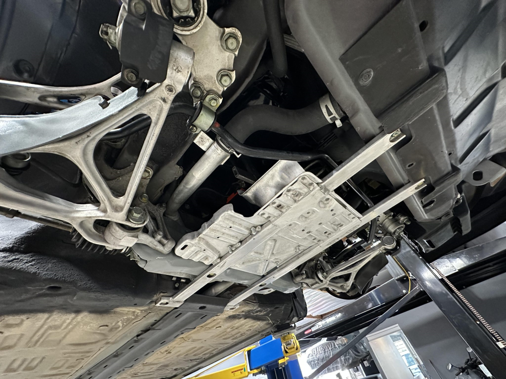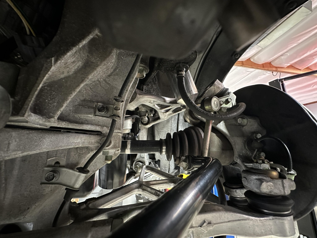 The 18” BBS LM wheels are mounted with 215/35 front and 275/35 rear Michelin Pilot Super Sport tires. The four-wheel double-wishbone suspension incorporates front and rear stabilizer bars, and Endless Zeal Function adjustable coilovers have been installed. NSX-branded calipers are fitted over aftermarket slotted rotors at all four corners. An alignment, ride-height adjustment, and corner balancing service was performed at West End of Huntington Beach, California, in November 2025.