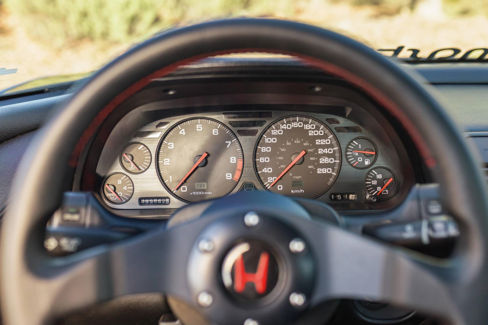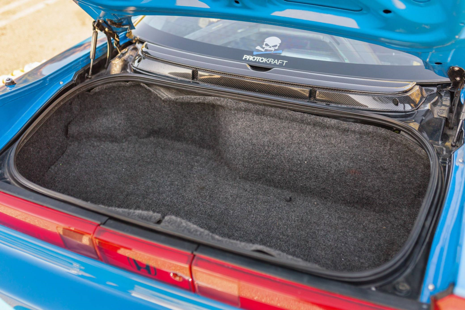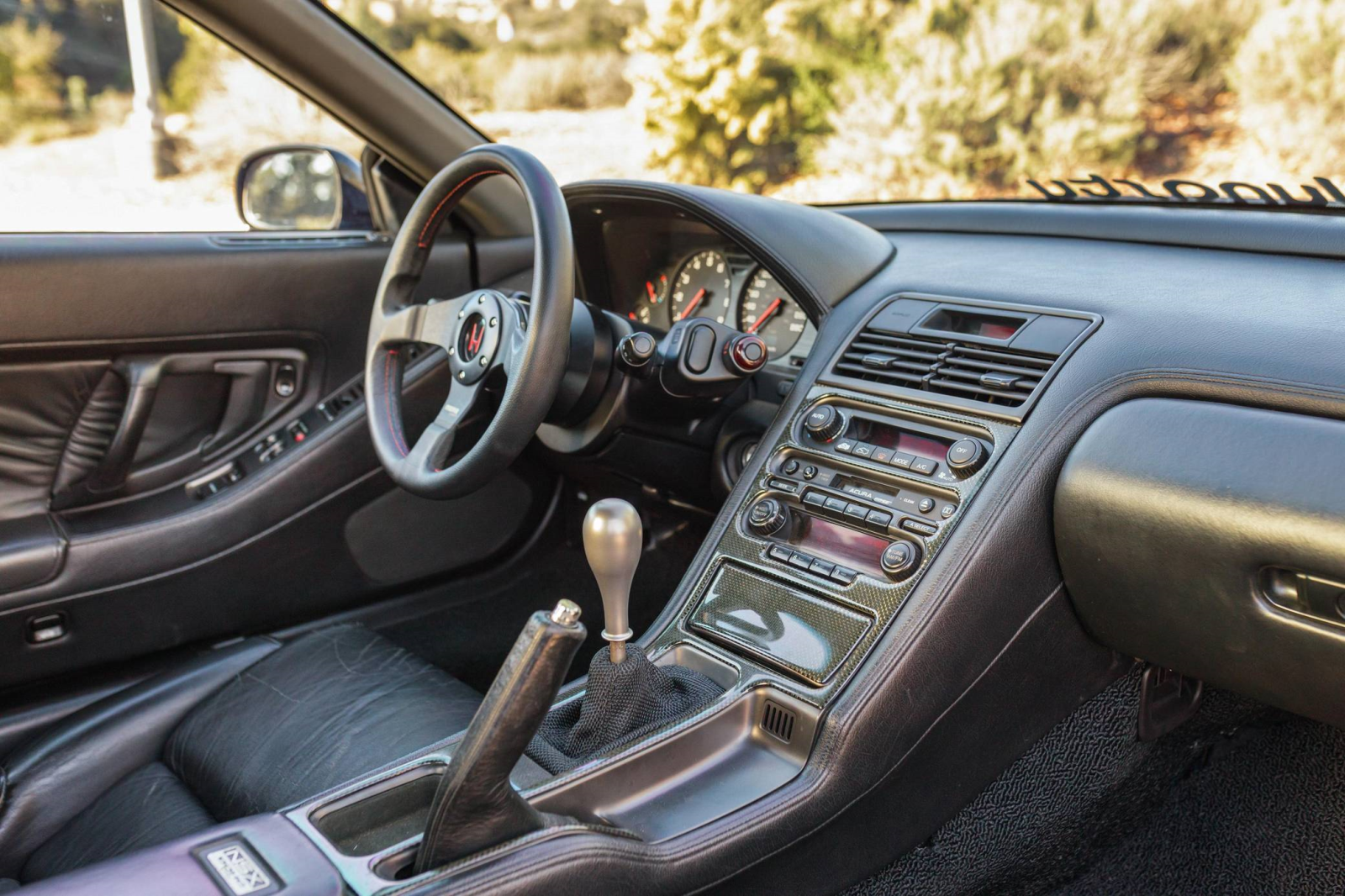 - Notable modifications reported by the seller include 16-inch front and 18-inch rear BBS wheels, a PROTOKRAFT carbon fiber serialized engine cover, an aftermarket exhaust system, exterior painted Paul Ricard Blue, a Type-S-style carbon fiber hood, a Type-R-style rear spoiler, a carbon fiber rear diffuser, an NSX R-style steering wheel, and carbon fiber interior trim.