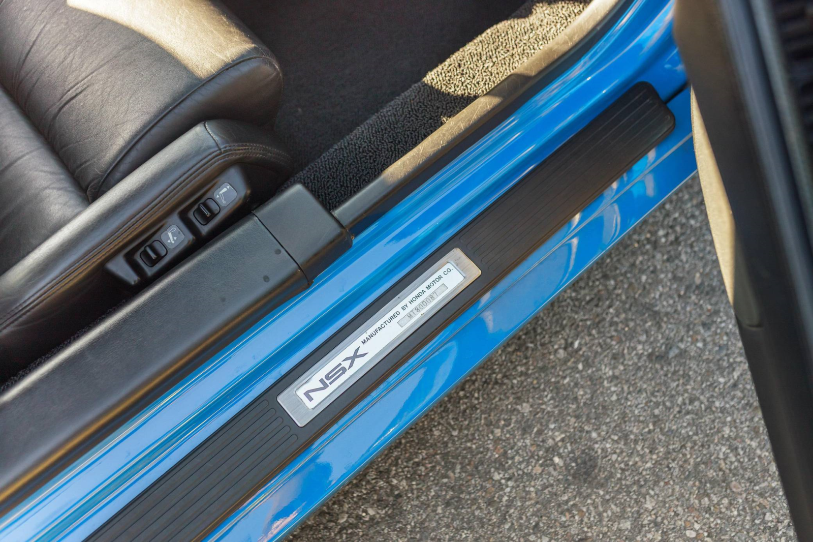 THIS... is a 1991 Acura NSX, finished in Paul Ricard Blue with a black interior.