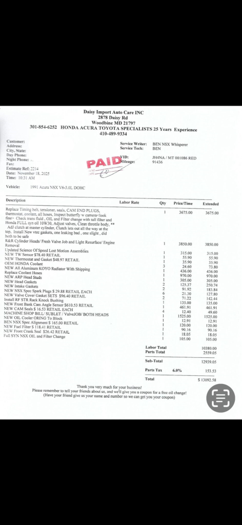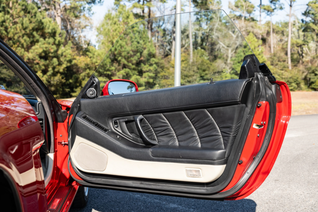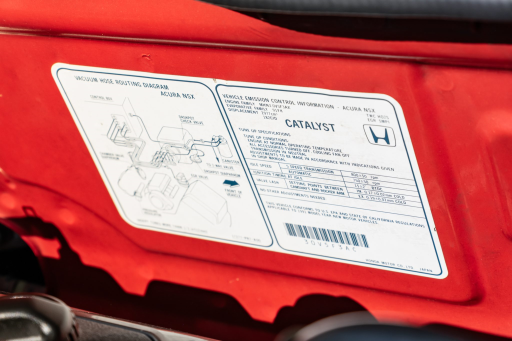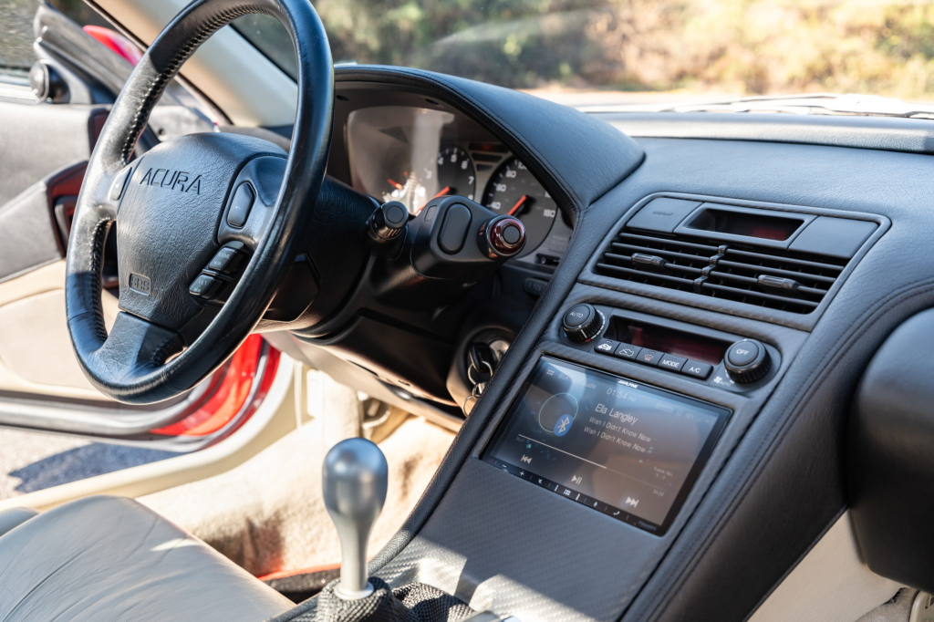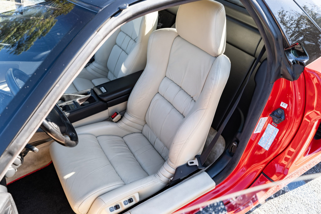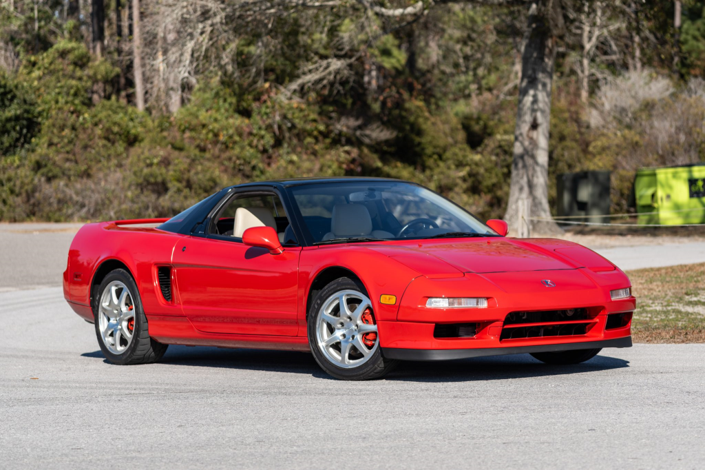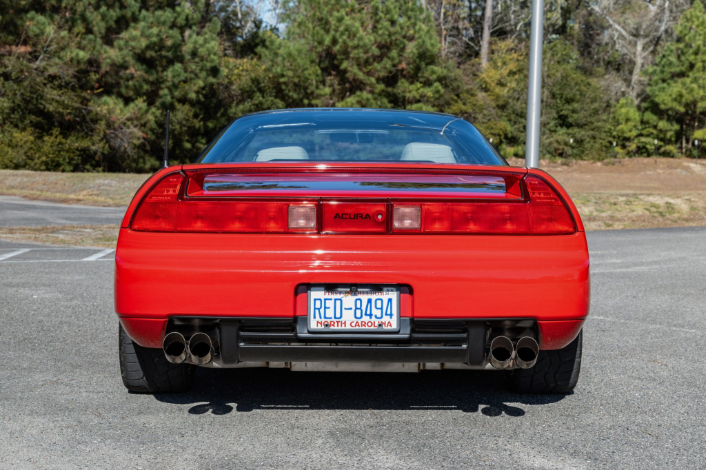 This 1991 Acura NSX was acquired by the seller on BaT in July 2022 following long-term prior ownership in California and Idaho. Subsequent work included resurfacing the cylinder heads of the 3.0-liter VTEC V6, replacing the timing belt and various engine seals, and installing a Koyorad radiator, slotted brake rotors and braided lines, an aftermarket sound system, and a rearview camera. Shifting is through a five-speed manual transaxle, and the car has been fitted with NA2-specification ABS components, aftermarket stabilizer bars, and tubular headers. The vehicle is finished in Formula Red over Ivory leather and has 16” and 17” aluminum wheels, a limited-slip differential, a black roof panel, pop-up headlights, power-adjustable seats, automatic climate control, and cruise control. This NSX shows 92k miles and is offered with service records, a clean Carfax report, and a clean North Carolina title in the seller’s name.