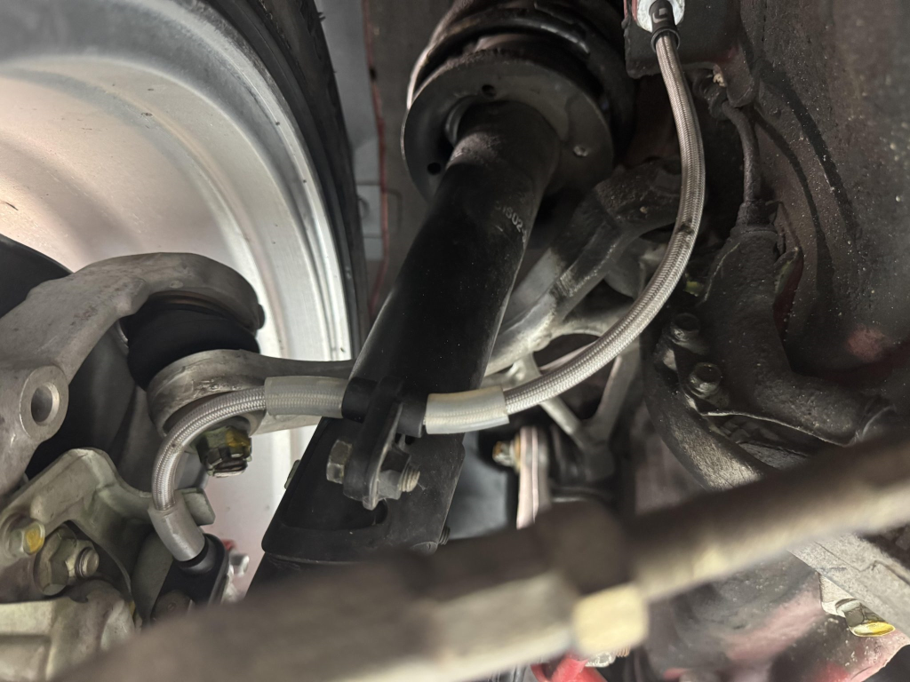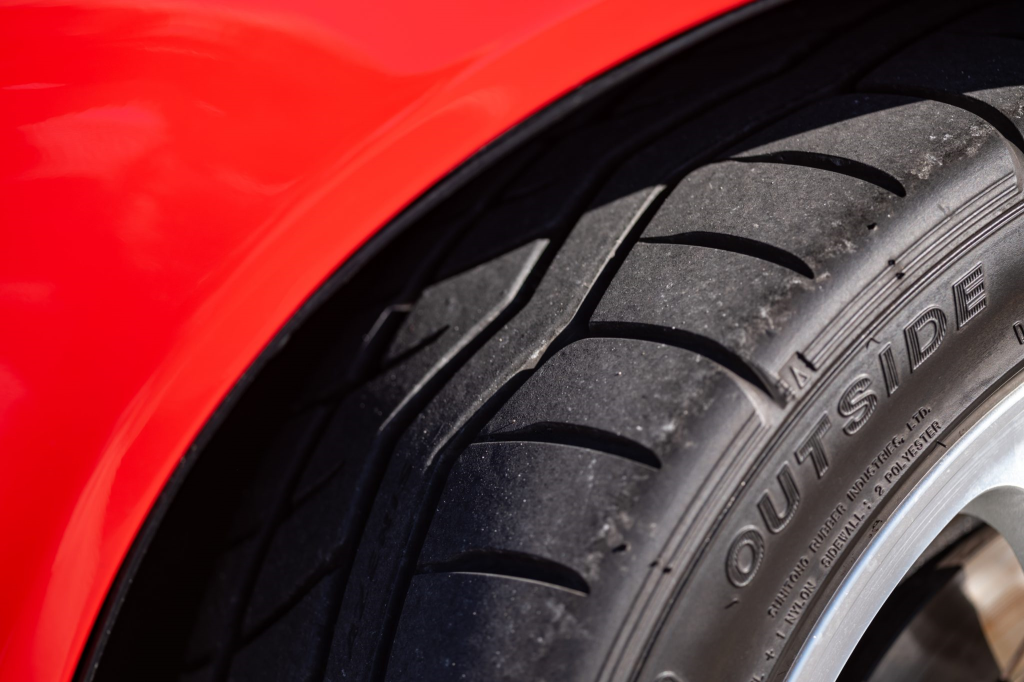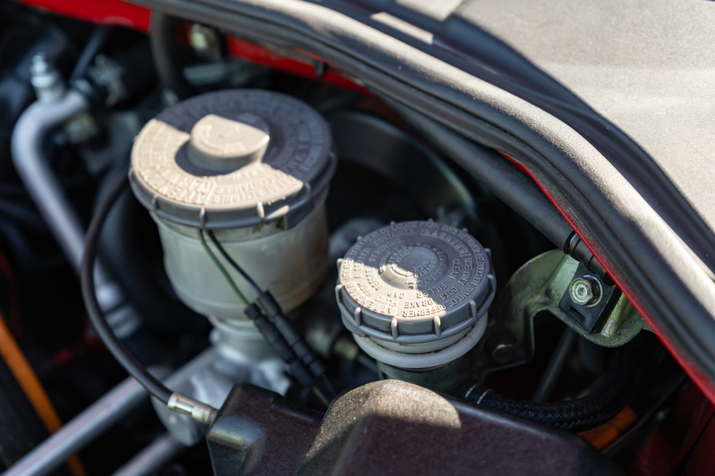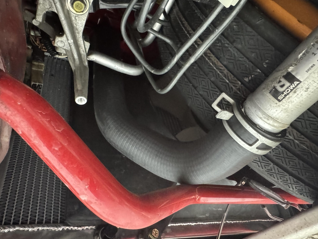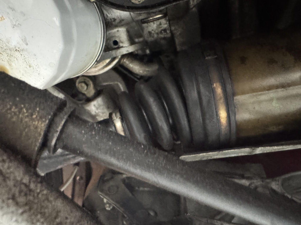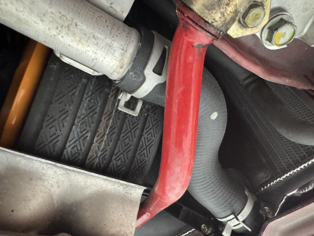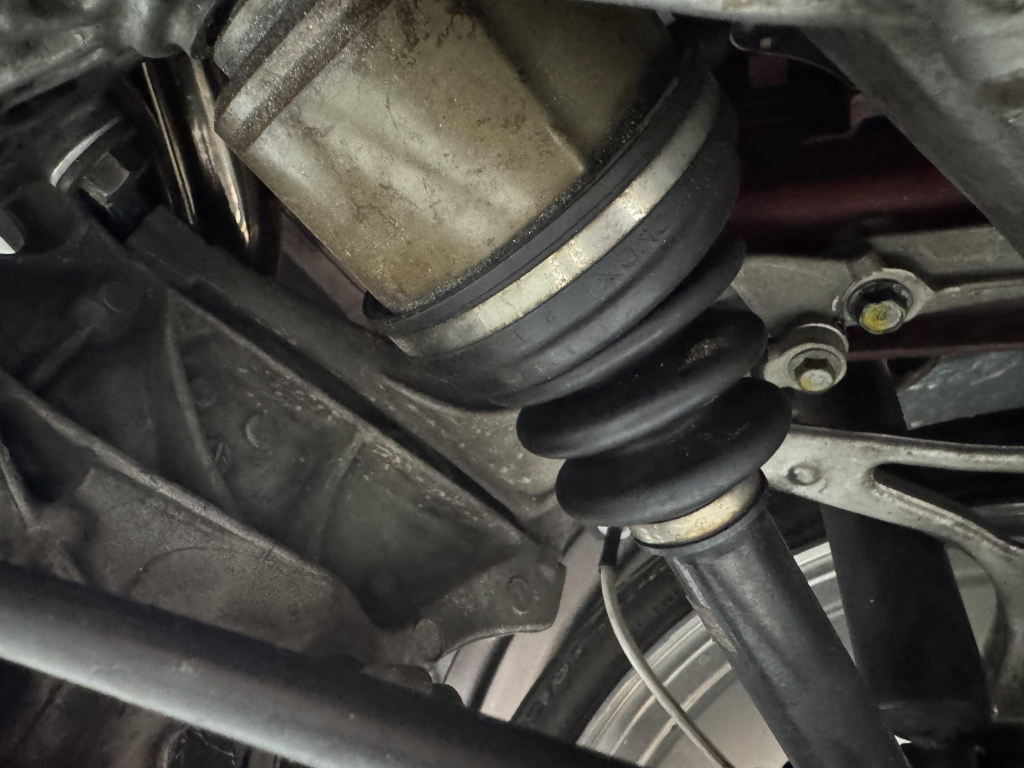Power is routed to the rear wheels via a five-speed manual transaxle and a limited-slip differential. A photo showing transaxle serial number J4A4-1001540 is provided in the prior listing, indicating that the unit falls outside the snap ring failure range. The clutch was replaced in 2020, and the CV axle boots were serviced under current ownership according to the seller. An aftermarket exhaust system and headers were installed under prior ownership.