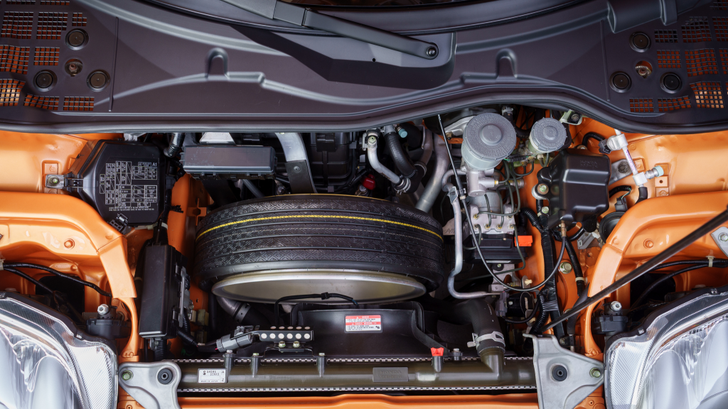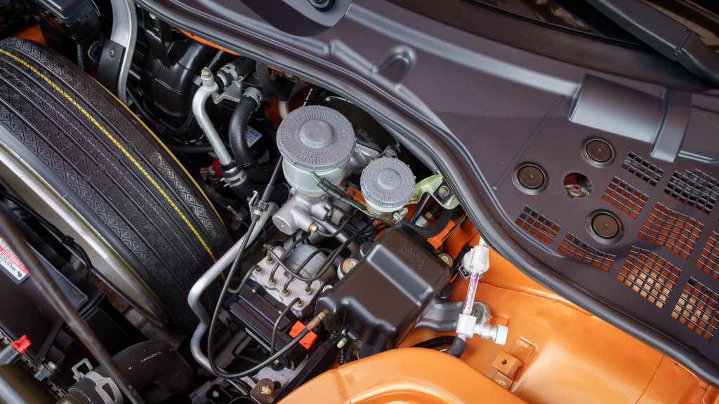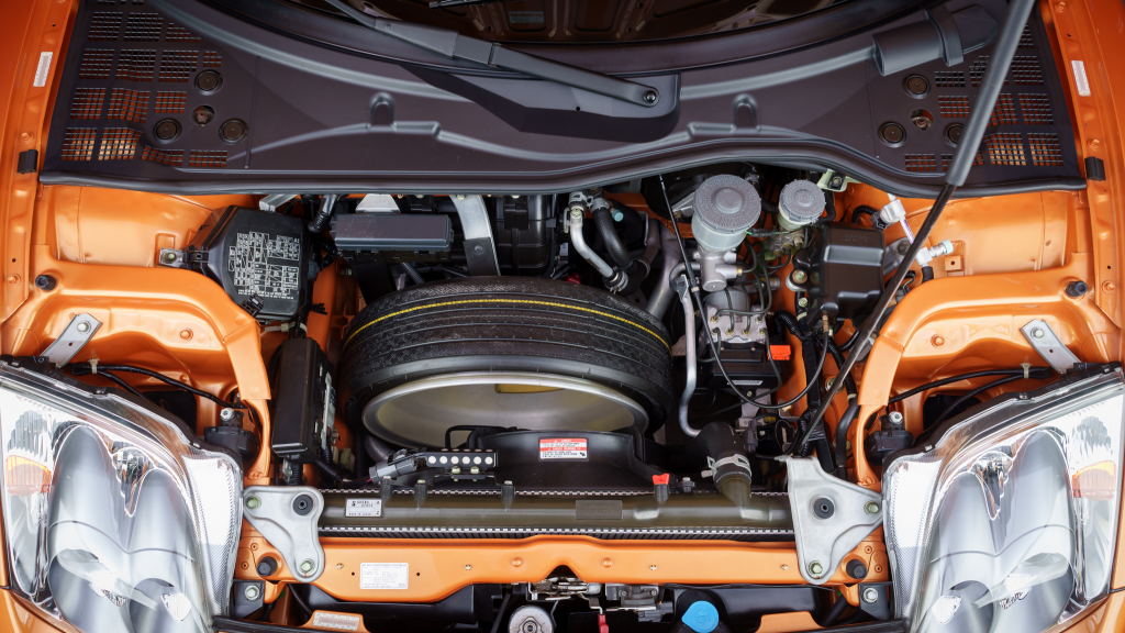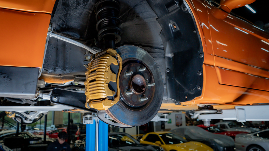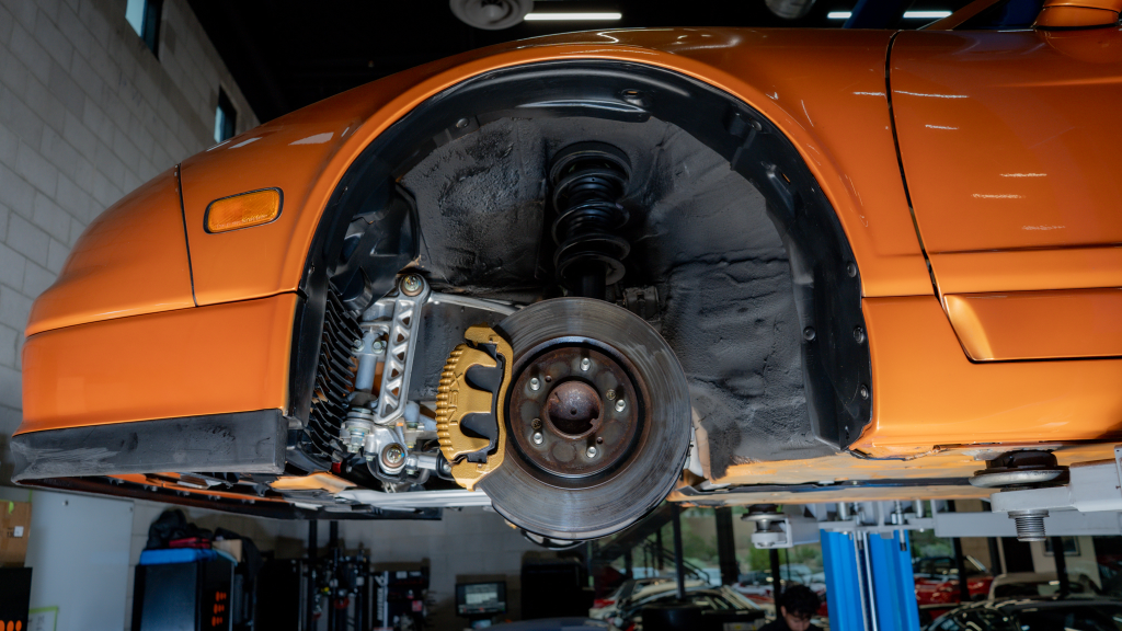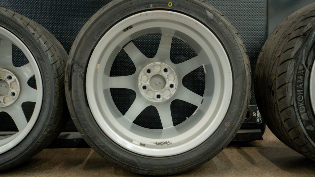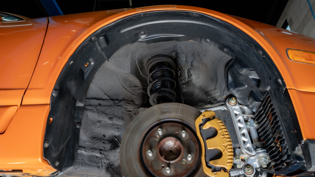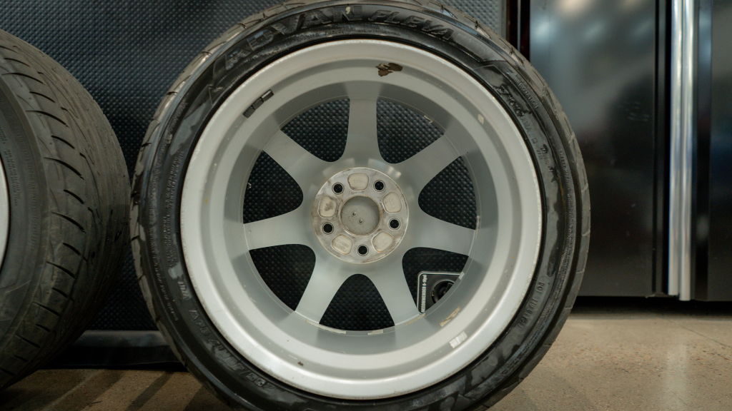 The 17” seven-spoke forged wheels wear Yokohama Advan tires that were mounted in preparation for the sale. The car features a four-wheel double-wishbone suspension with front and rear stabilizer bars, and braking is handled by NSX-branded calipers over vented rotors at each corner.