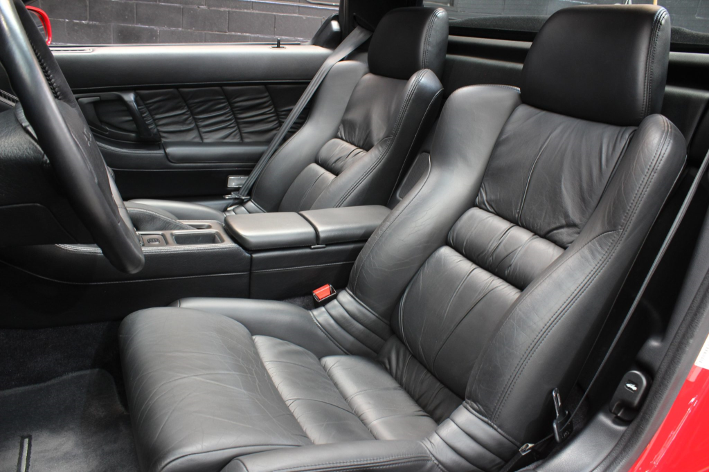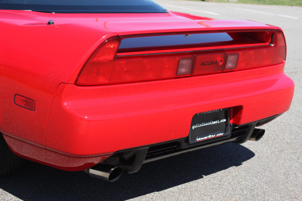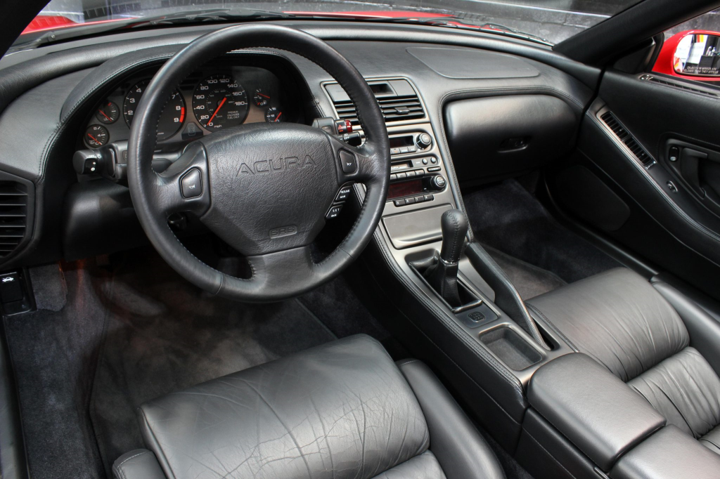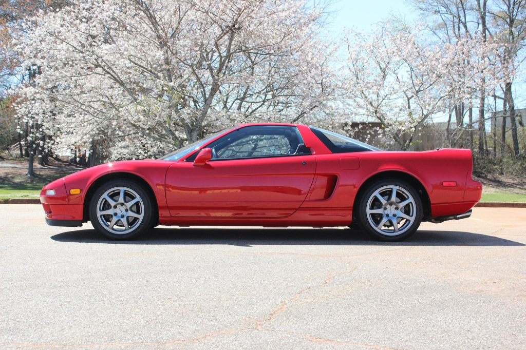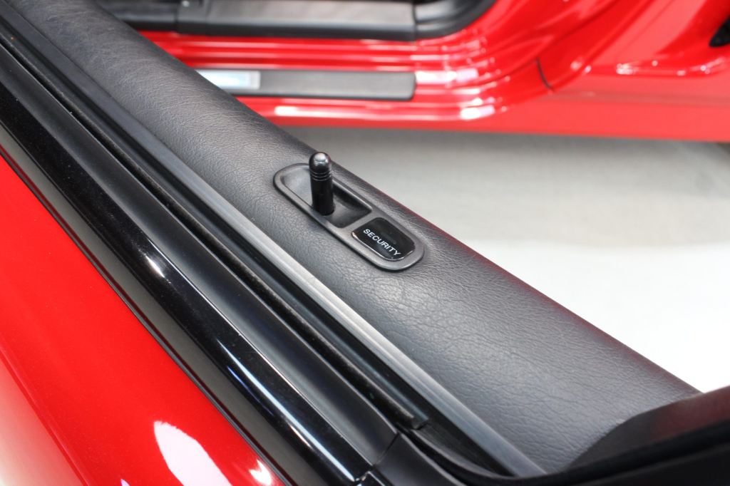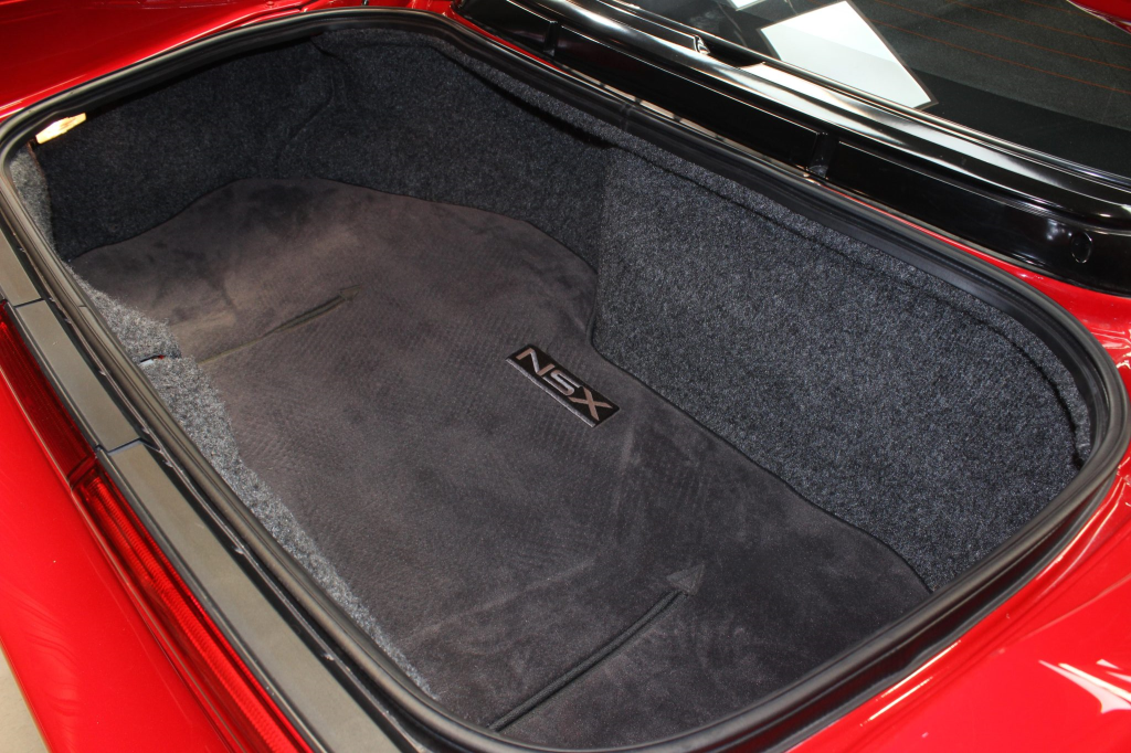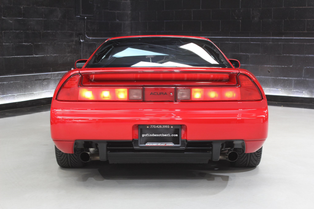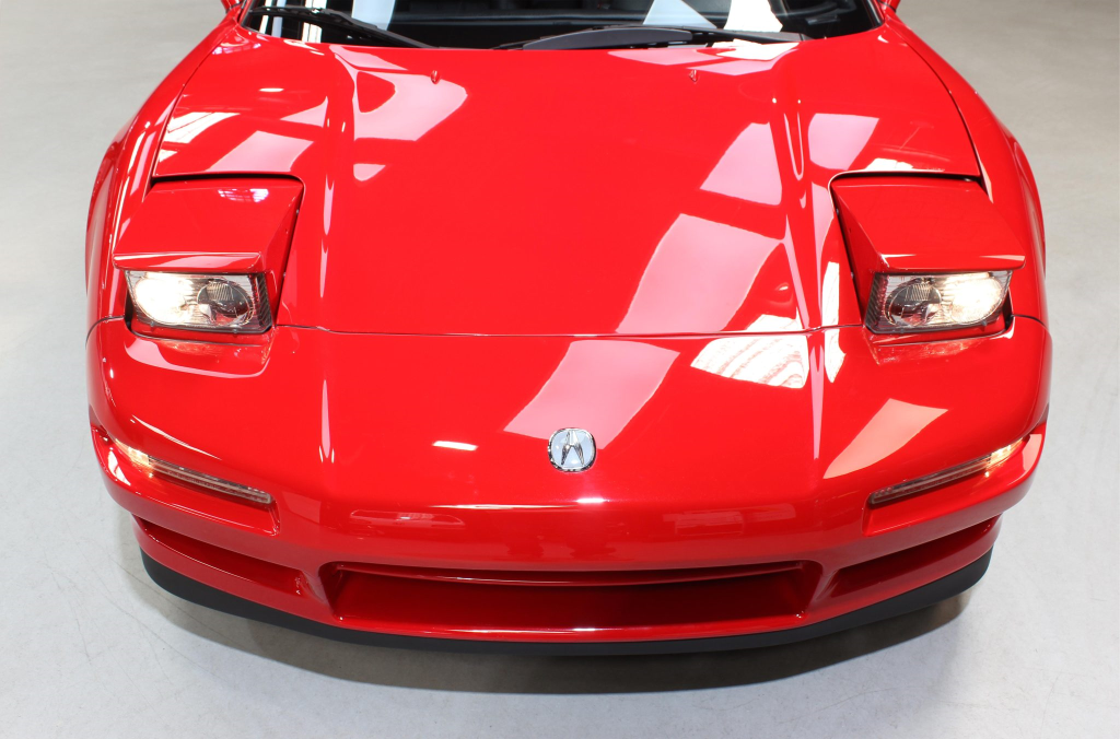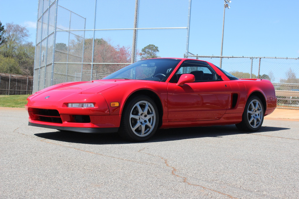 The NSX featured aluminum bodywork, and this example is finished in Formula Red with a body-color removable roof panel. Features include pop-up headlights, an integrated rear wing, side air intakes, power-adjustable side mirrors, and dual exhaust outlets.