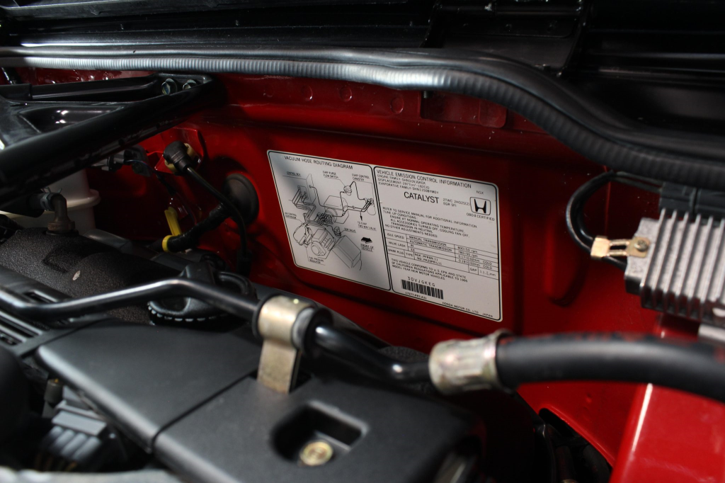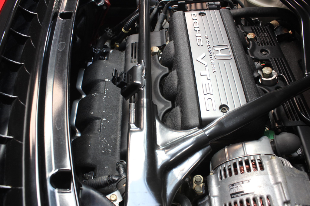 The mid-mounted 3.0-liter V6 features VTEC variable valve timing and was factory rated at 270 horsepower and 210 lb-ft of torque. A timing belt service was performed in January 2026, at which time the oil was changed, the coolant was flushed, and the water pump, drive belts, spark plugs, and valve cover gaskets were also replaced.