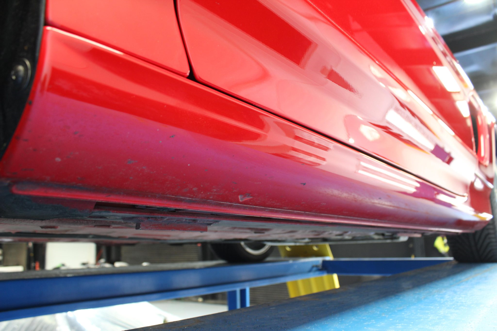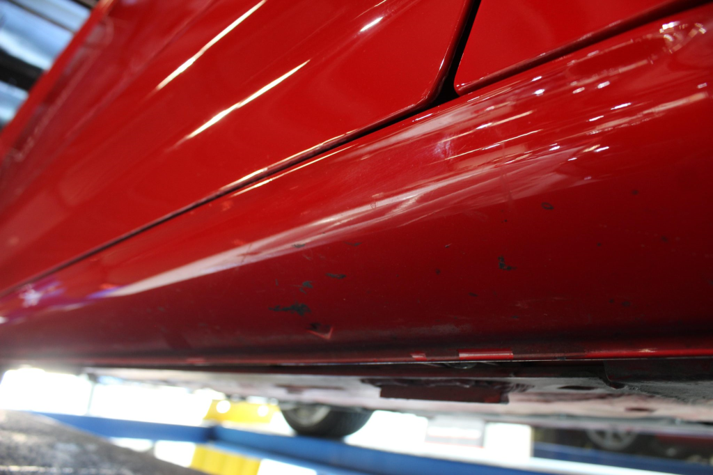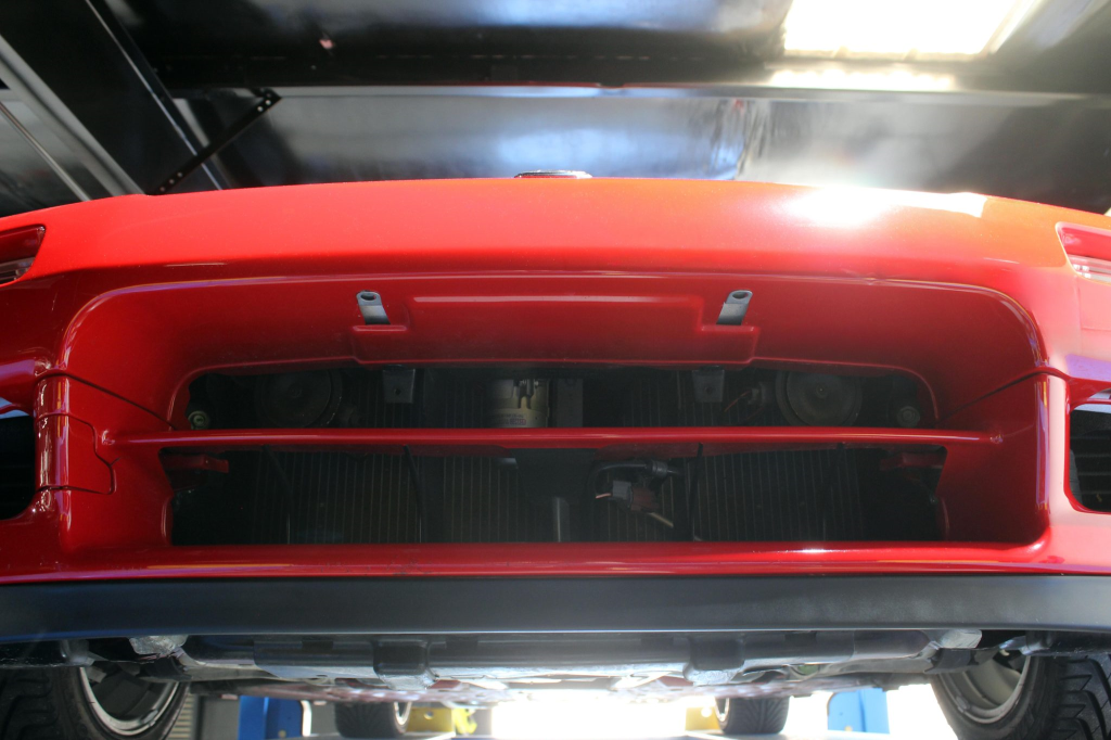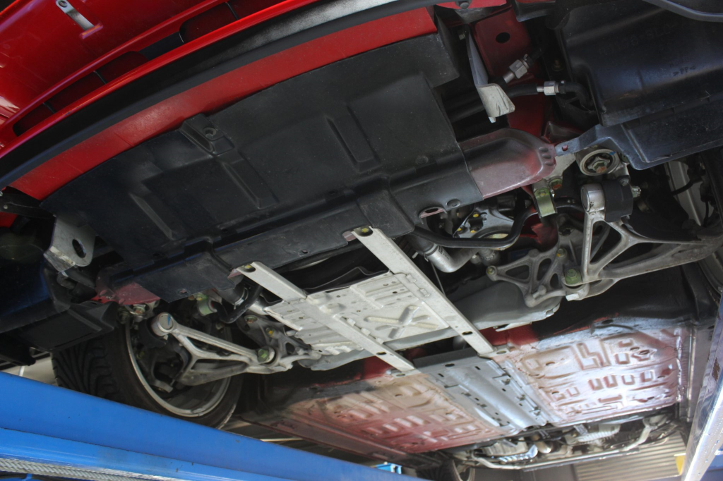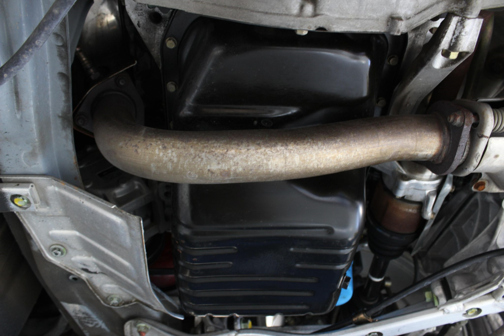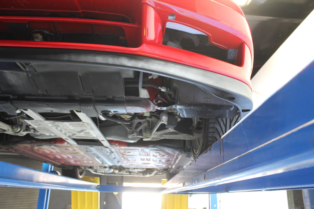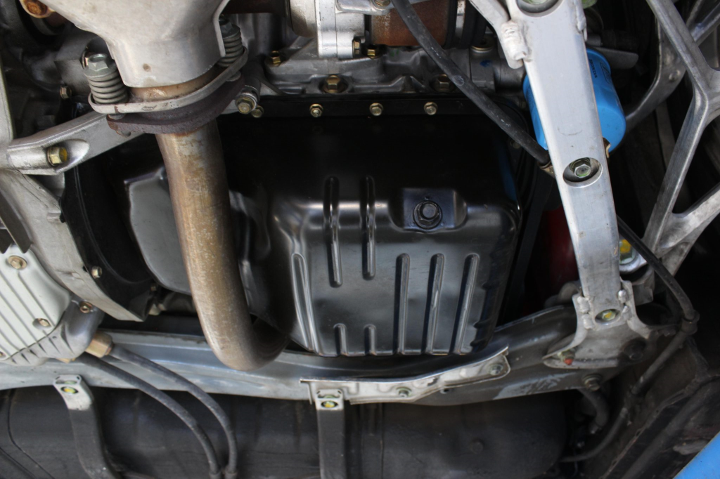 Power is routed to the rear wheels via a five-speed manual transaxle and a limited-slip differential. Additional photos of the underside are provided in the gallery.