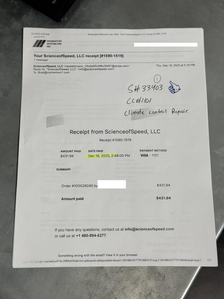 The window sticker shows initial delivery to Gary Force Acura of Nashville, Tennessee, along with factory equipment, colors, and a total vehicle price of $81,725.