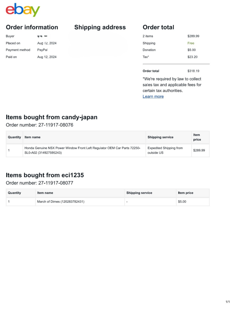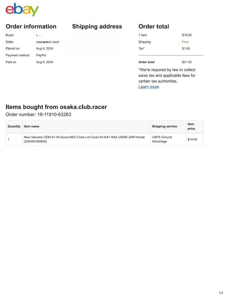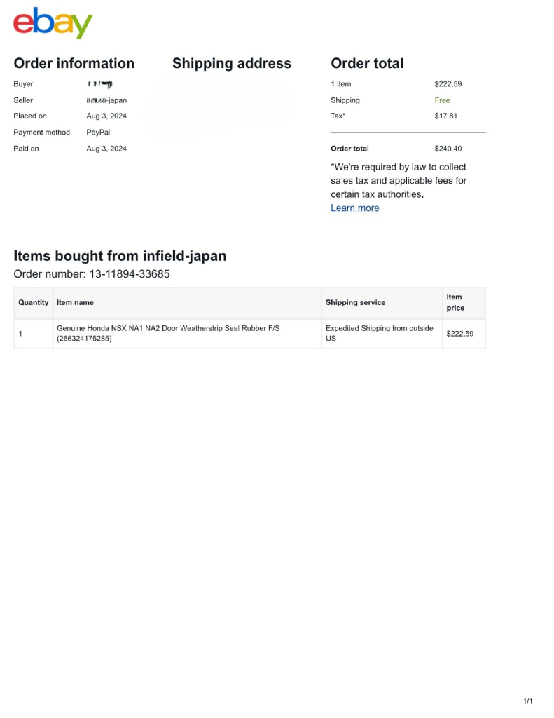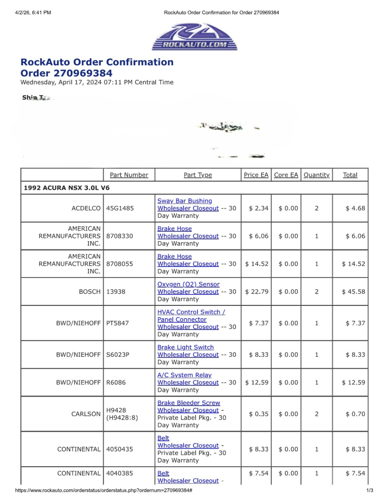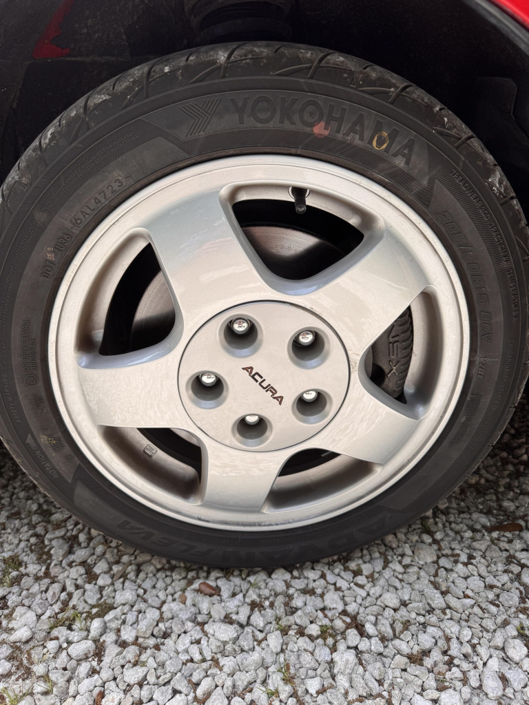 A set of 16″ and 17″ aluminum wheels with Acura-branded center caps will accompany the car in addition to an assortment of spare parts including an oil pan gasket, windshield washer pump, passenger window regulator, drive belts, brake pads, hoses, caliper pistons, and 3M paint protection film.
