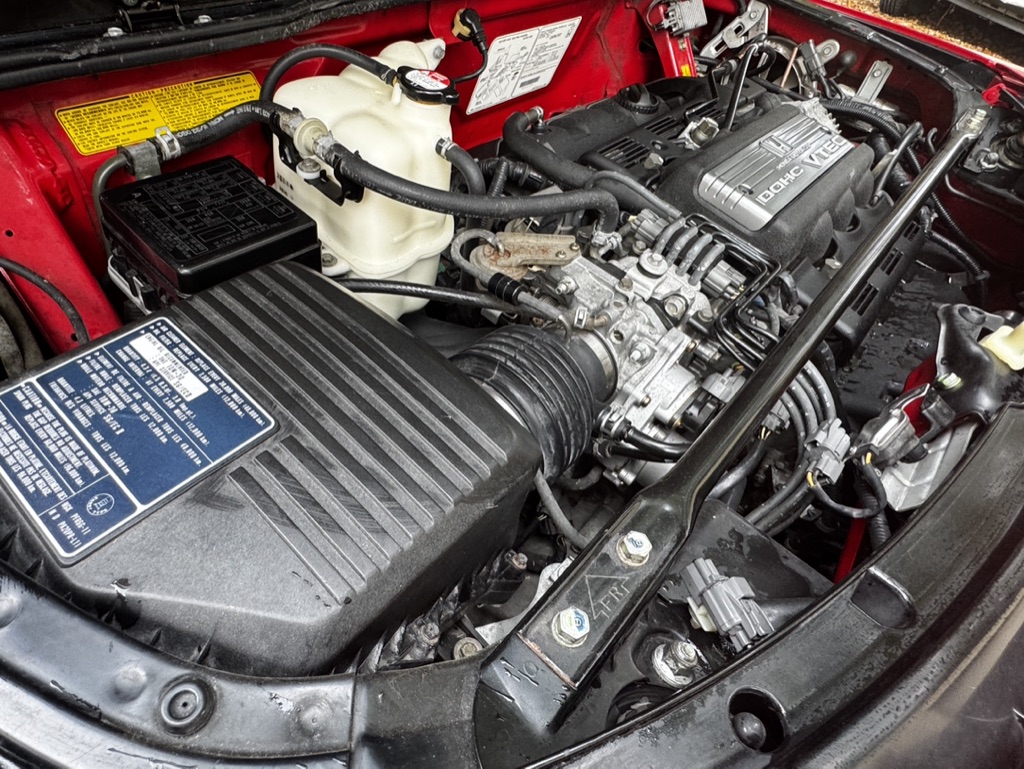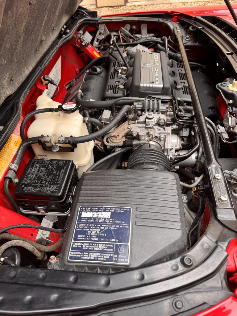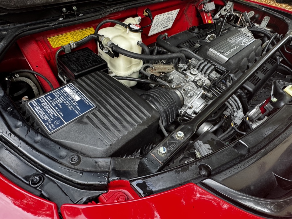 The mid-mounted 3.0-liter V6 features VTEC variable valve timing and was factory rated at 252 horsepower and 210 lb-ft of torque. An oil change was performed in January 2026. The seller notes the timing belt was last changed in 2001 and is due for replacement.